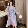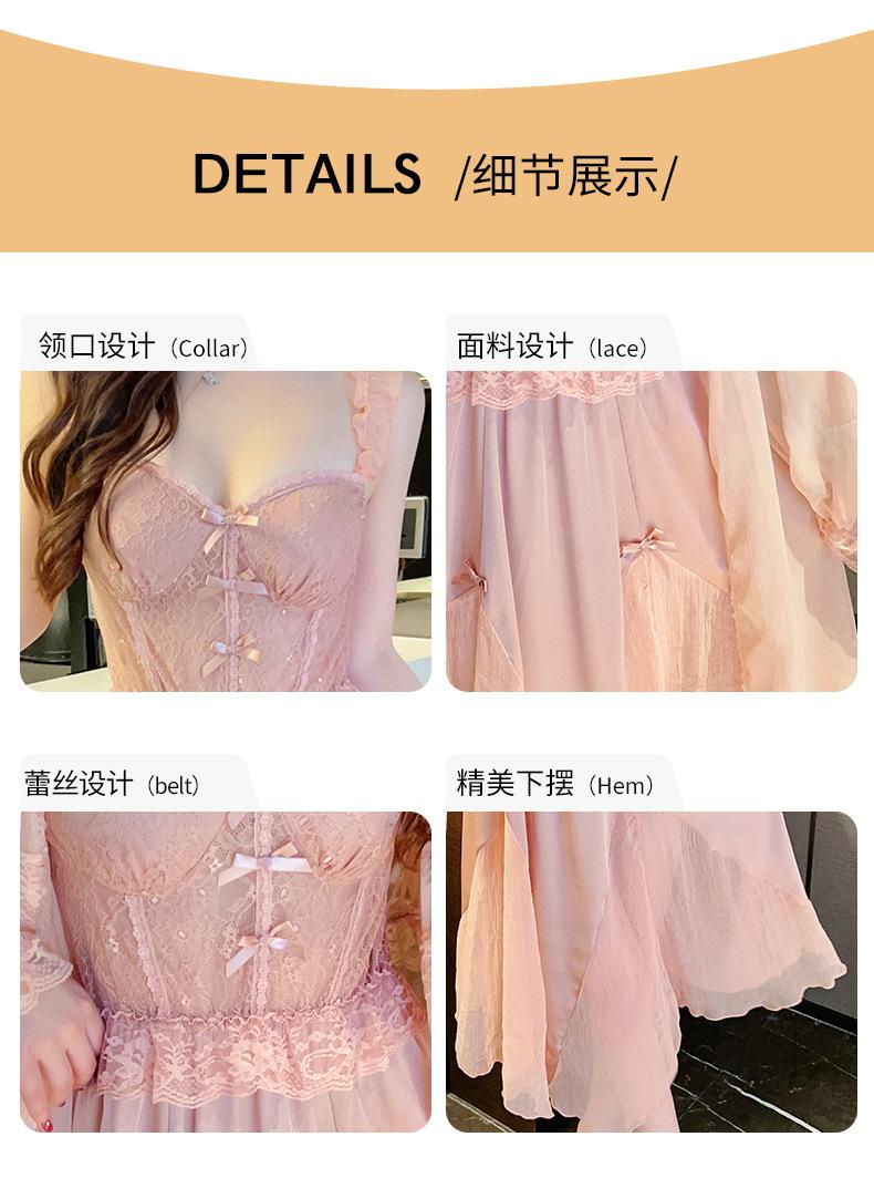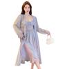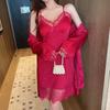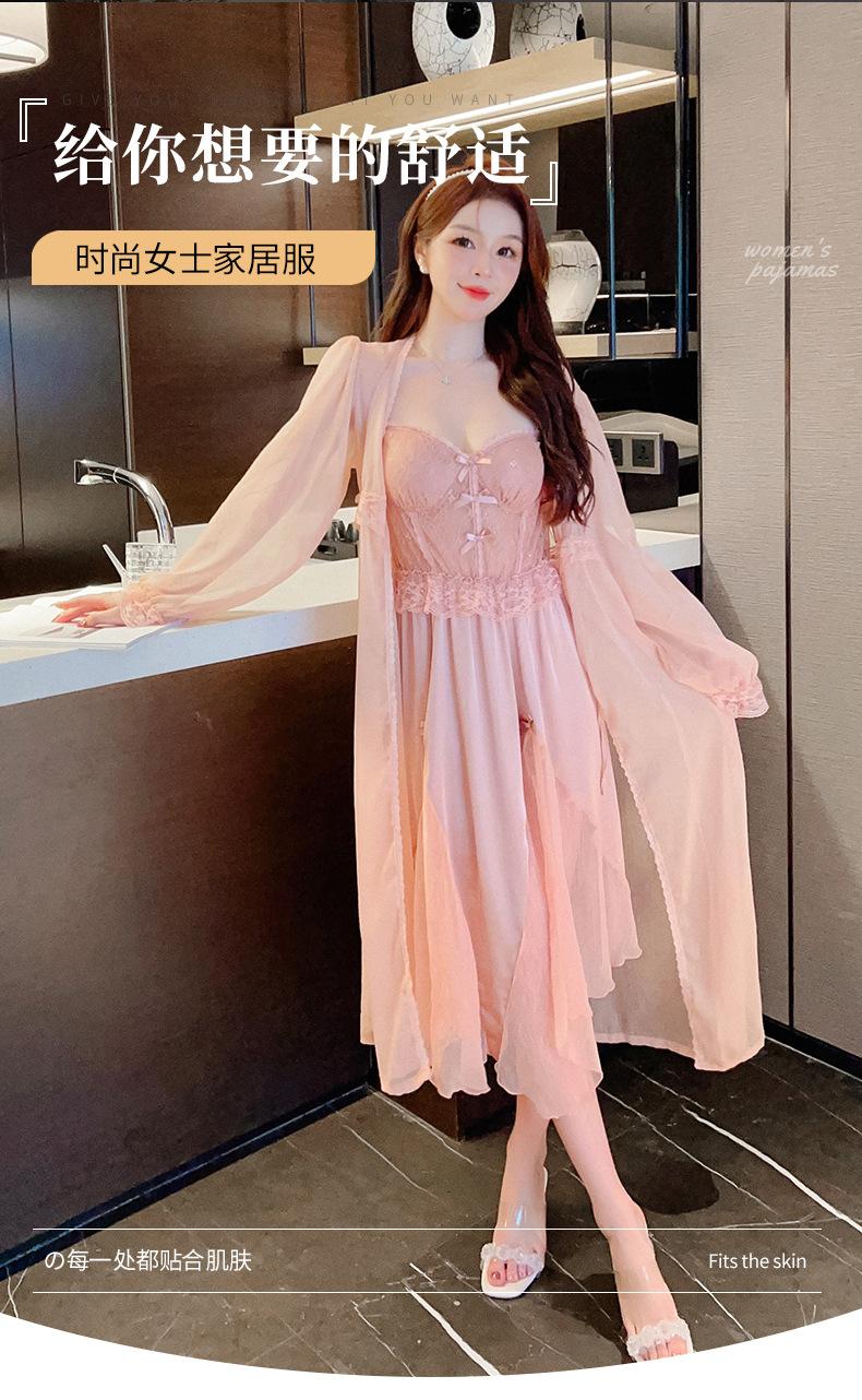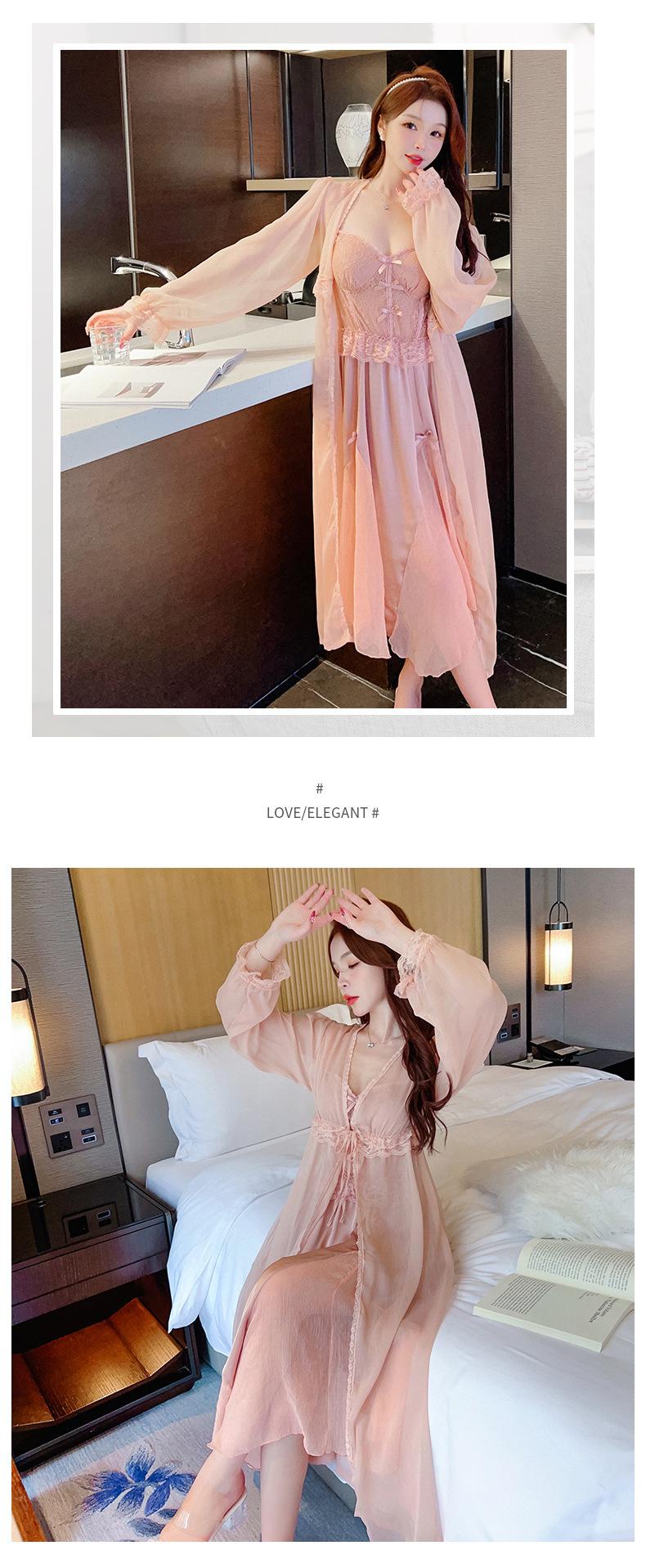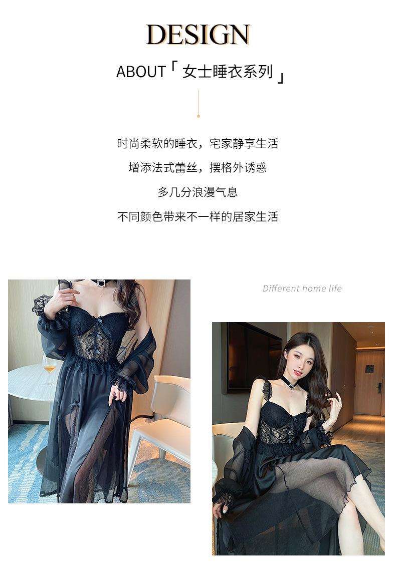 Pijamas de Mujer Ropa Casual para el Hogar Elegante y Elegante Vestido Largo de Dos Piezas de Satén y Gasa con Escote Bajo Camisón