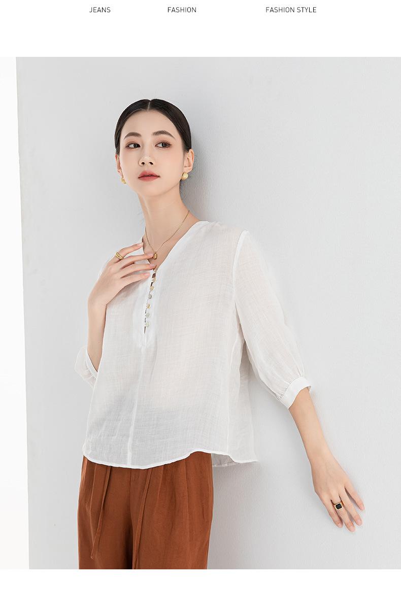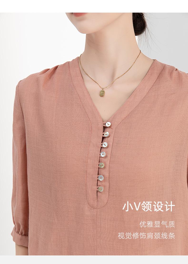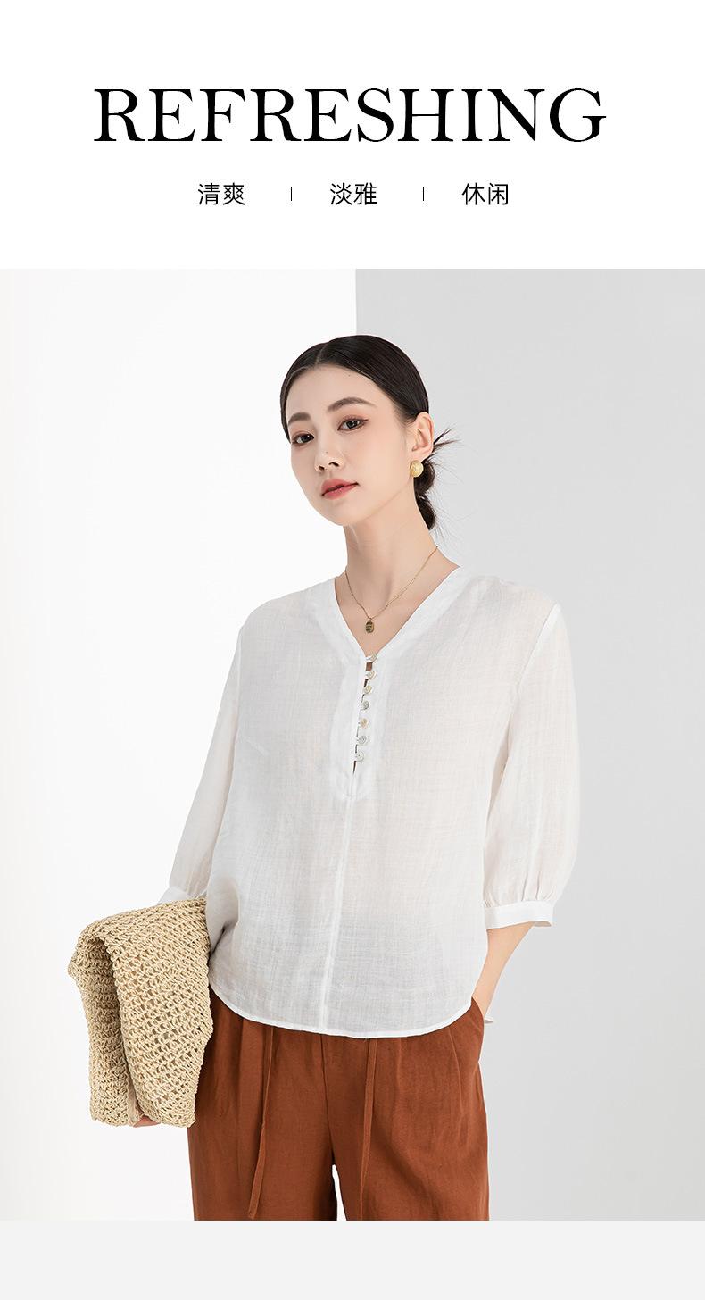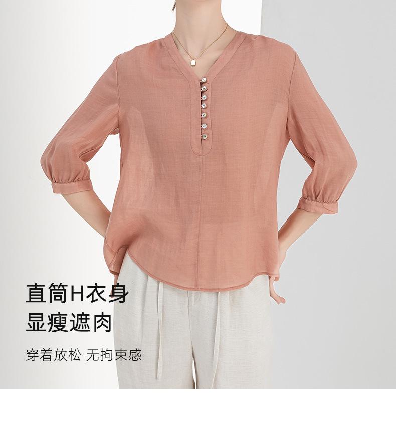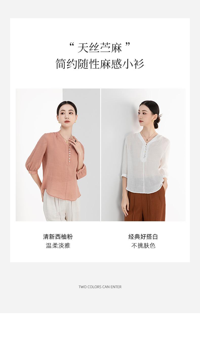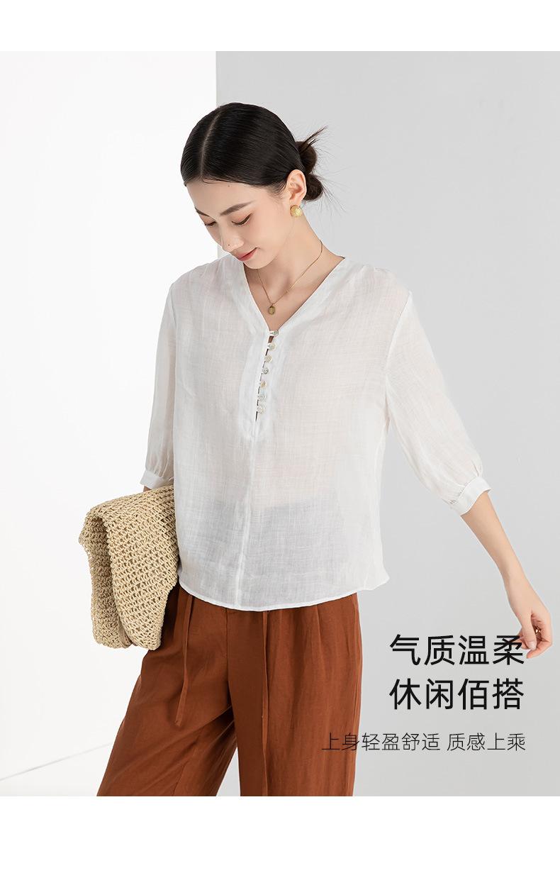 Camisa de cuello en V con botones de concha Xinge Tiansima Verano 2024 Nuevo Casual Casual Camisa de manga corta
