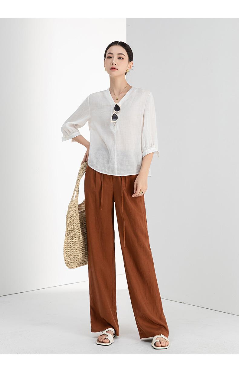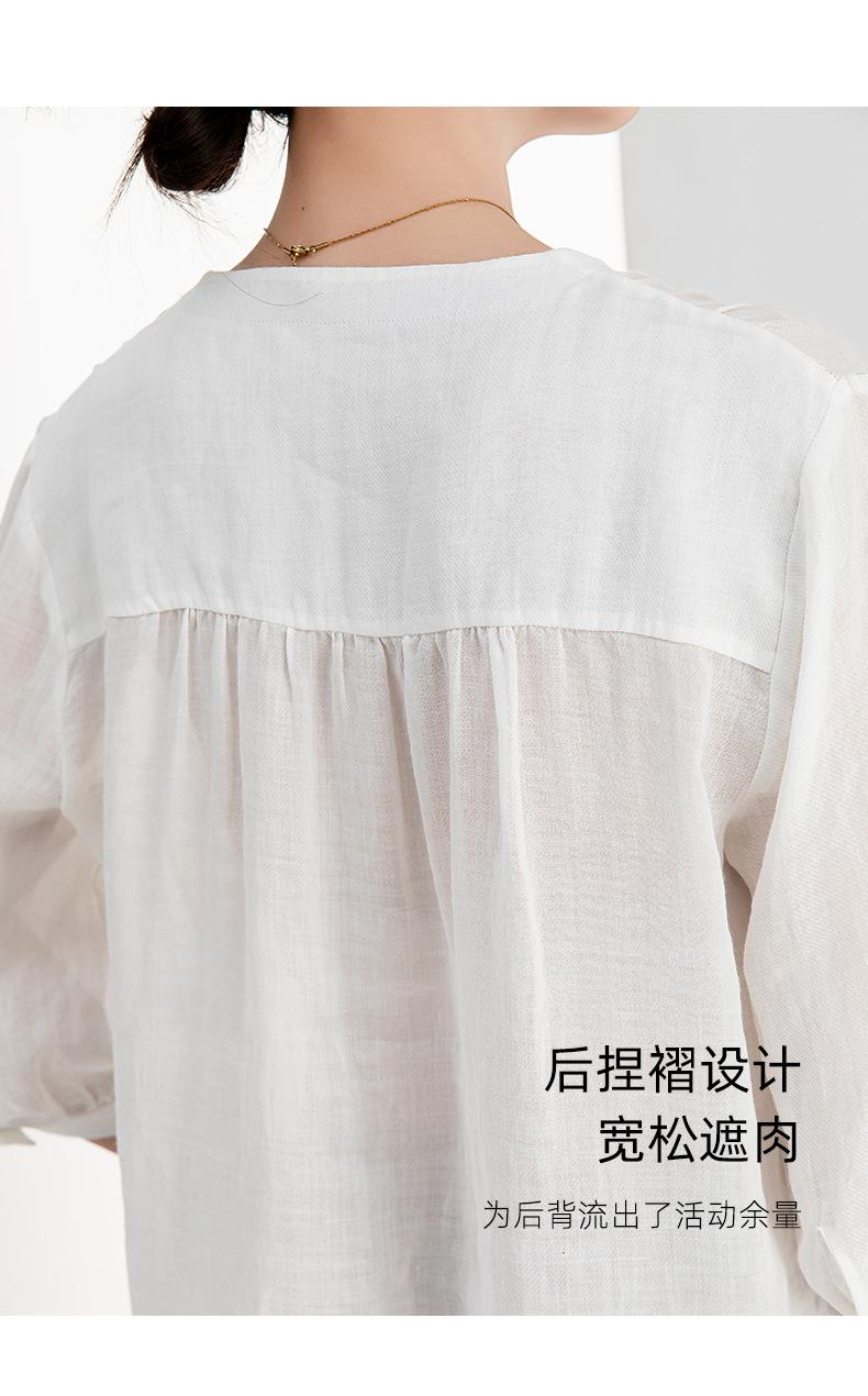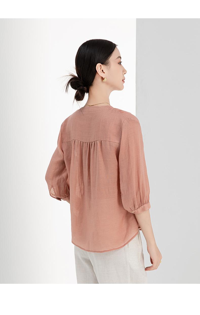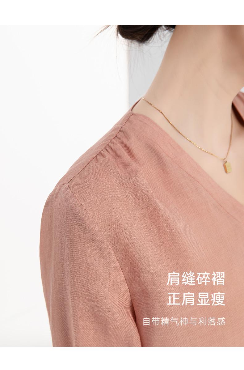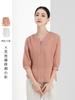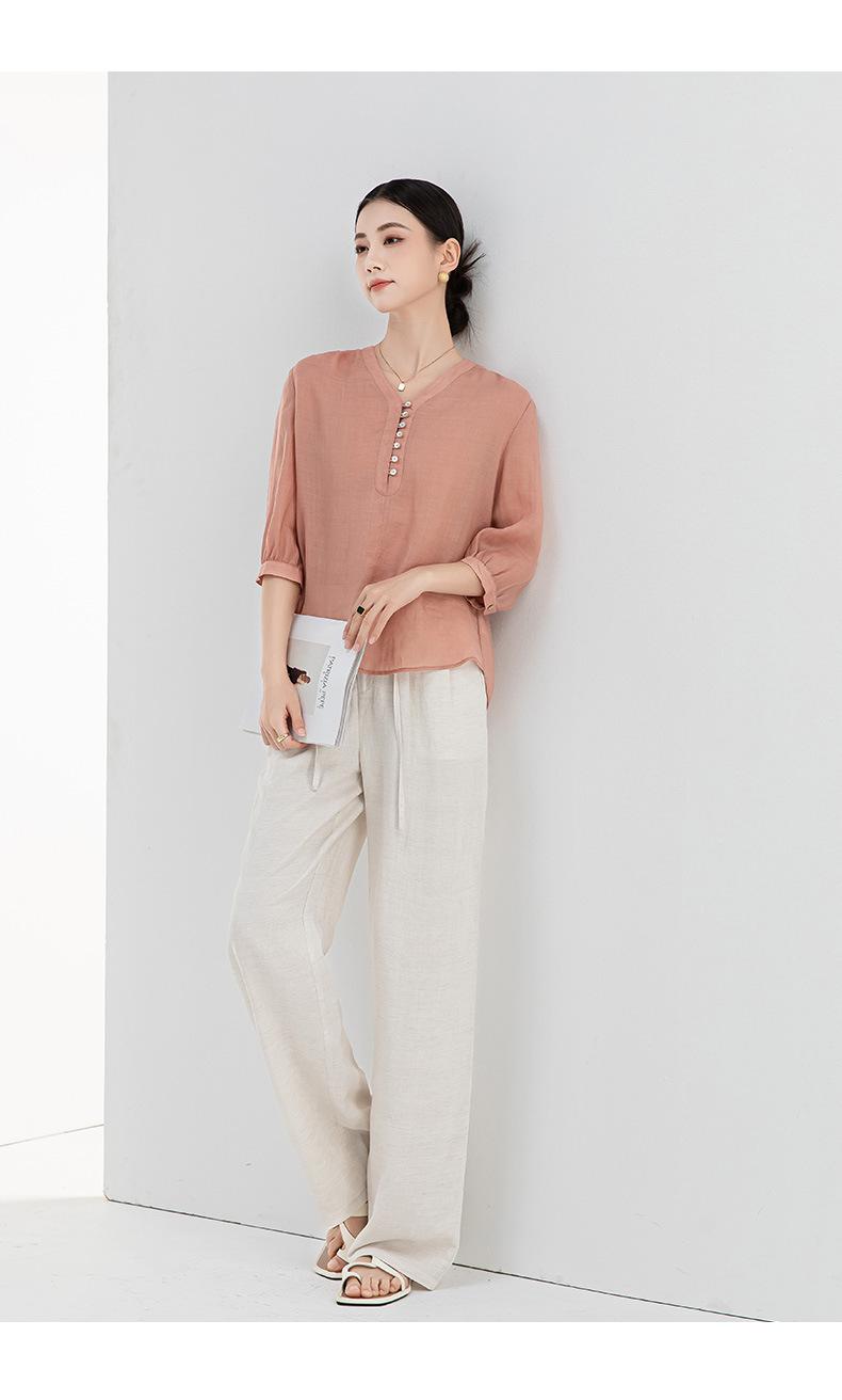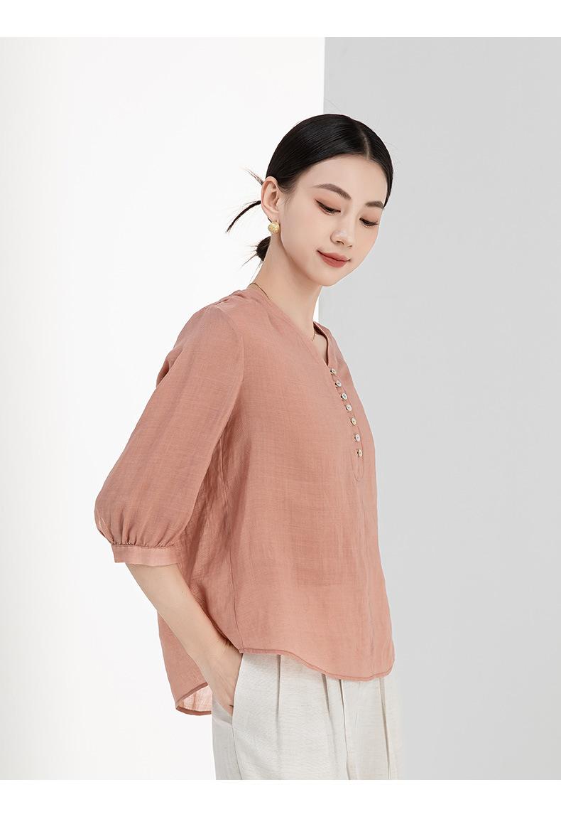 Camisa de cuello en V con botones de concha Xinge Tiansima Verano 2024 Nuevo Casual Casual Camisa de manga corta