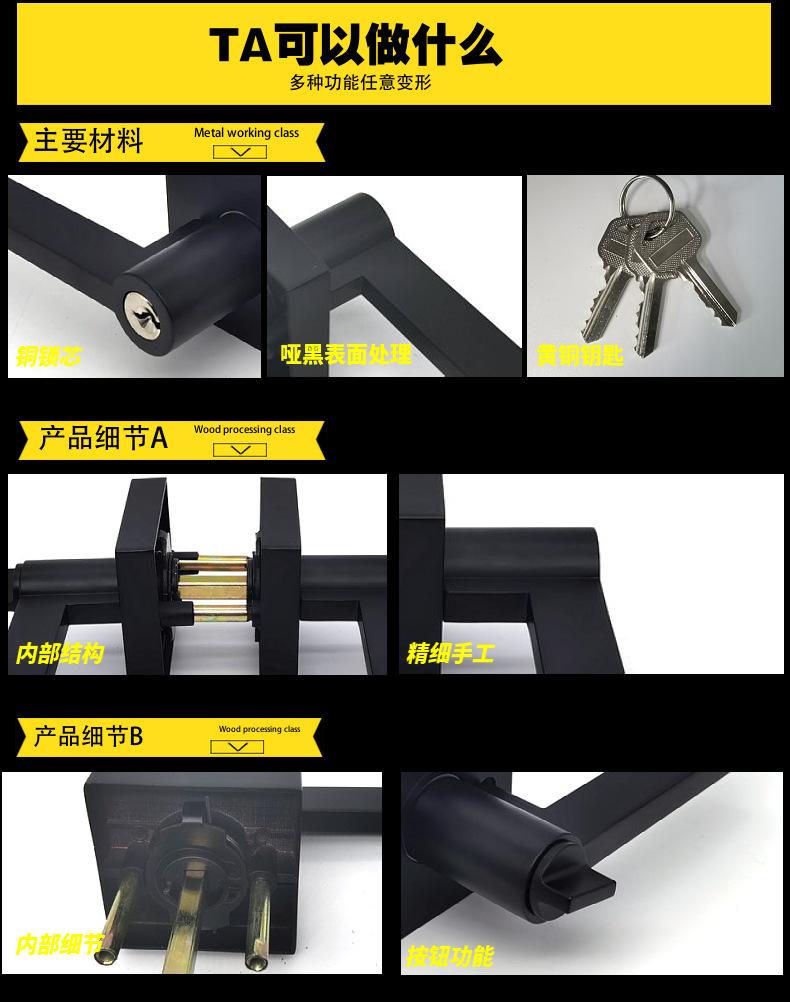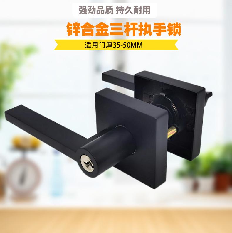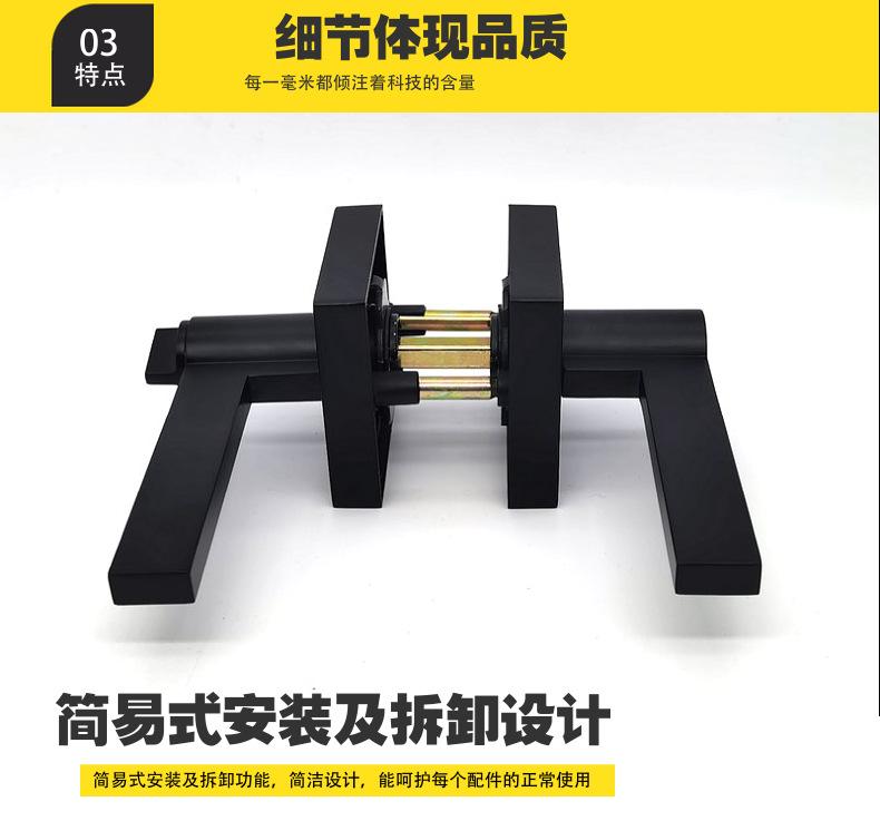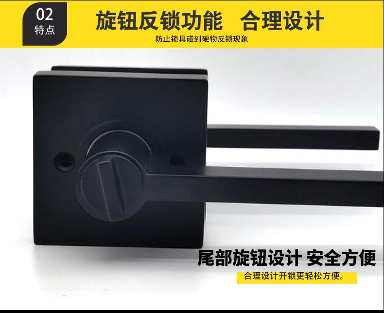 Cerradura de manija de puerta de dormitorio negra americana, cerradura de puerta de madera maciza minimalista moderna, cerradura de puerta interior de tono claro, suministro directo de fábrica
