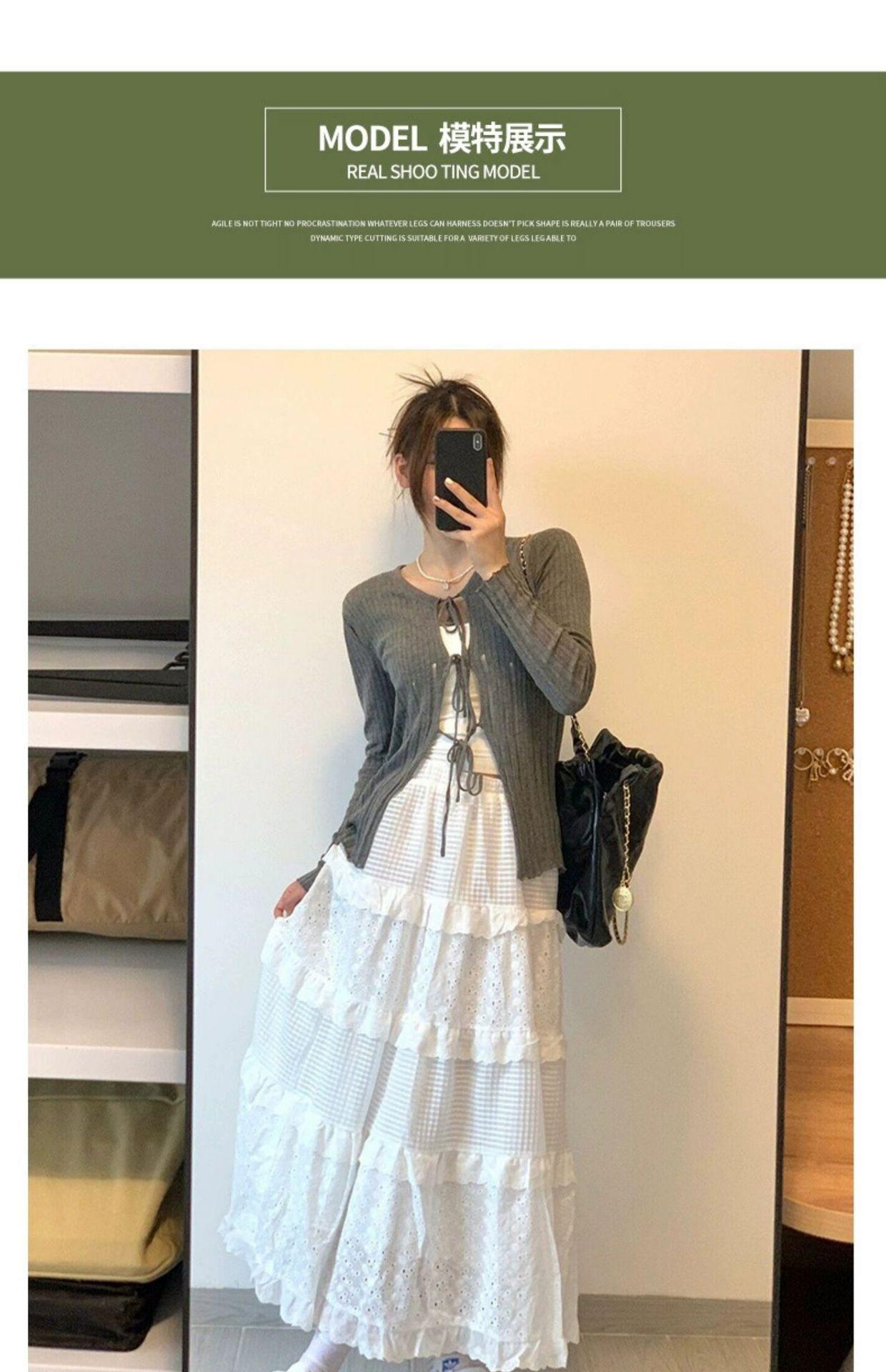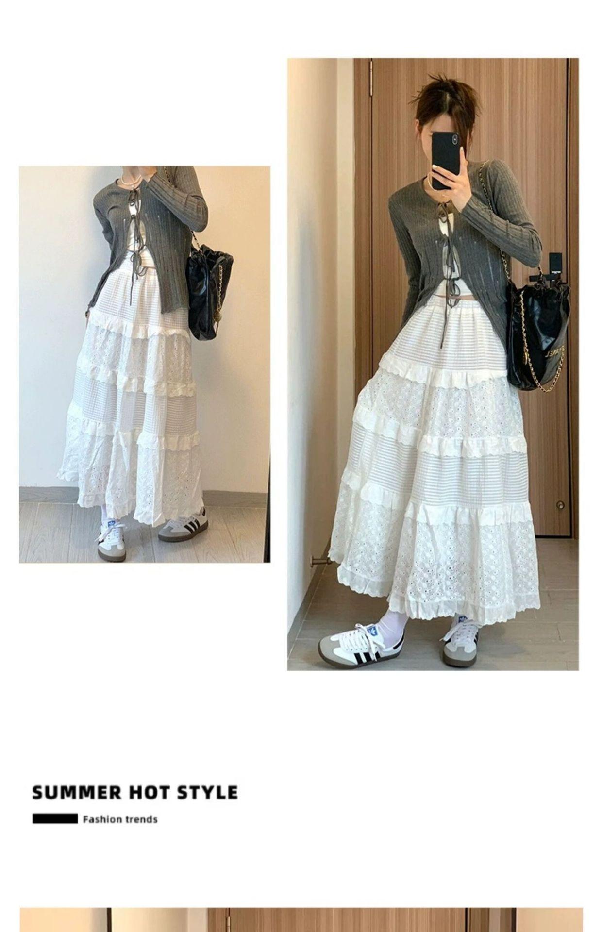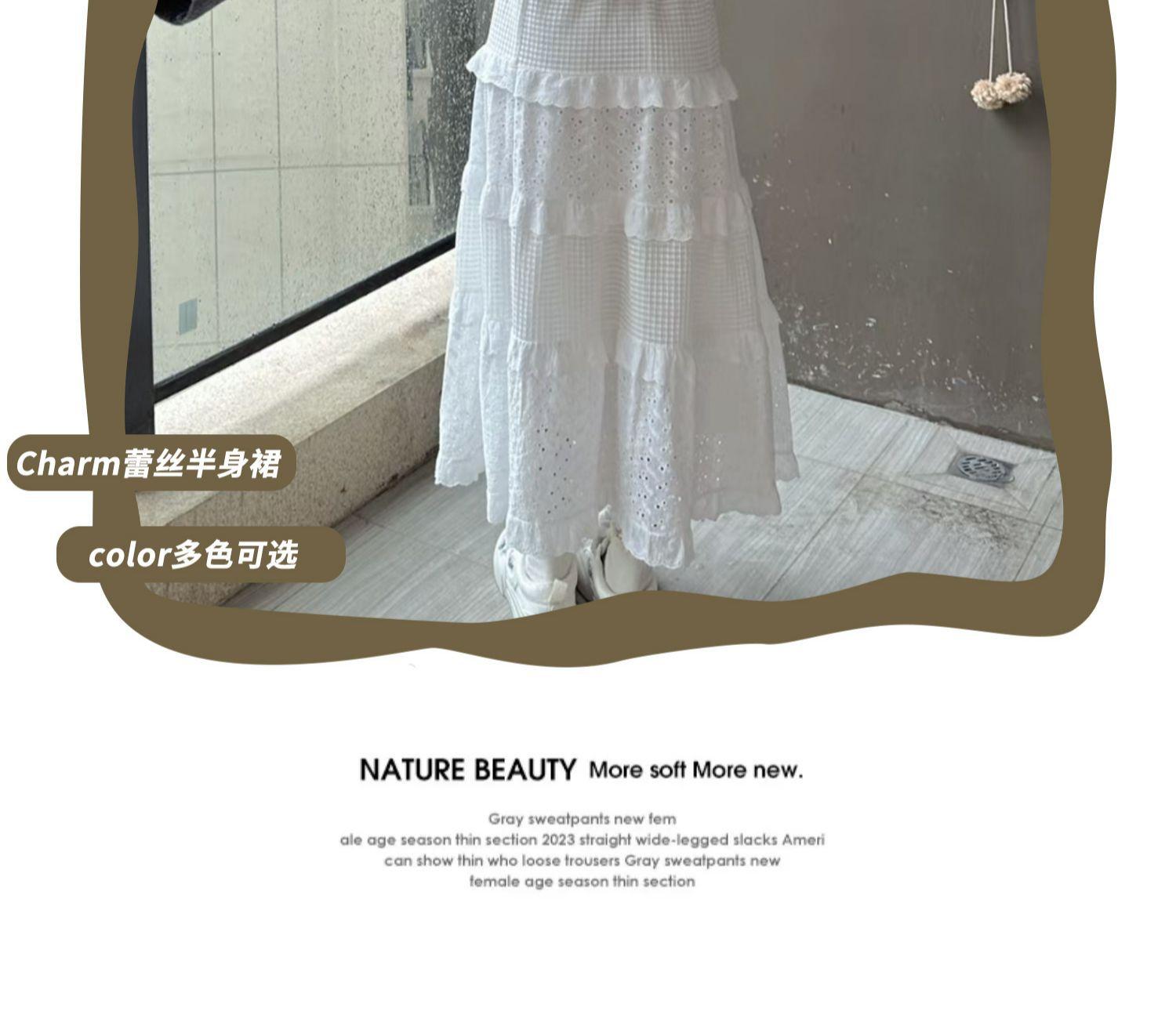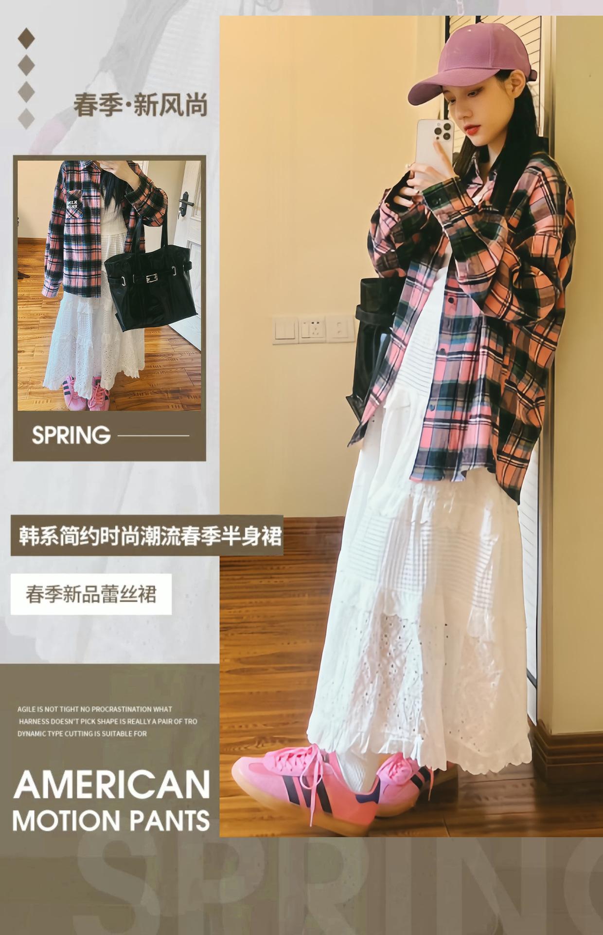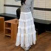 Falda Blanca para Mujer Primavera, Verano y Otoño 2025 Nueva Cintura Alta Corte A Estilo Suave Largo Medio Encaje Esponjosa Falda Pastel