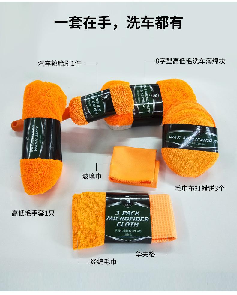 Juego de 9 piezas para limpieza de lavado de autos, suministros, herramientas, toalla de lavado de autos, esponja, cera para pulir, cepillo para ruedas, venta al por mayor