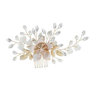 | Hermosos accesorios para vestidos de novia de estilo coreano, peine de alta gama con inserto de diamantes de imitación de ojo de caballo, peine de hojas hecho a mano, accesorios de novia al por mayor |