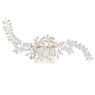| Peineta para novia de nuevo estilo, superventas en AliExpress, con flores de arcilla suave, perlas y diamantes de imitación, hecha a mano, accesorios para vestido de novia. |