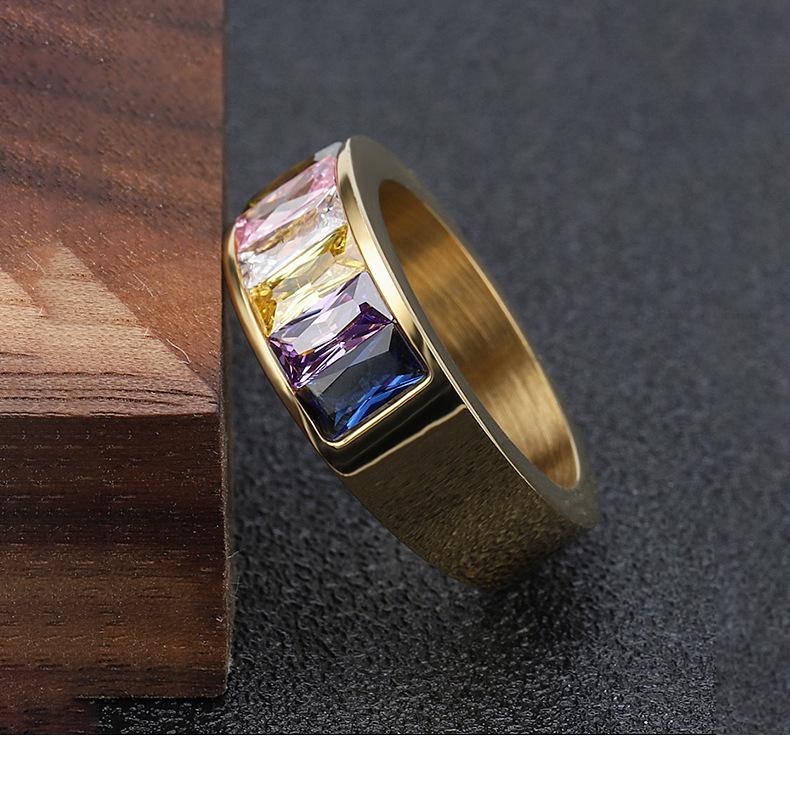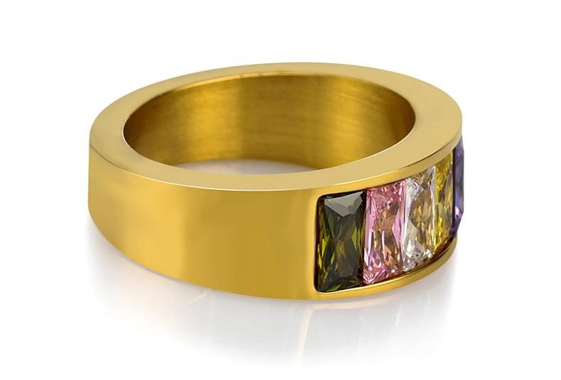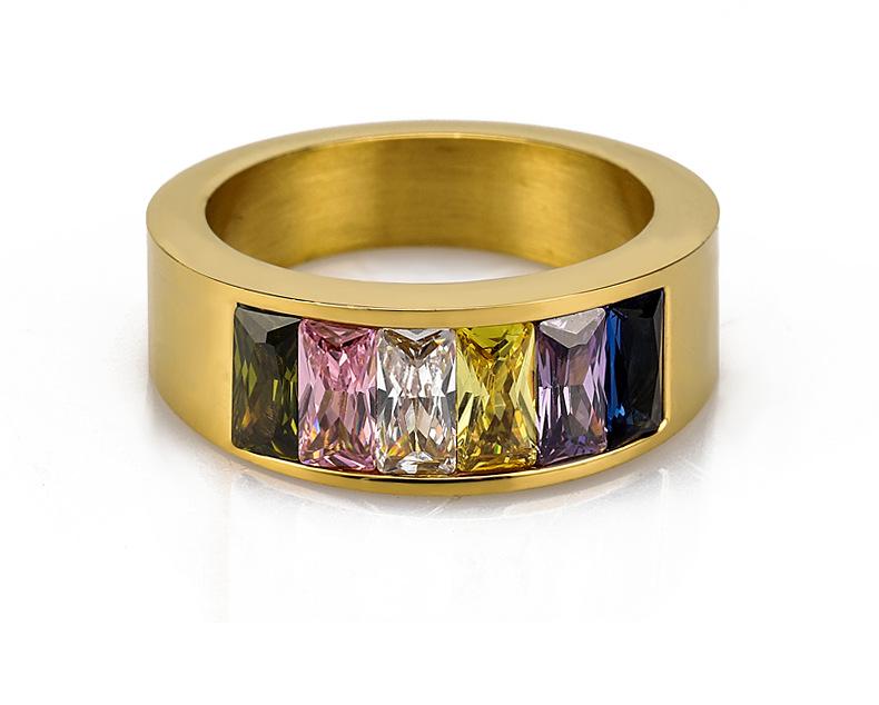 Compra Anillo de Acero de Titanio con Piedra de Color Popular de Venta Caliente Transfronteriza Estilo Europeo y Americano Joyería de Mano Dorada Anillo de Acero Inoxidable con Diamante Brillante Colorido al por mayor en Joom.pro