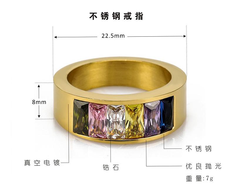 Anillo de Acero de Titanio con Piedra de Color Popular de Venta Caliente Transfronteriza Estilo Europeo y Americano Joyería de Mano Dorada Anillo de Acero Inoxidable con Diamante Brillante Colorido