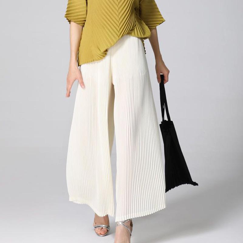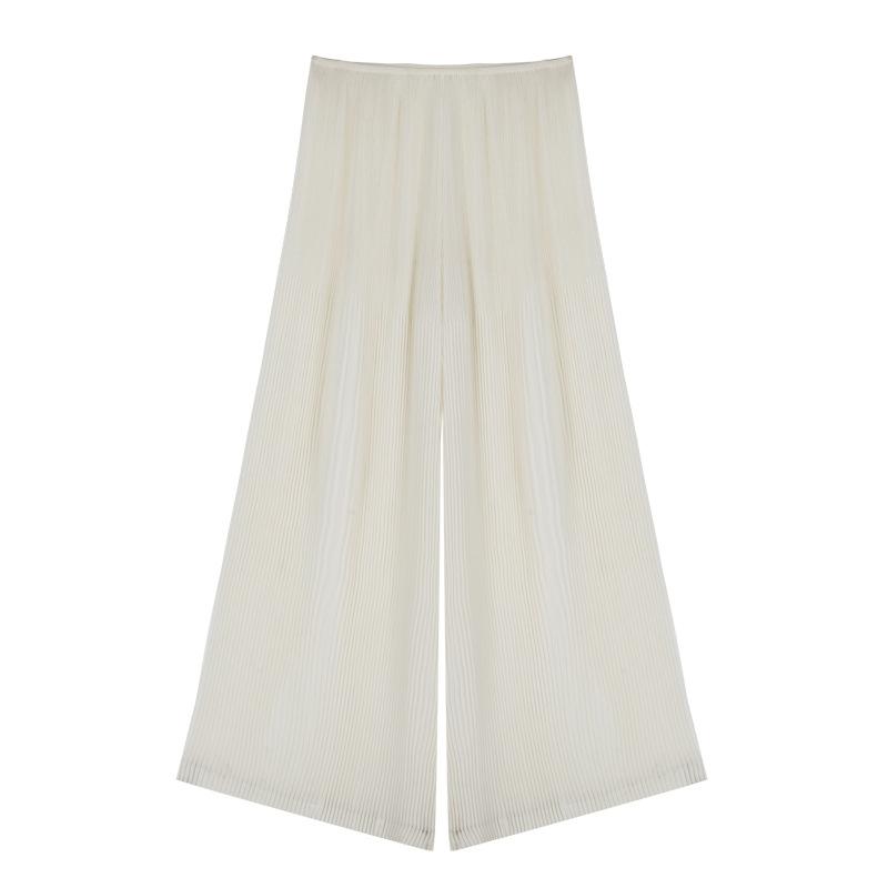 Pantalones anchos plisados Sanzhai, pantalones casuales para mujer, pantalones de mujer, primavera nuevo 2022, pantalones rectos de cintura alta de color sólido europeo y americano, blanco