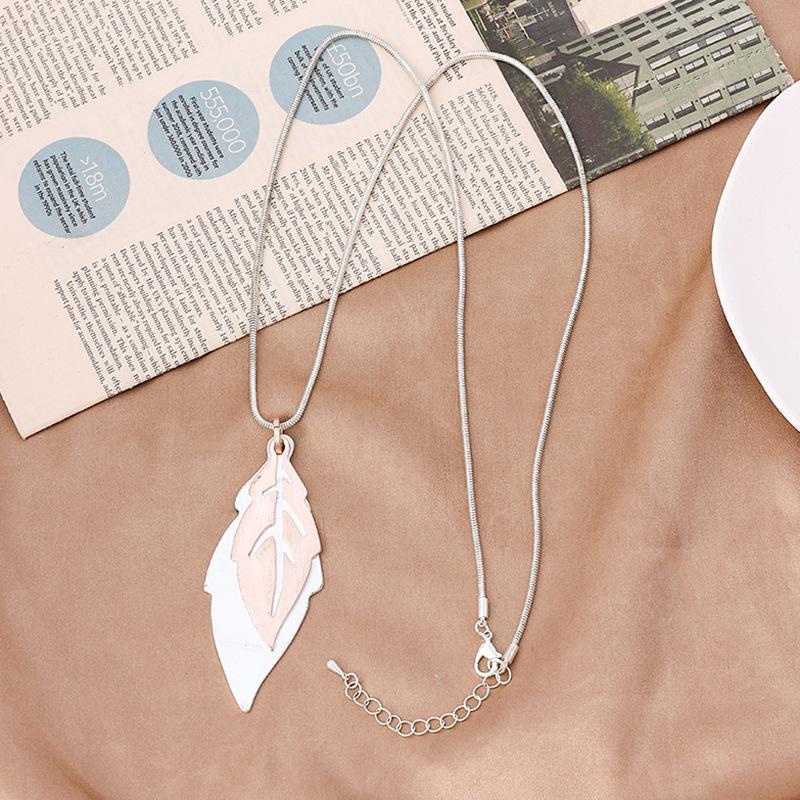 Amazon exclusivo transfronterizo nuevo collar hojas retro europeas y americanas cepillado personalizado cadena de suéter colgante para mujer venta al por mayor
