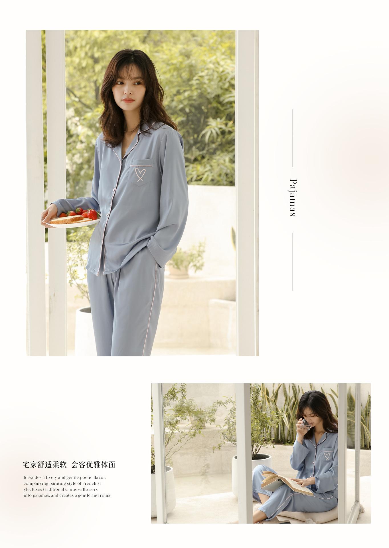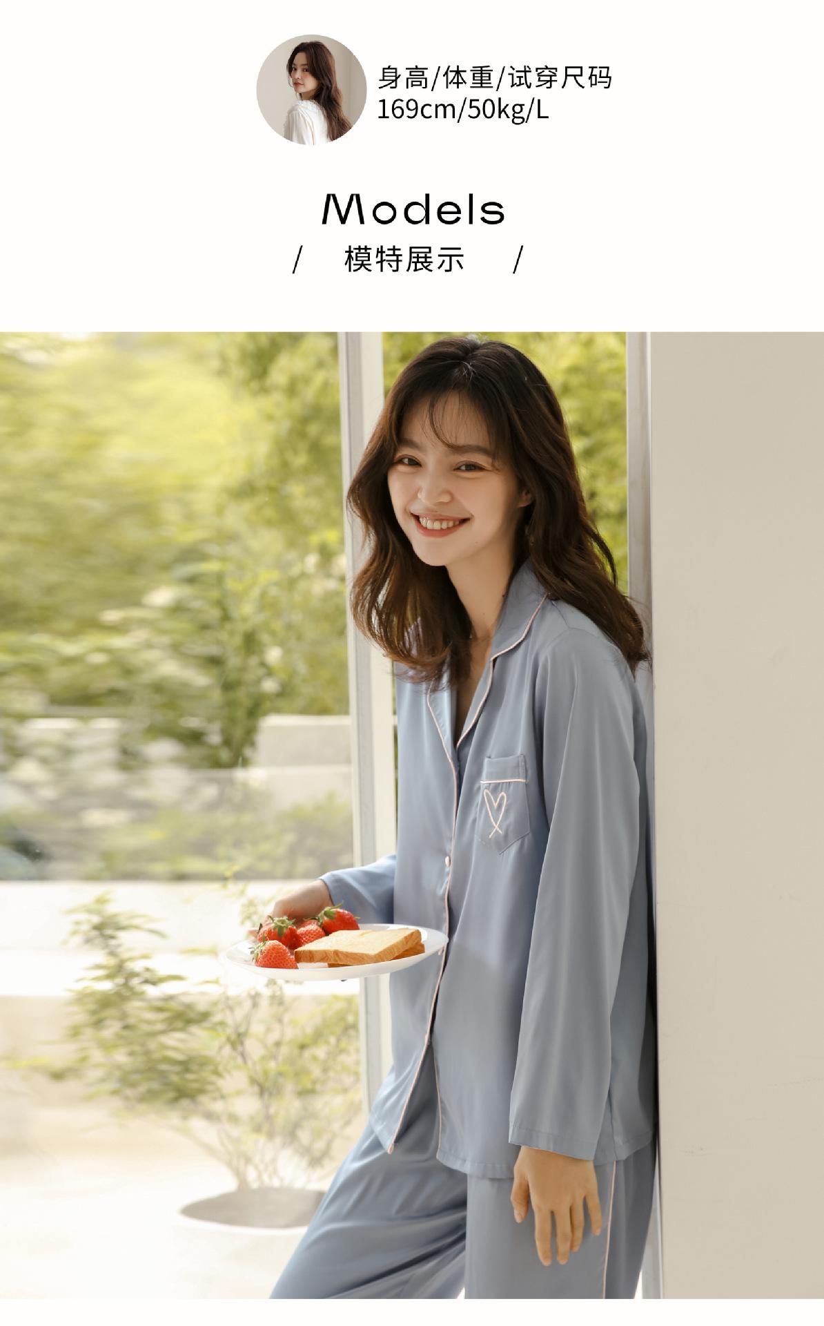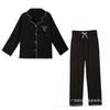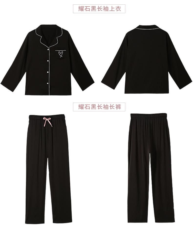 Pijama de Corazón Bordado para Mujer, Pantalón Fino Fresco de Seda de Hielo de Manga Larga, Conjunto de Dos Piezas, Ropa de Descanso Casual de Seda para Mujer