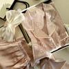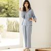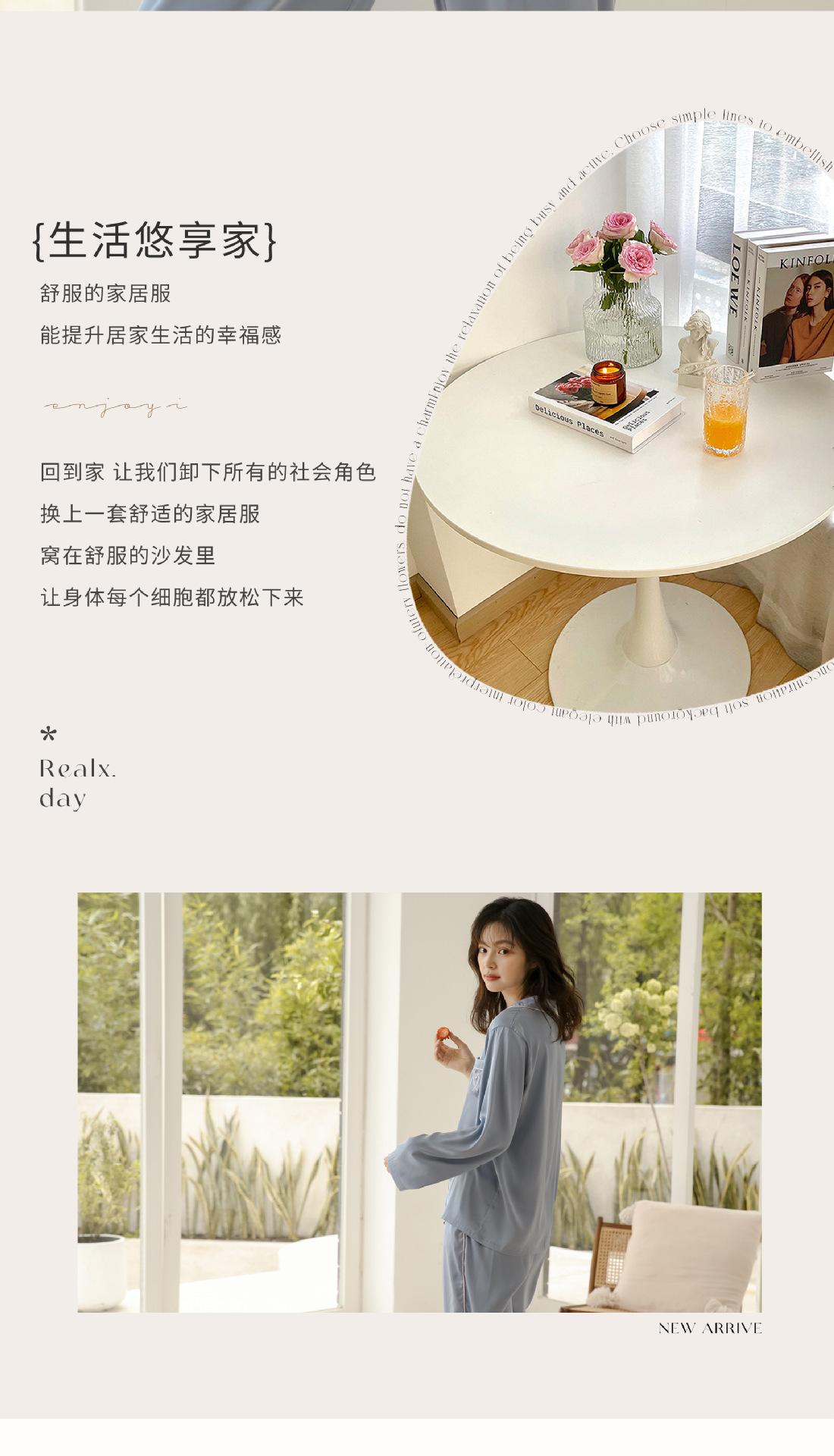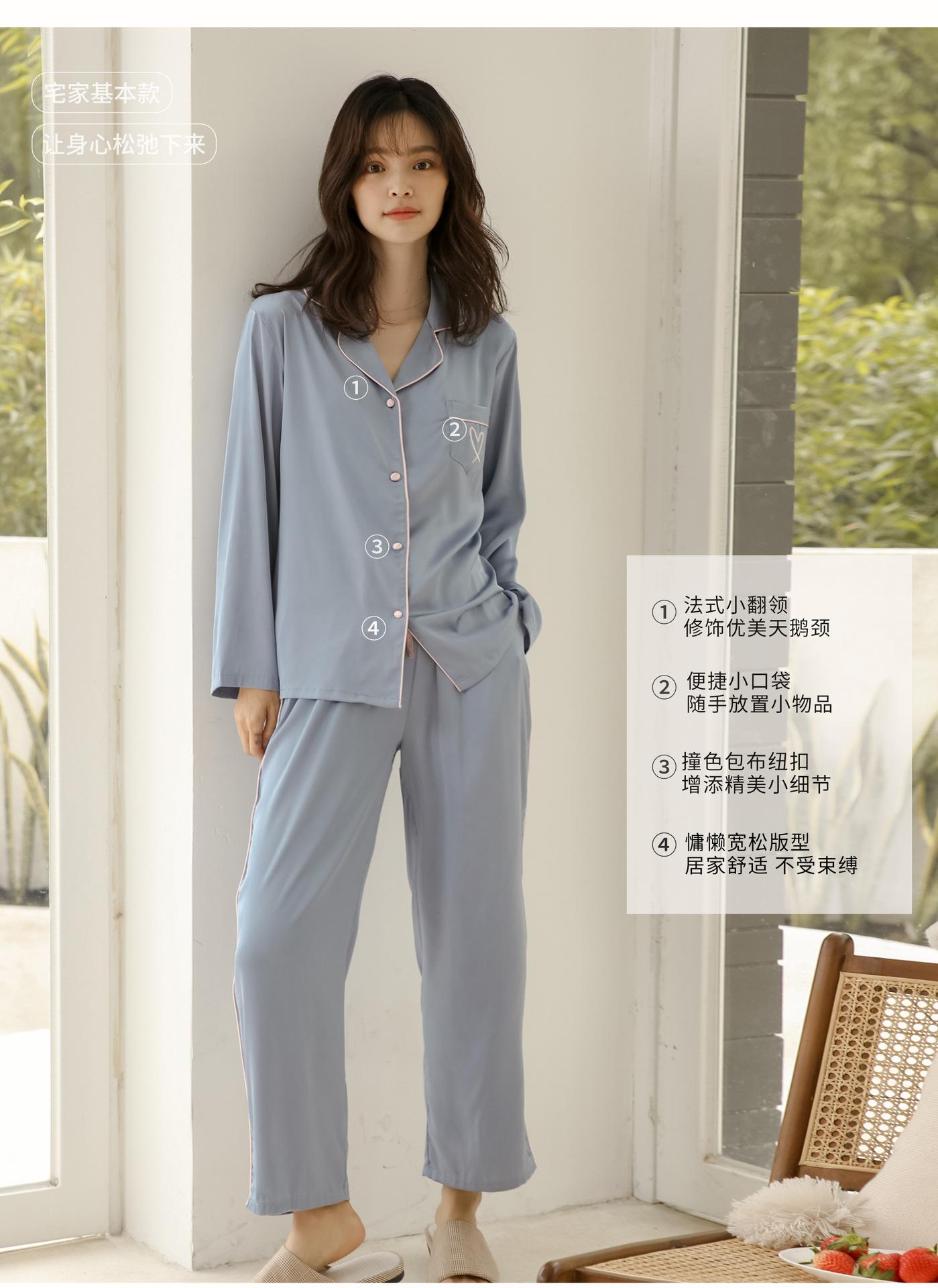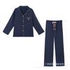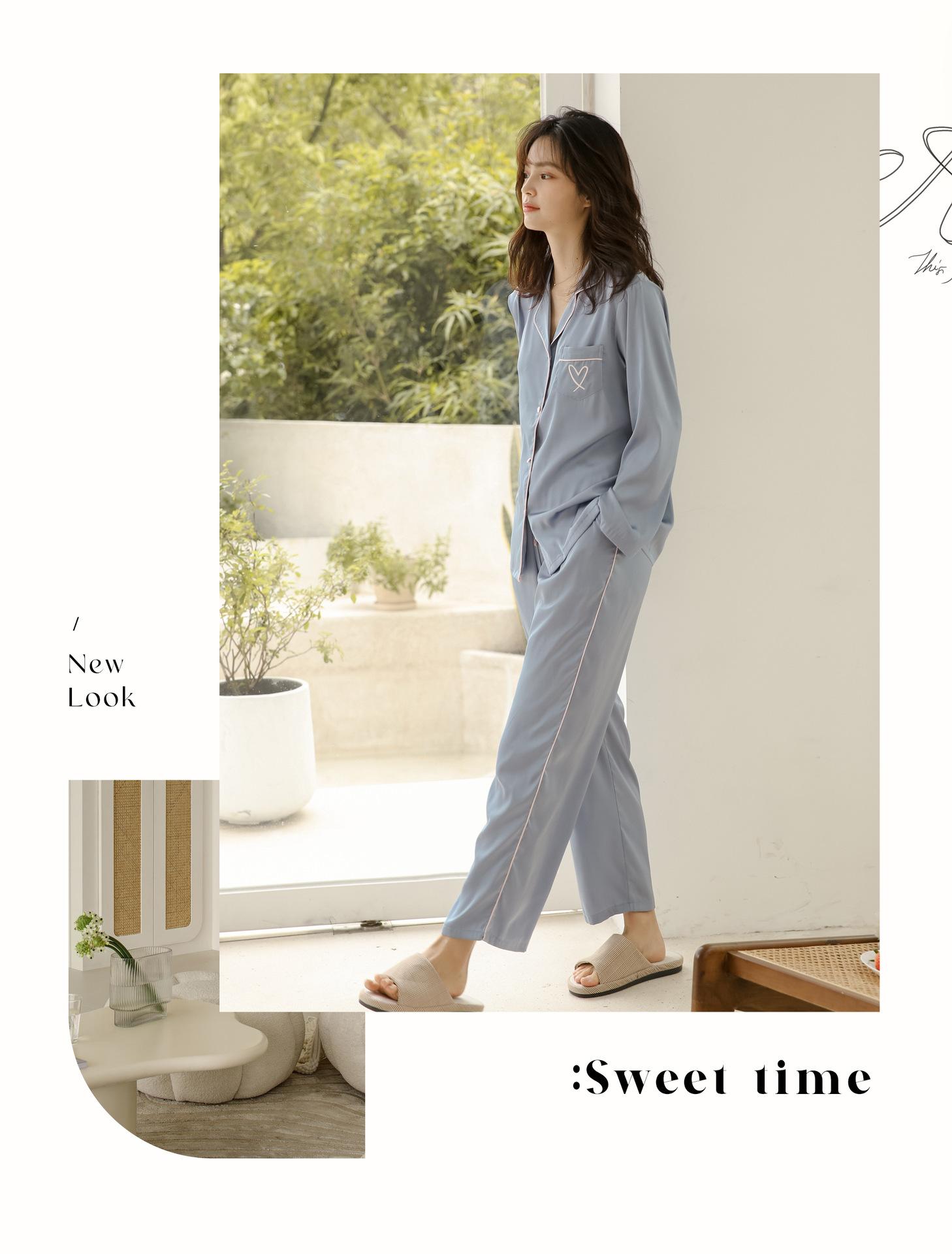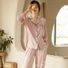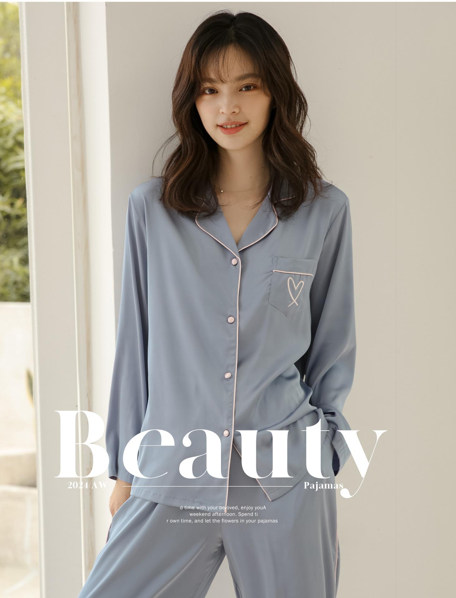 Pijama de Corazón Bordado para Mujer, Pantalón Fino Fresco de Seda de Hielo de Manga Larga, Conjunto de Dos Piezas, Ropa de Descanso Casual de Seda para Mujer