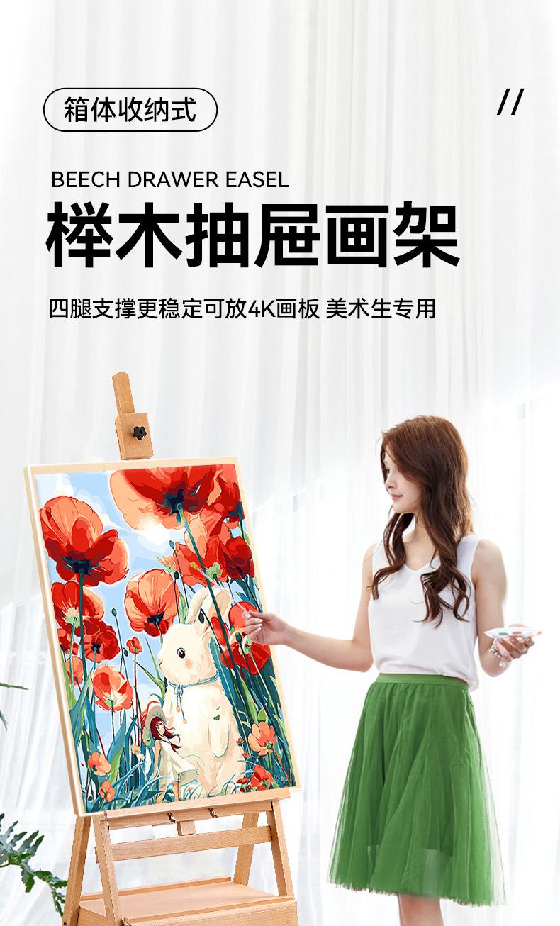 Caballete de madera maciza para estudiantes de arte, tipo cajón, para bocetos, para óleo, de madera de haya, elevable, para publicidad.
