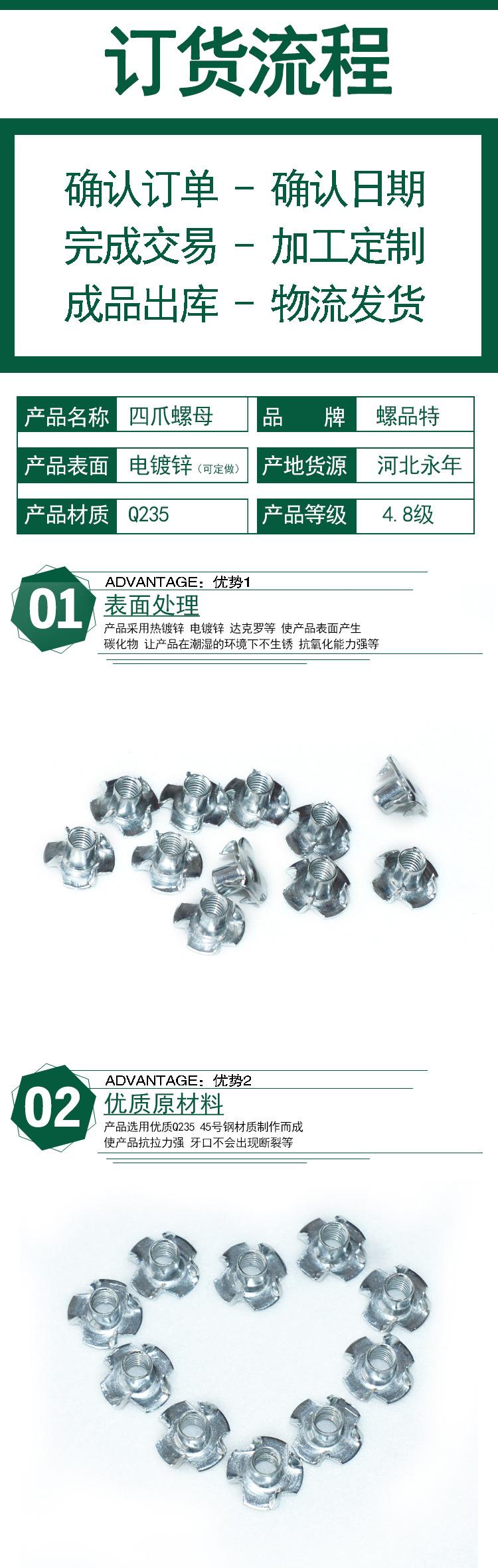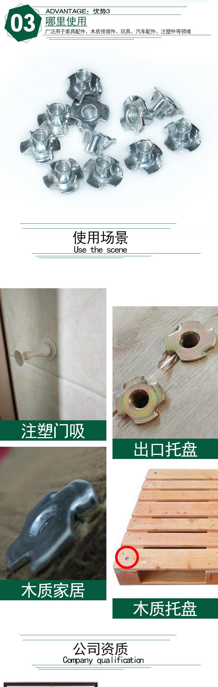 Tuerca de cuatro garras galvanizada por puntos, tuerca incrustada con incrustación de madera, tornillo de cuatro garras, tuerca de cuatro garras para muebles