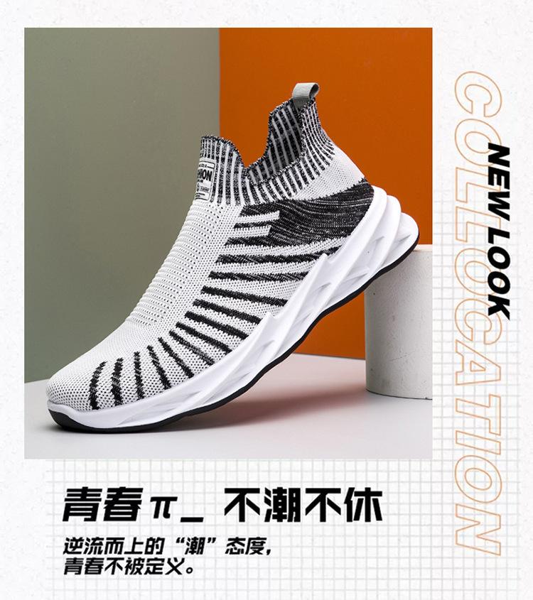 Comercio exterior transfronterizo zapatos de hombre de talla grande 2025 nuevos zapatos de hoja transpirables tejidos con mosca boca de calcetín zapatos casuales zapatos deportivos de suela blanda