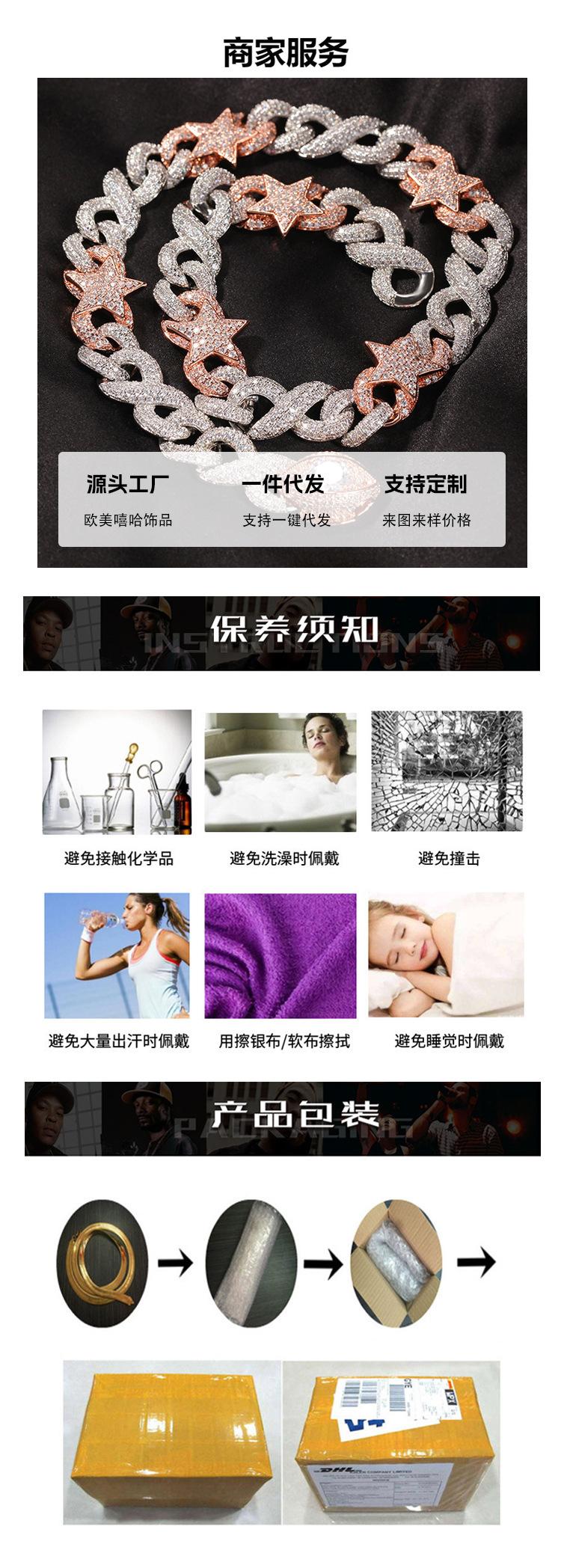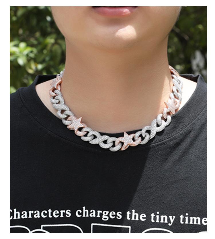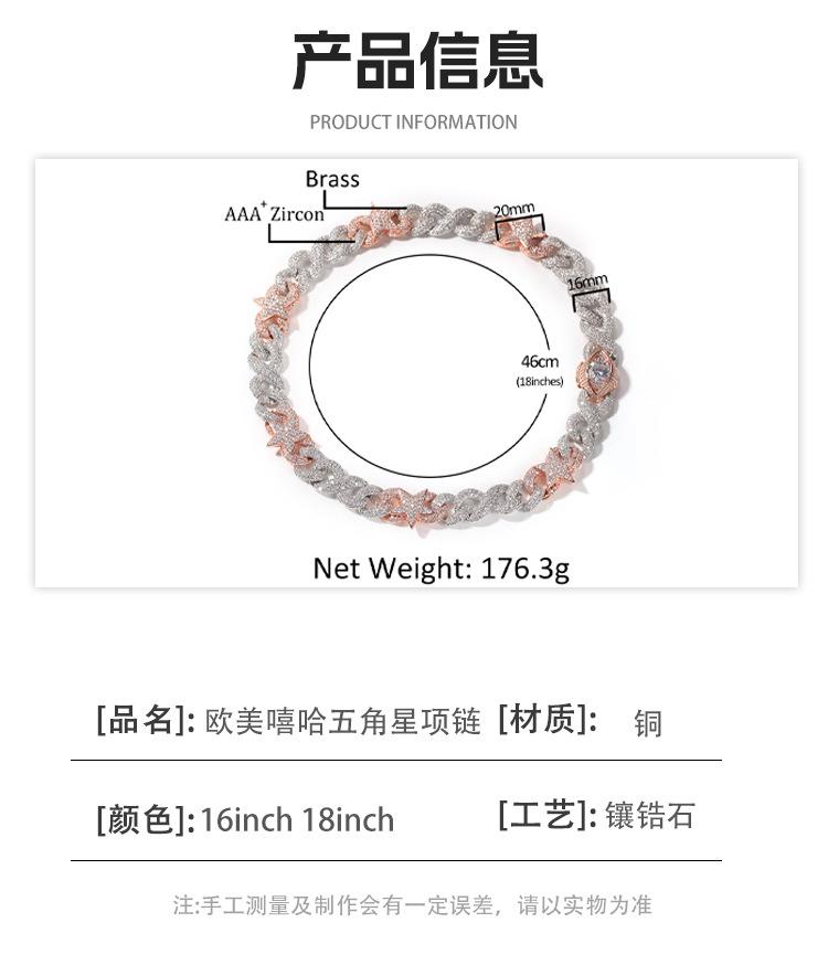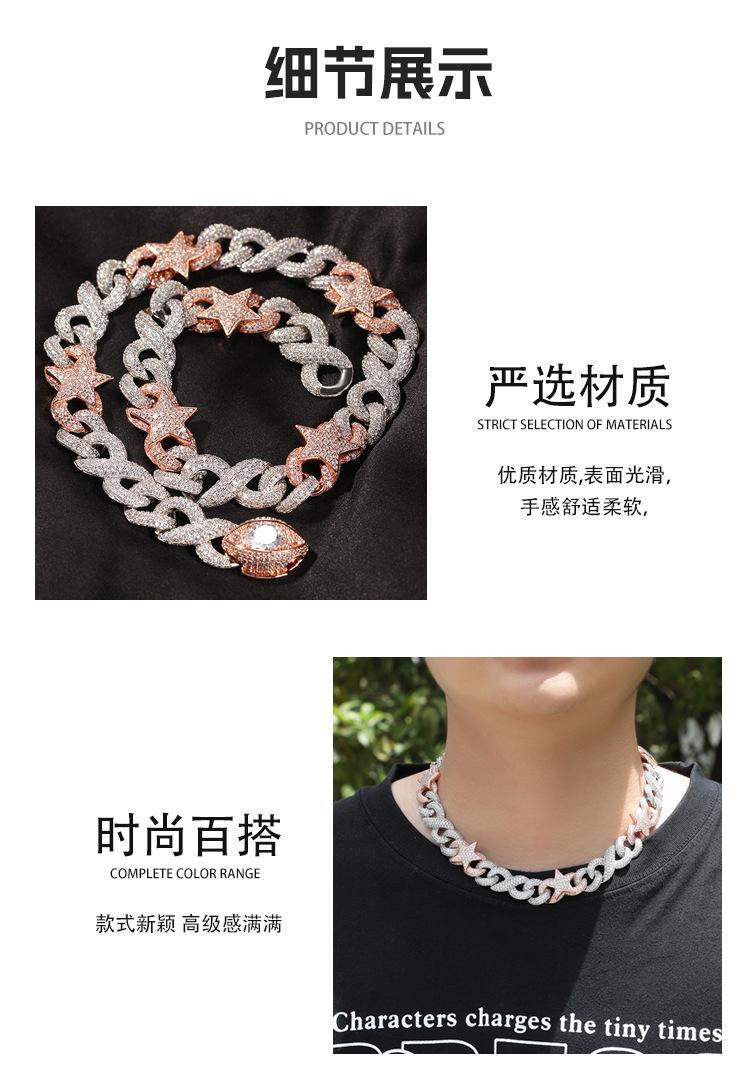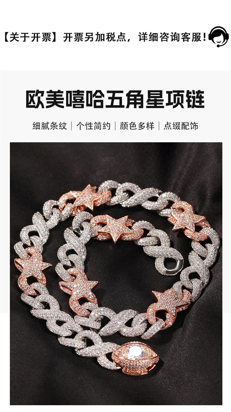 Hip-Hop Europeo y Americano Nueva Hebilla de Ojo de Estrella de Cinco Puntas Cadena Cubana Collar para Hombre Joyería Circonita de Alta Gama Cadena Clavicular