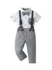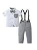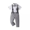 Nueva ropa infantil transfronteriza, tirantes, ropa de bebé de dos piezas, traje de verano de manga corta a rayas para caballero británico.