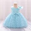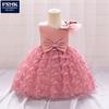 Vestido de princesa para niñas, estilo europeo y americano, sin mangas, con flores tridimensionales, de malla, tipo pontón, para cumpleaños de bebés de un año.
