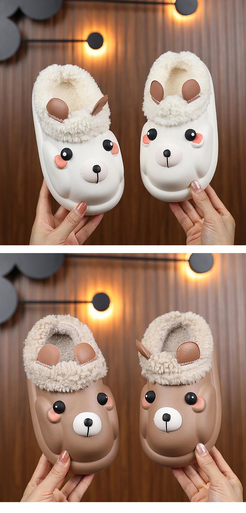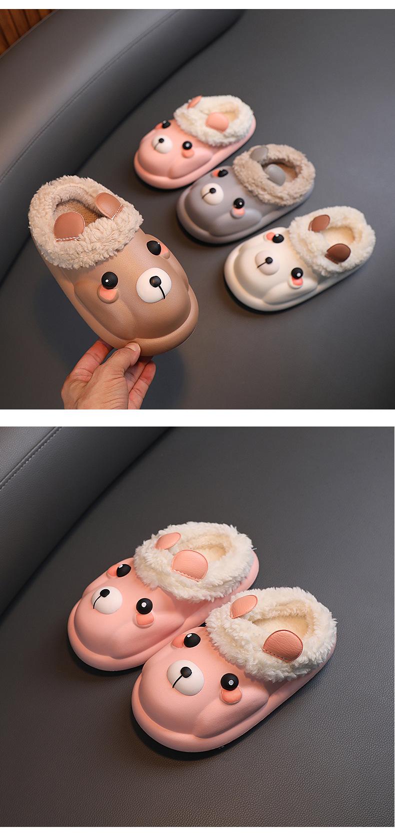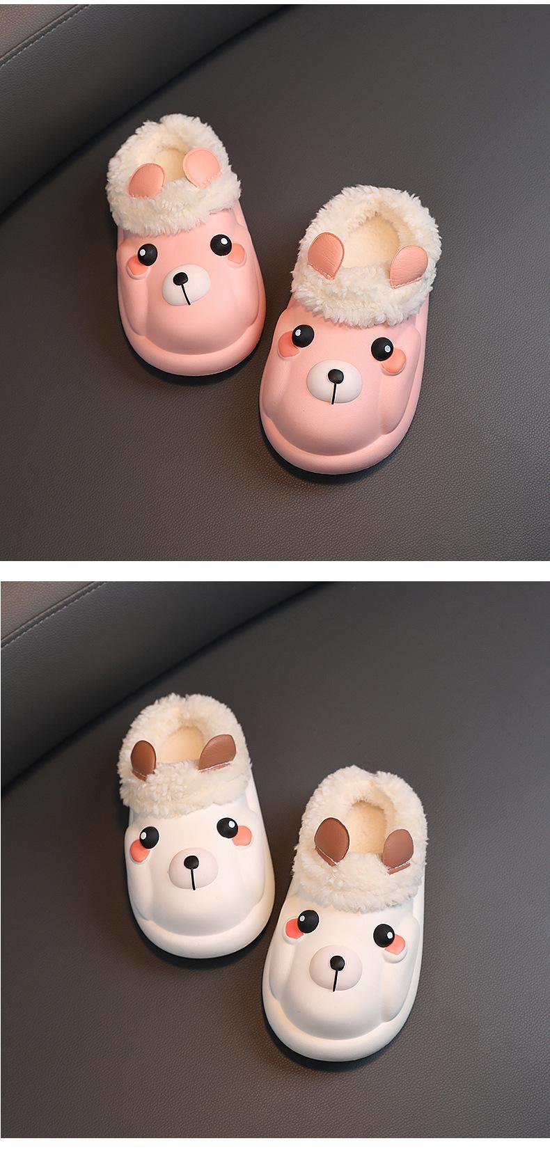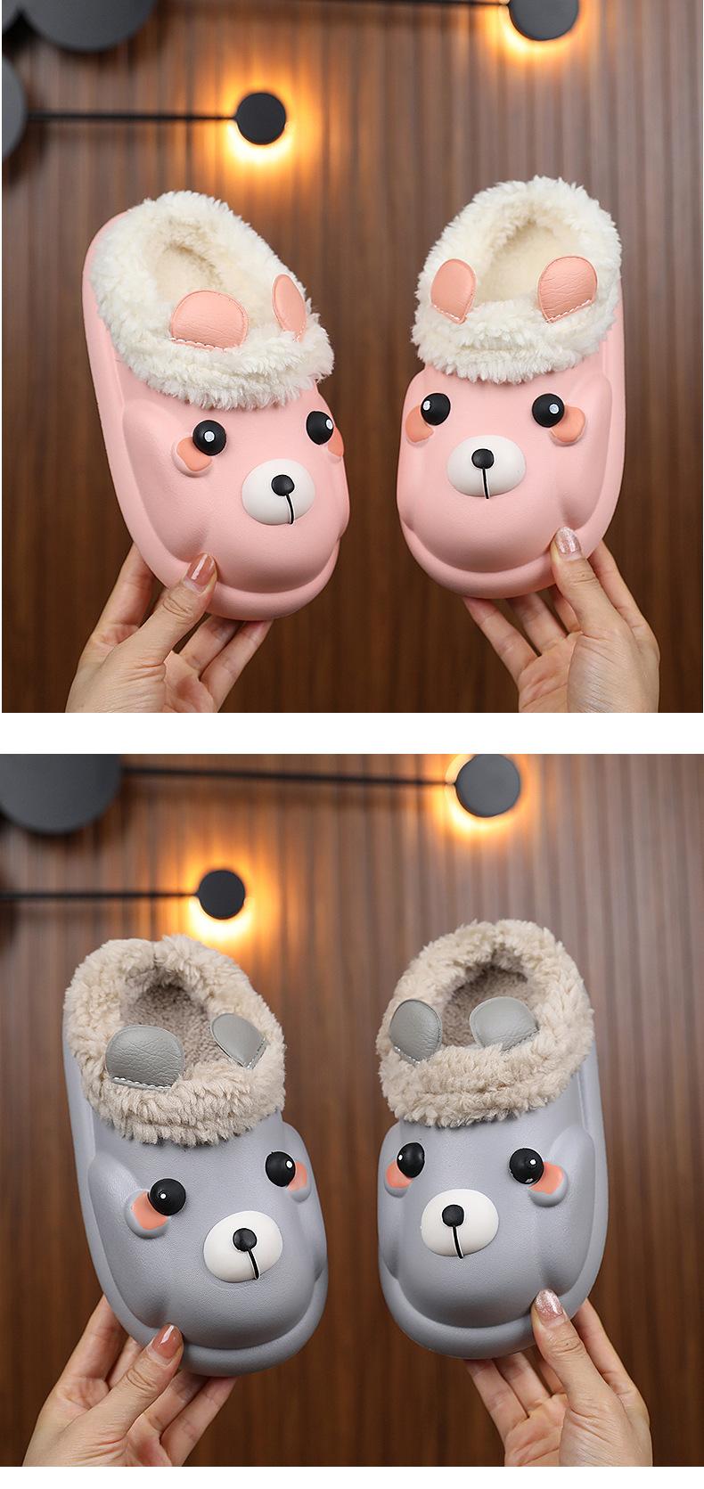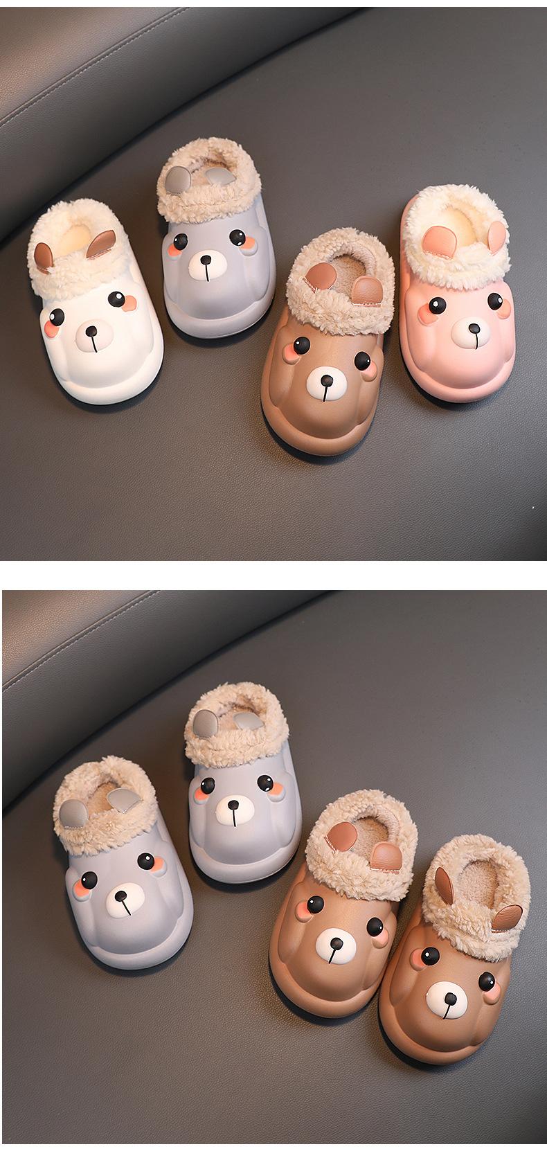 Lindas pantuflas de algodón impermeables para mujer invierno nuevo caricatura de oso para casa gruesas antideslizantes para niños pantuflas de algodón para interior
