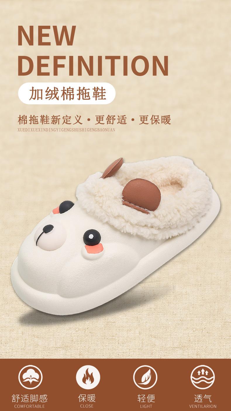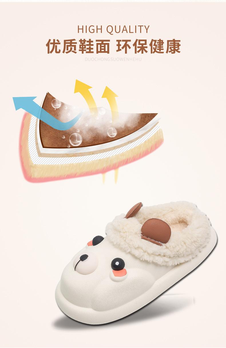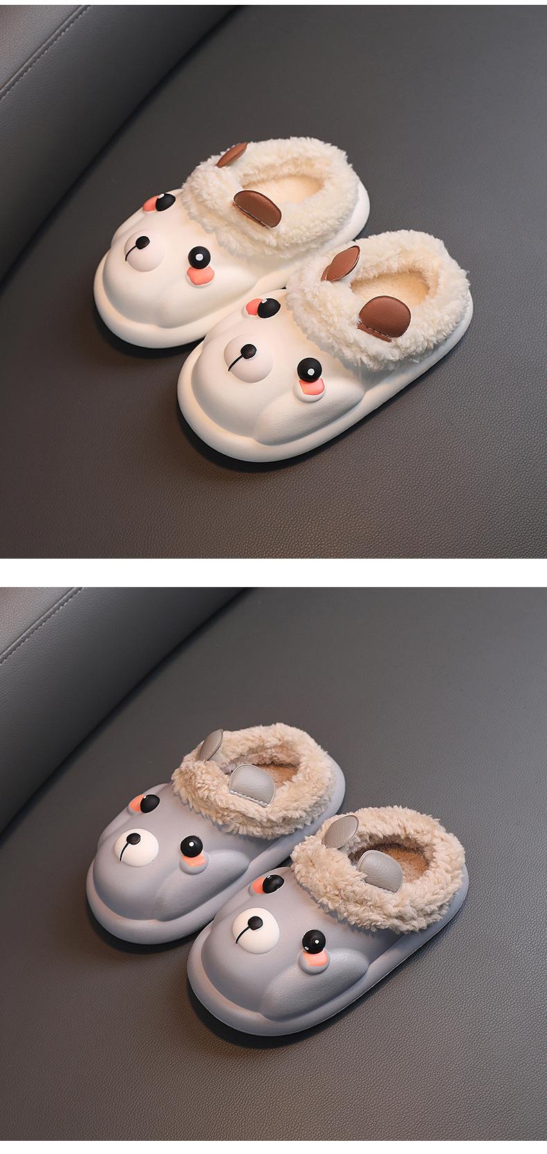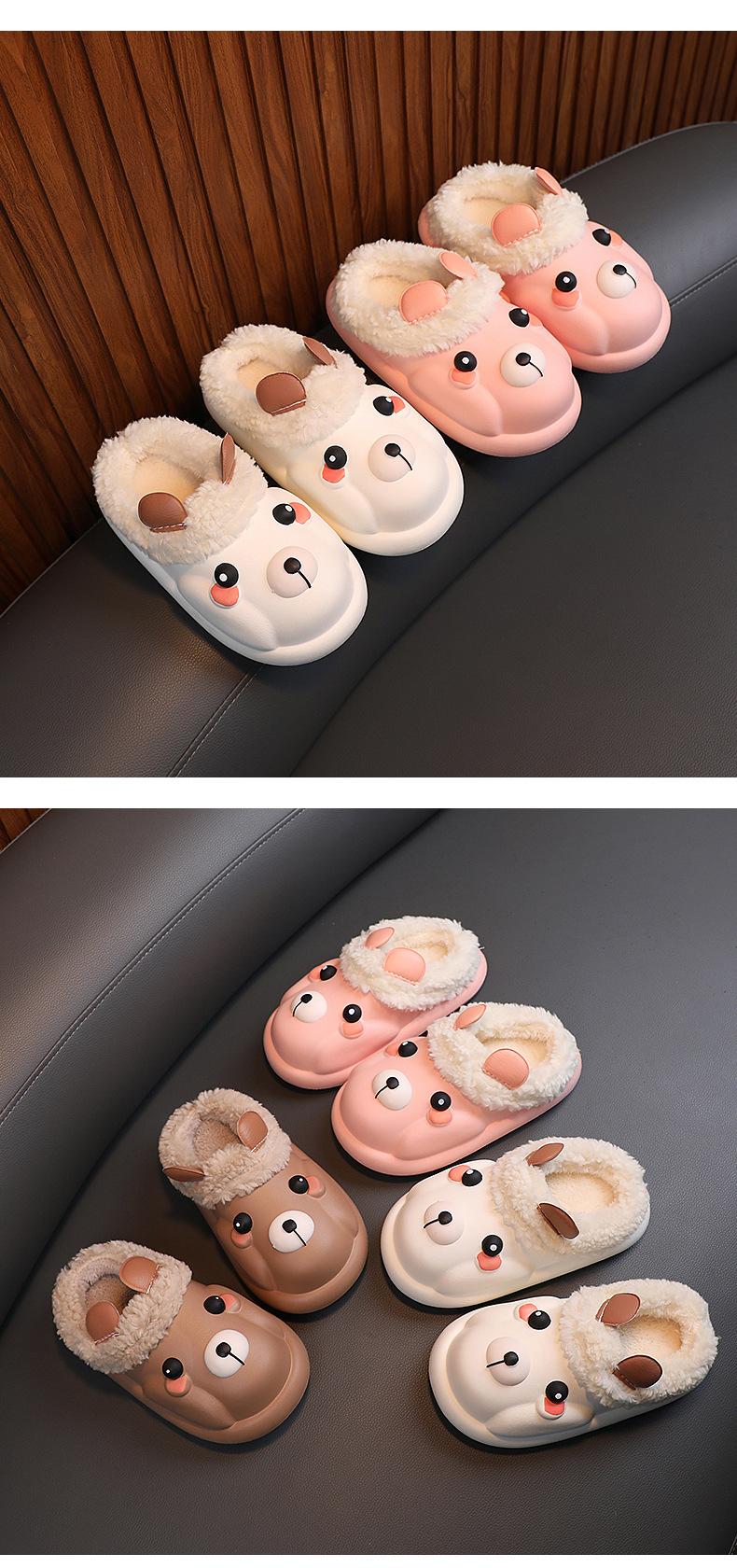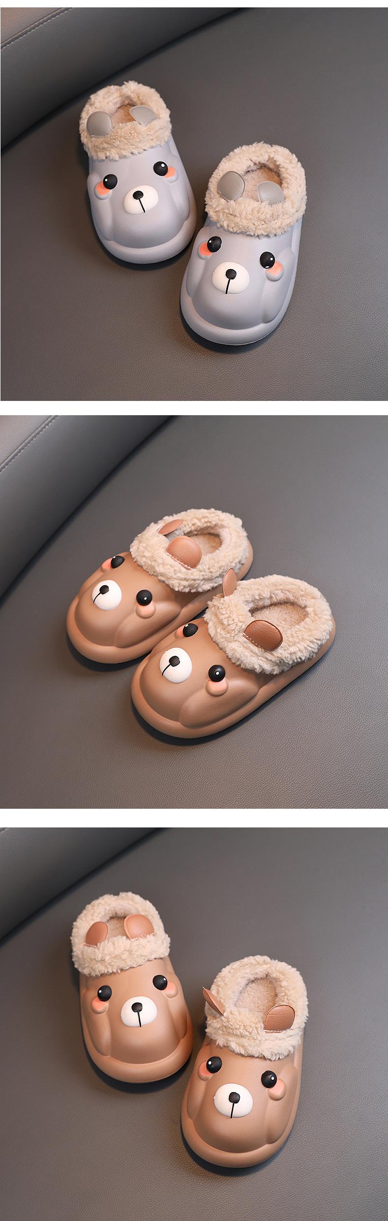 Lindas pantuflas de algodón impermeables para mujer invierno nuevo caricatura de oso para casa gruesas antideslizantes para niños pantuflas de algodón para interior