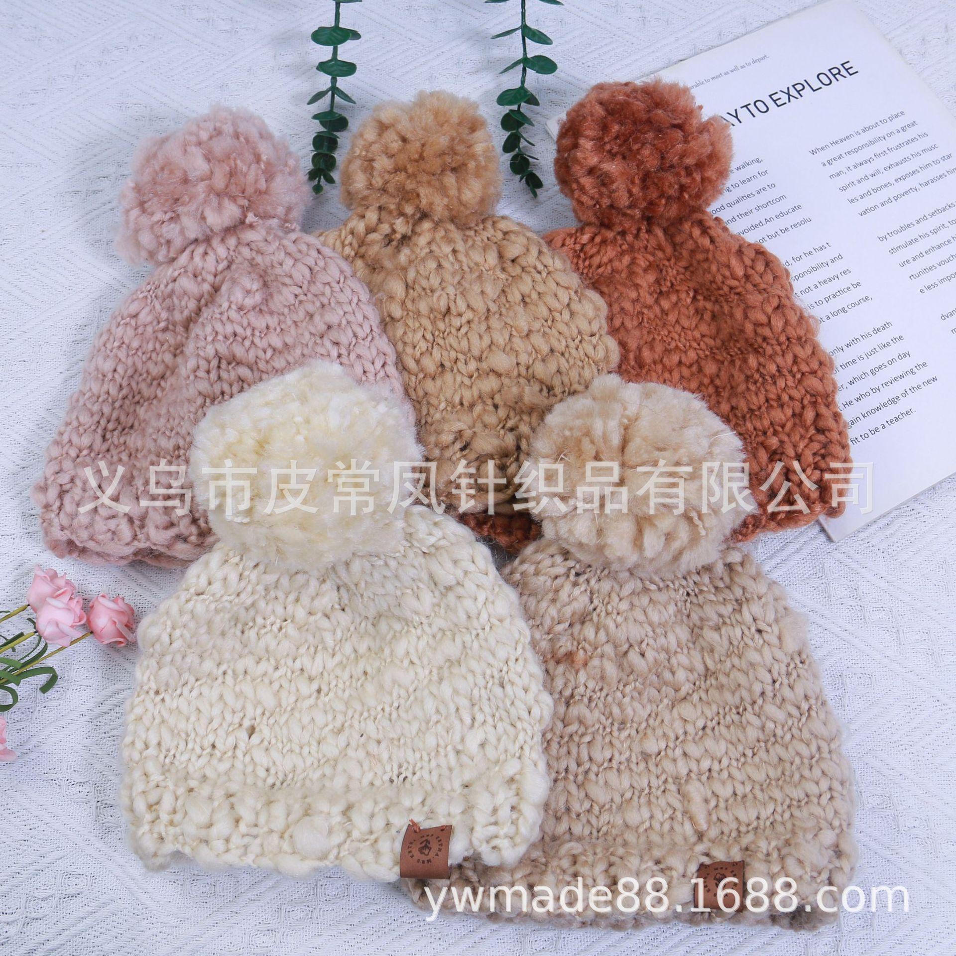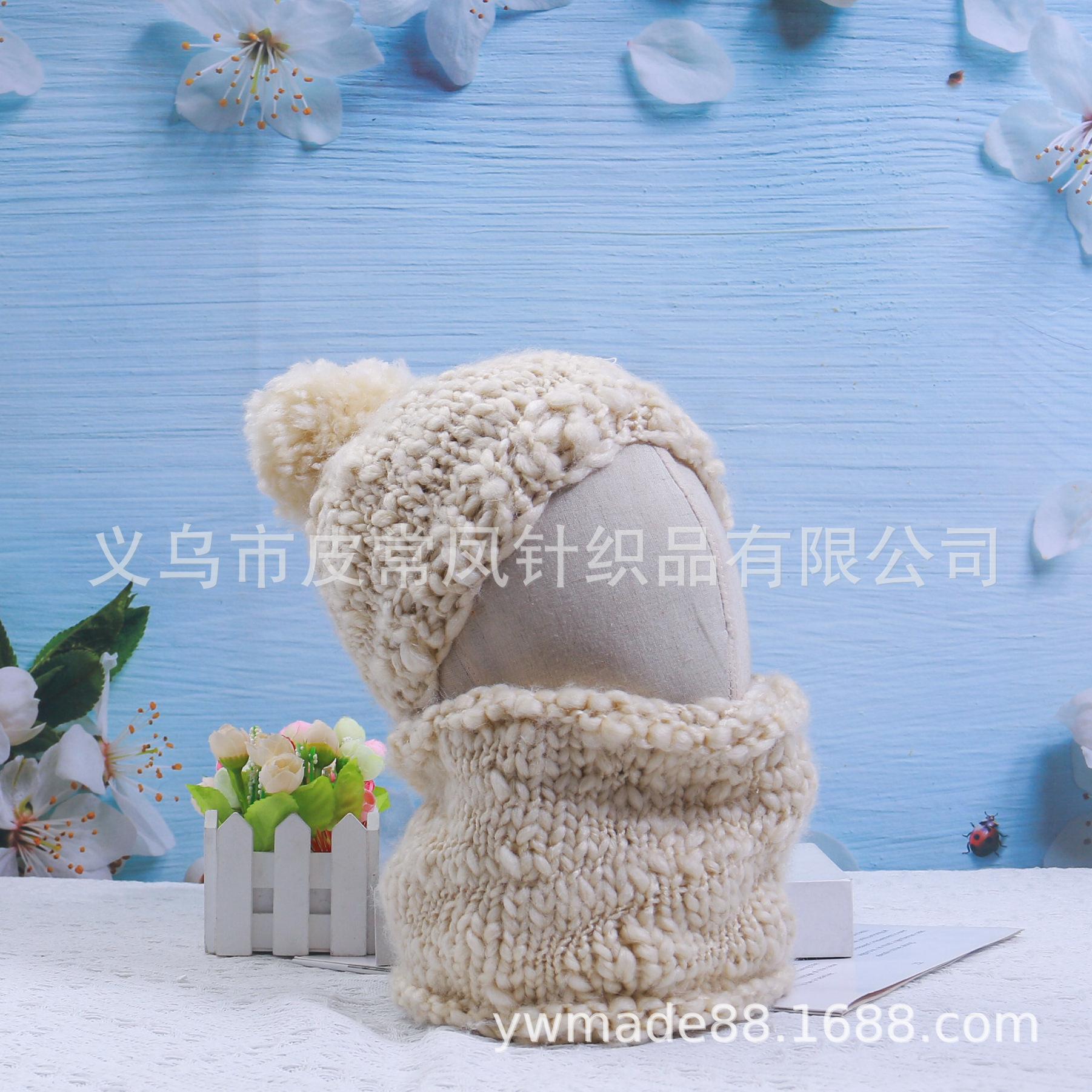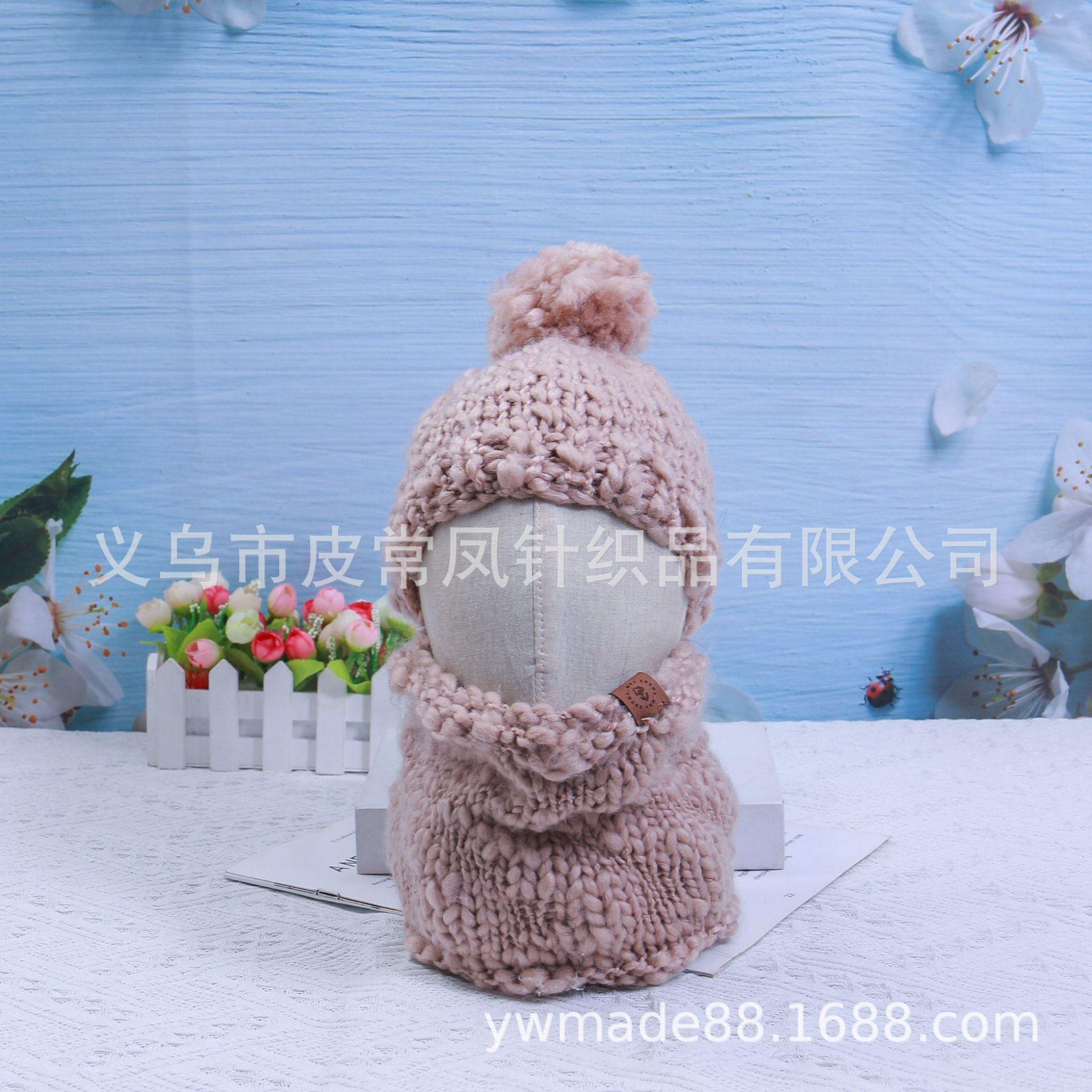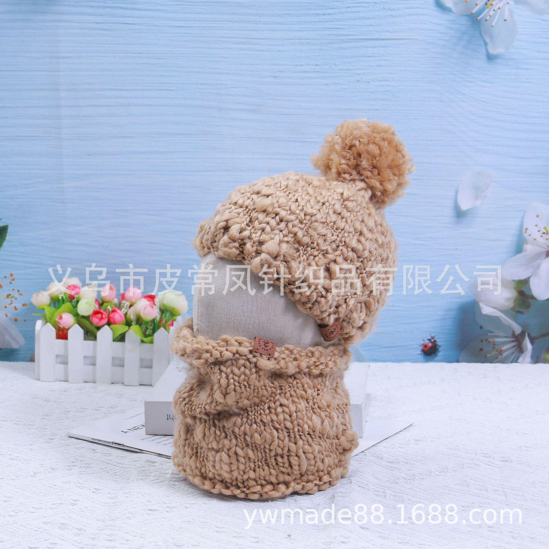 2022 Amazon nuevo gorro de lana de vientre grande estilo padre-hijo gorro tejido a mano otoño e invierno cálida bufanda juego de dos piezas