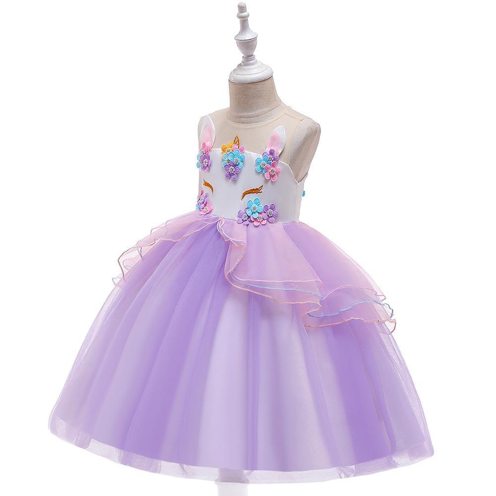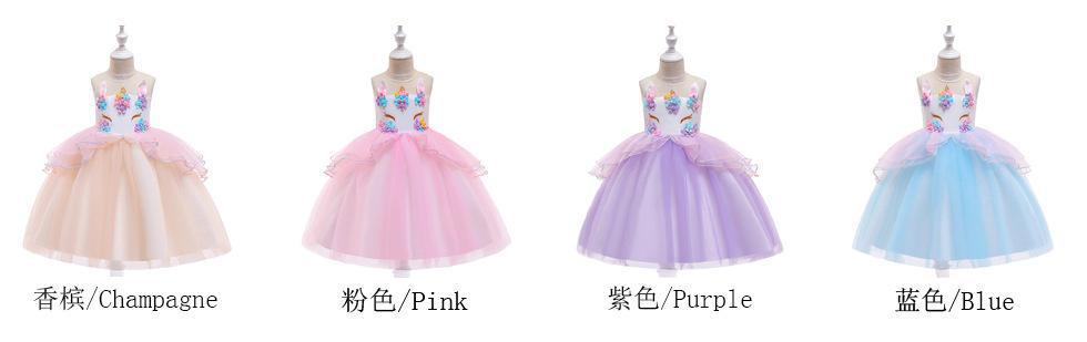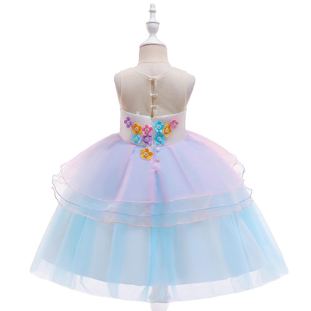 Vestido infantil europeo y americano, falda abullonada, disfraz de princesa, unicornio, vestido de malla para fiesta de cumpleaños infantil, disponible en stock