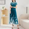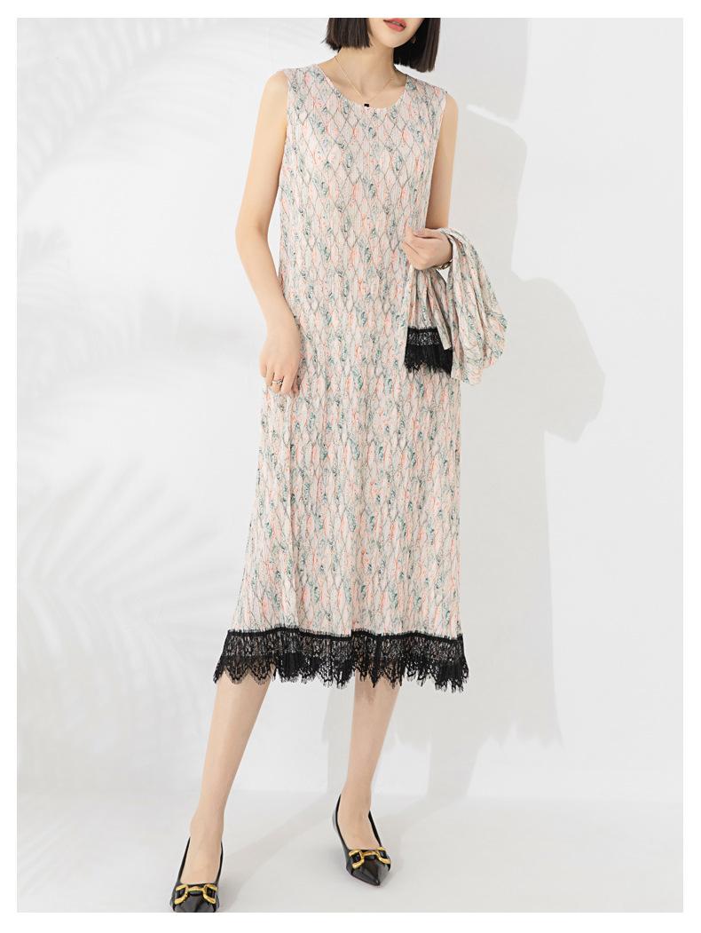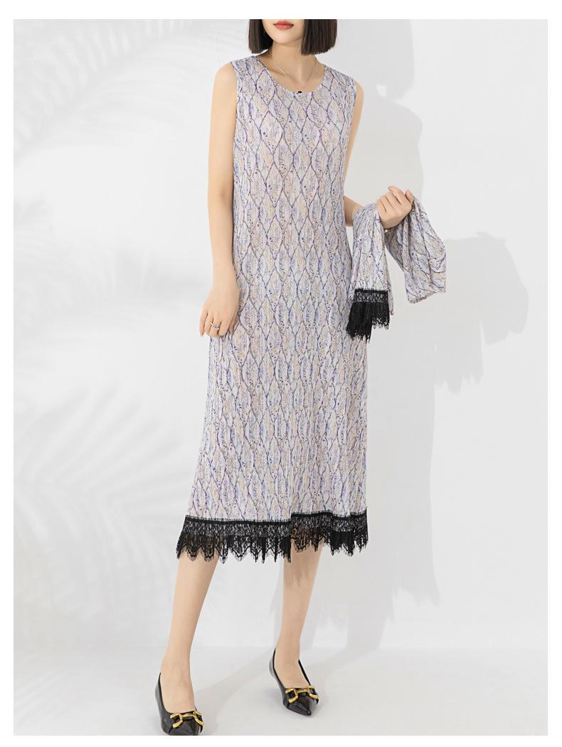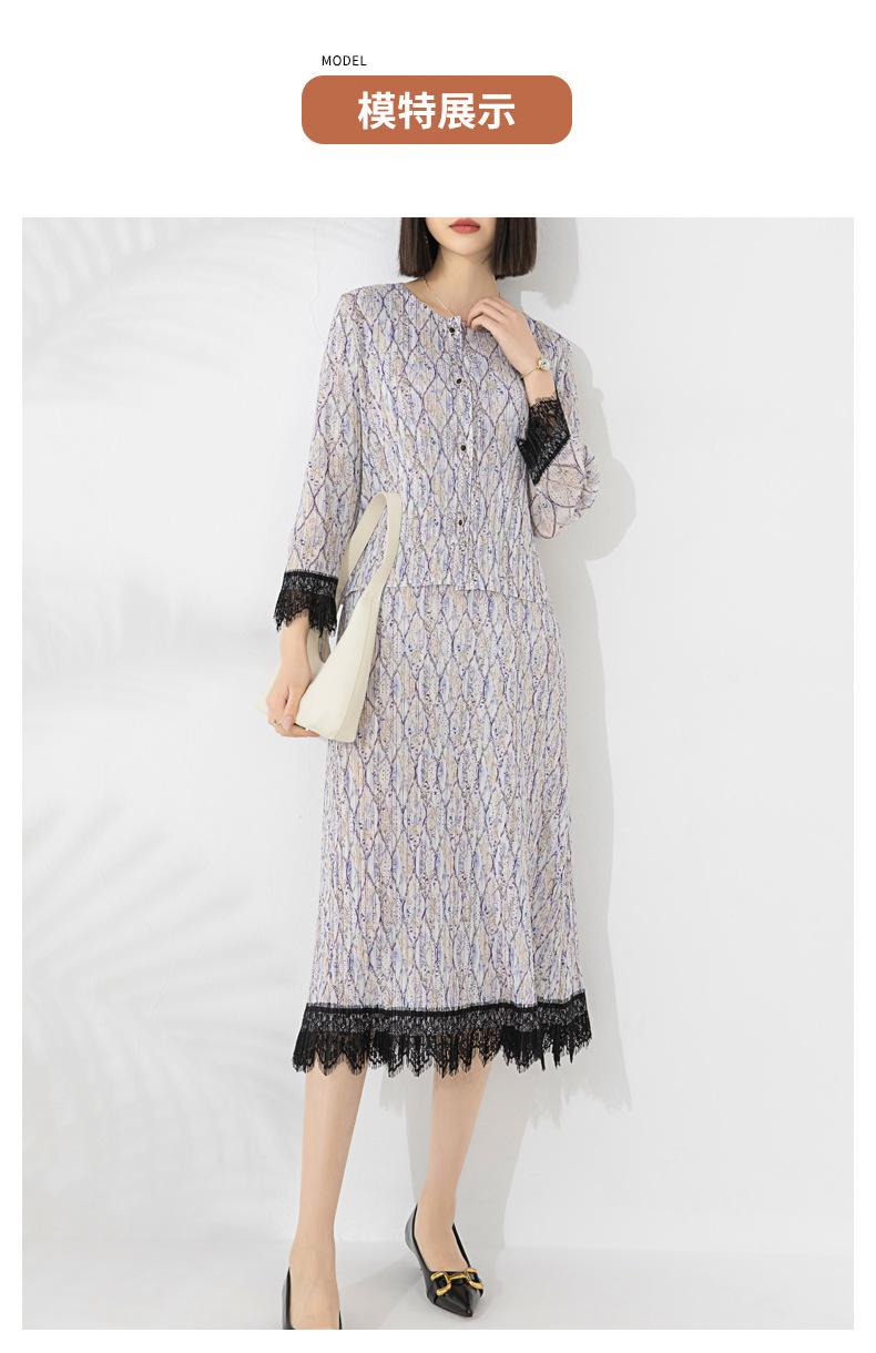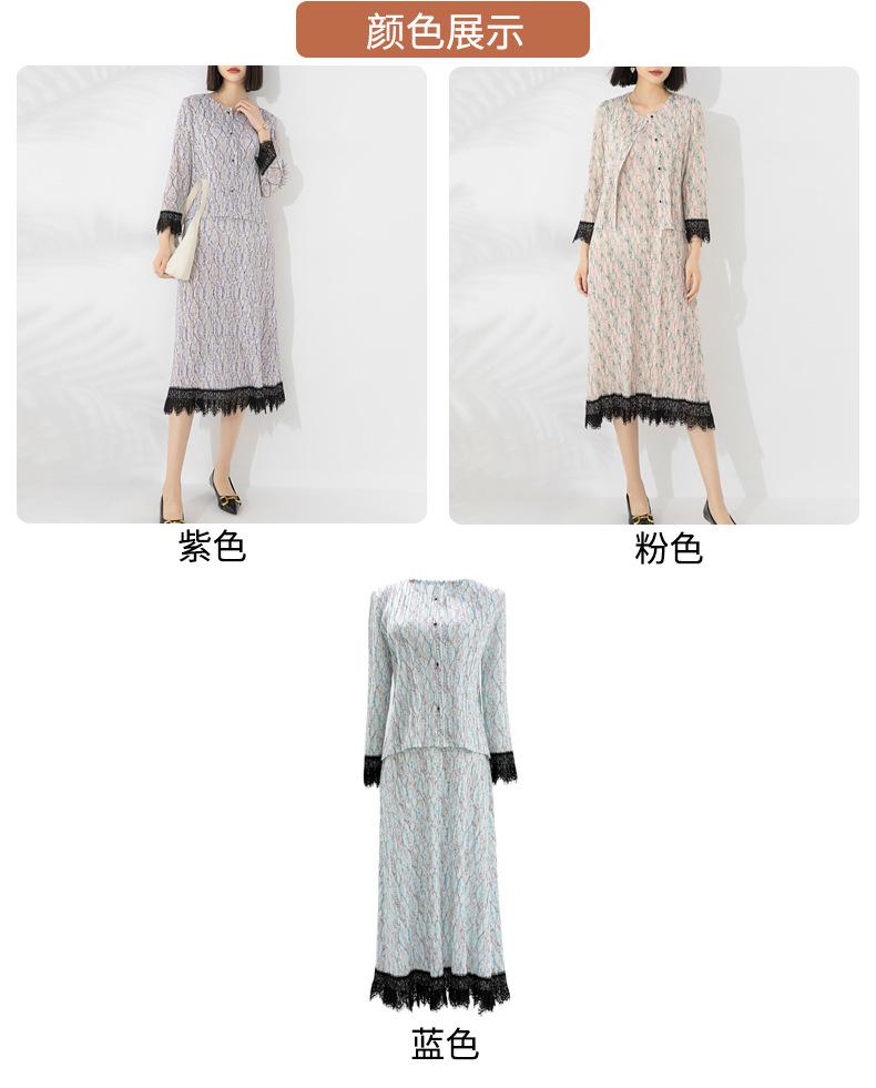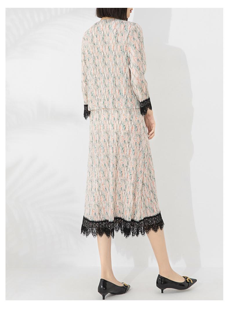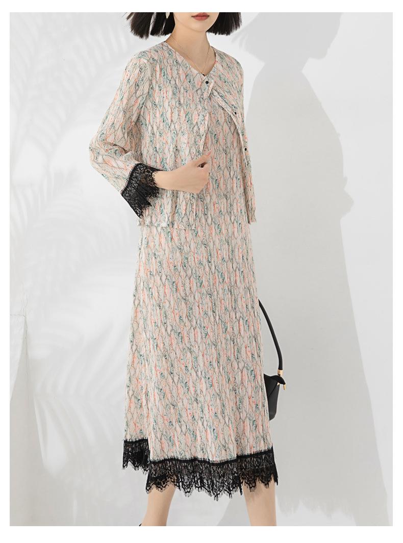 Traje estampado elegante de moda, ropa plisada de alta gama para mujer, 2024, nuevo conjunto de dos piezas de abrigo corto y vestido interior