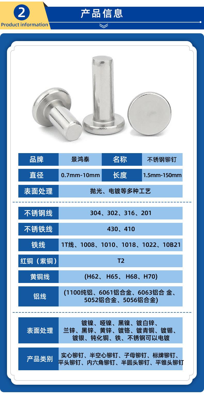 Remache de cabeza plana, pulido, semihueco, para componentes electrónicos no estándar, remache sólido, remache de acero inoxidable 304