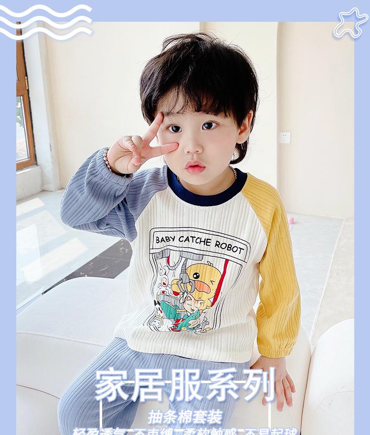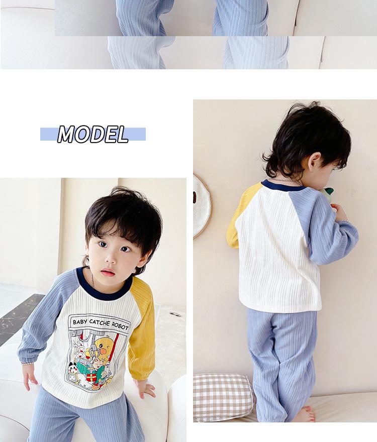 Conjunto de Pijama para Niños Algodón Puro Niños Manga Larga Ropa para el Hogar Primavera y Verano Bebé Holgado Jersey Pijama Sección Delgada Niñas
