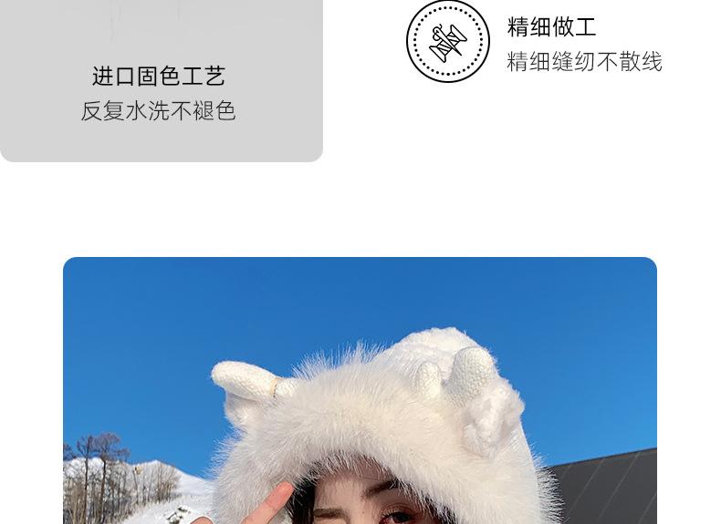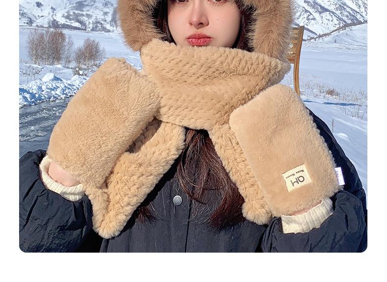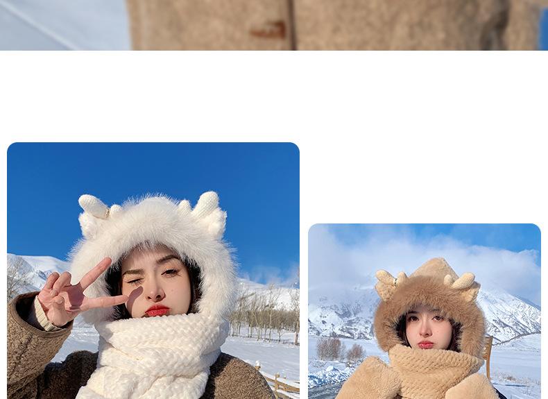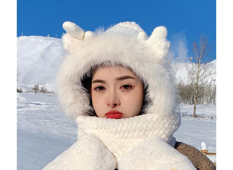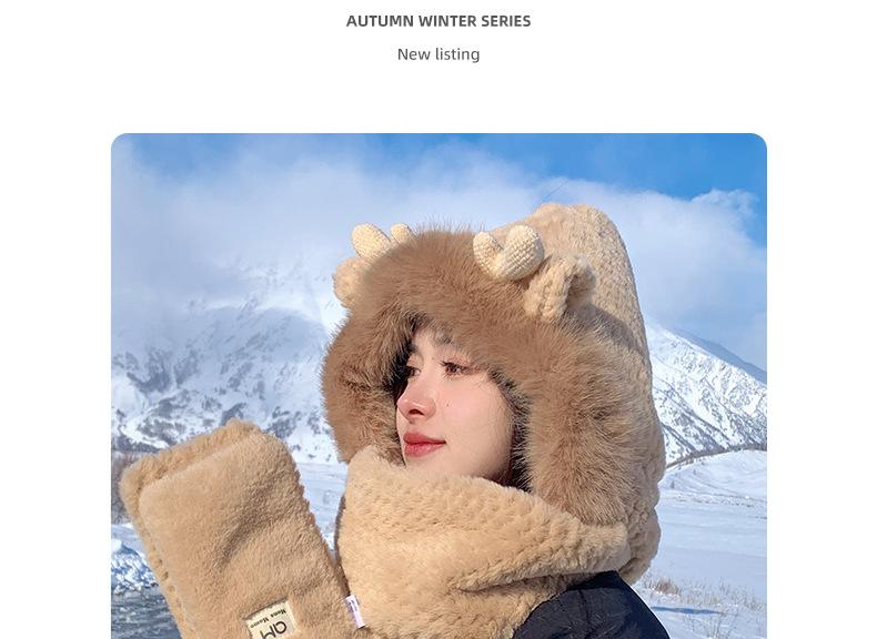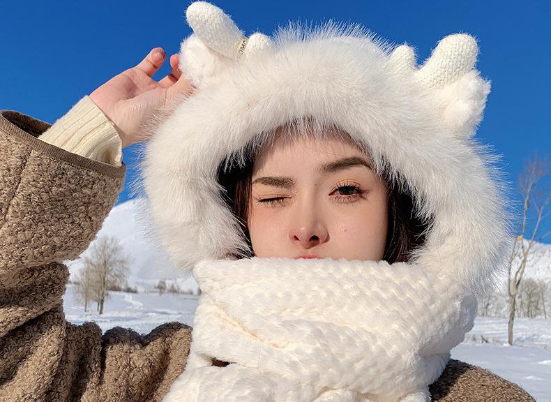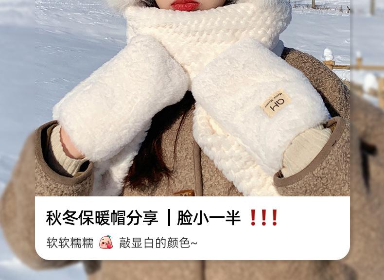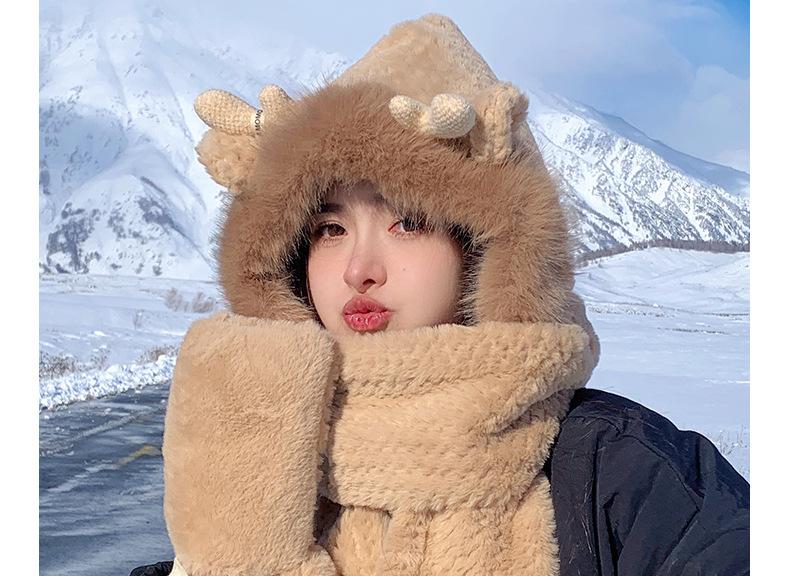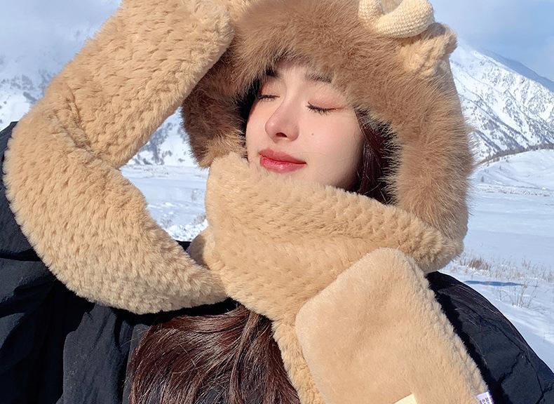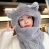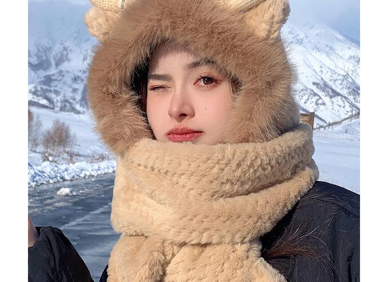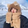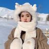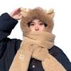Gorro de oso de invierno con bufanda y forro polar integrado, grueso y resistente al frío, gorro de felpa, moderno y combinable, gorro cálido para montar a caballo para mujer