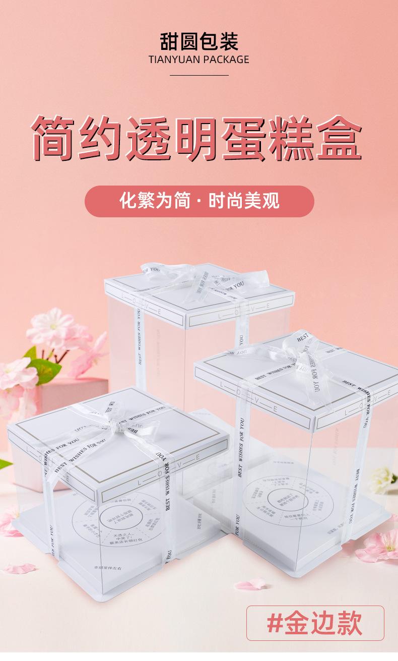 Caja Transparente Personalizada con Borde Dorado para Pastel de Cumpleaños 4 Pulgadas 6 Pulgadas 8 Pulgadas 10 Pulgadas Sencilla y Doble