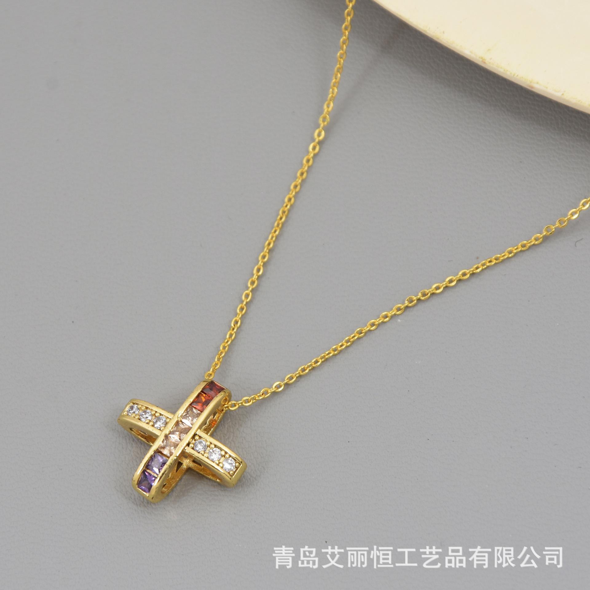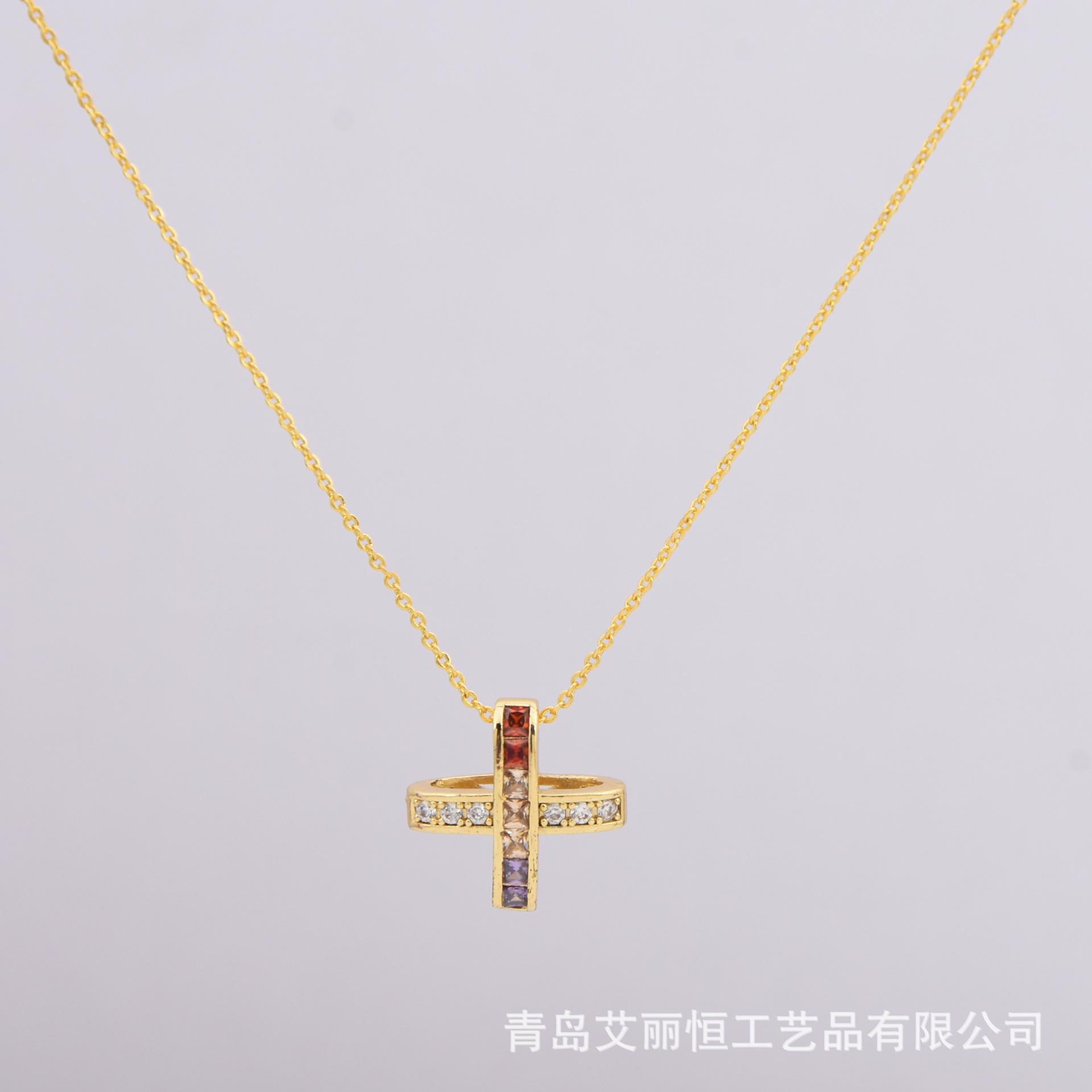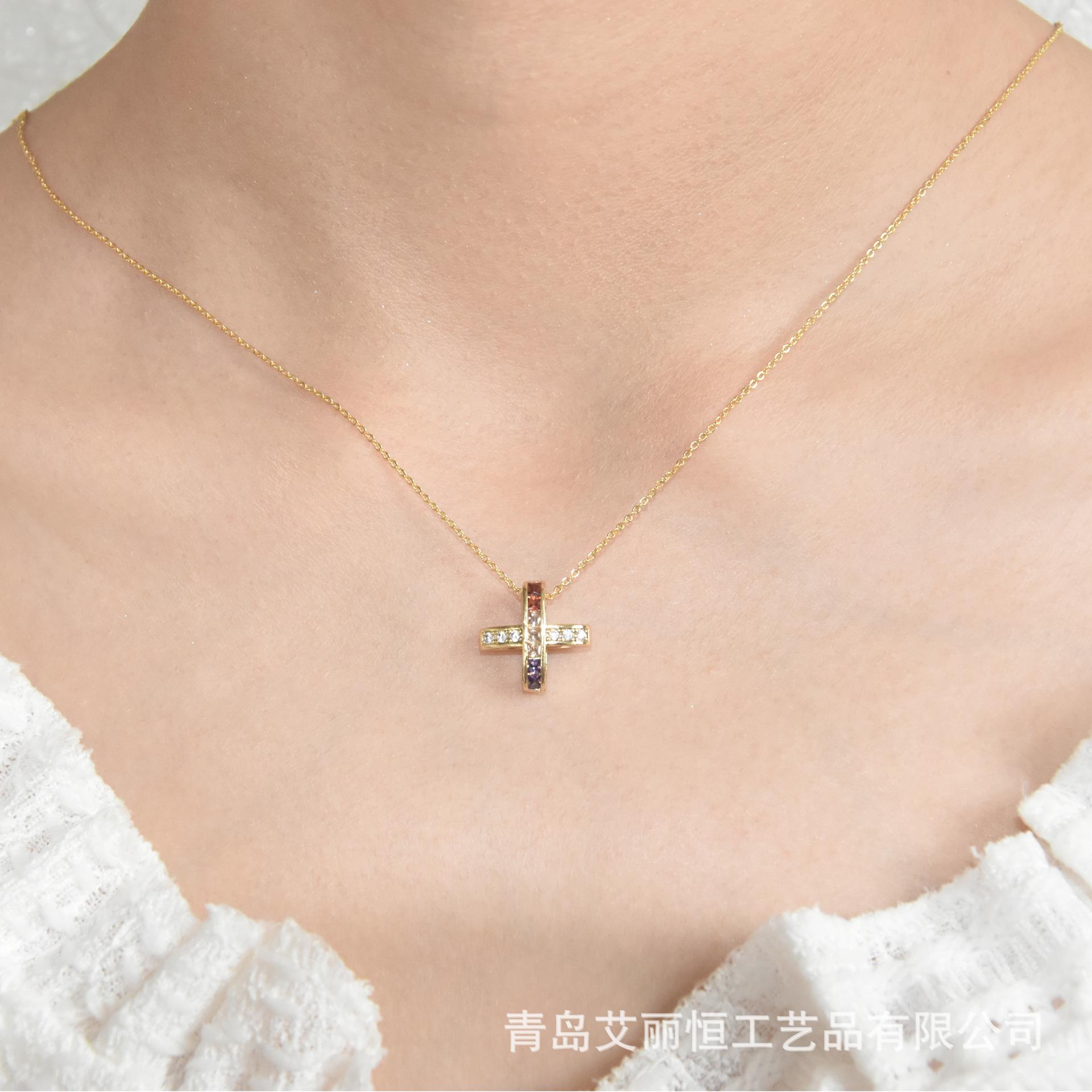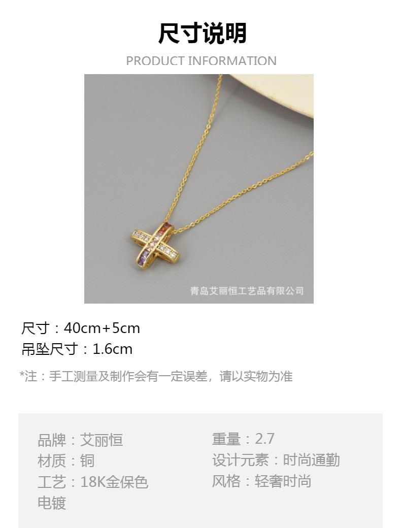 Nuevo Collar de Cruz de Color Micro-incrustado para Mujer Estilo Japonés-Coreano Simple Elegante Generoso Pequeño Hada Elegante