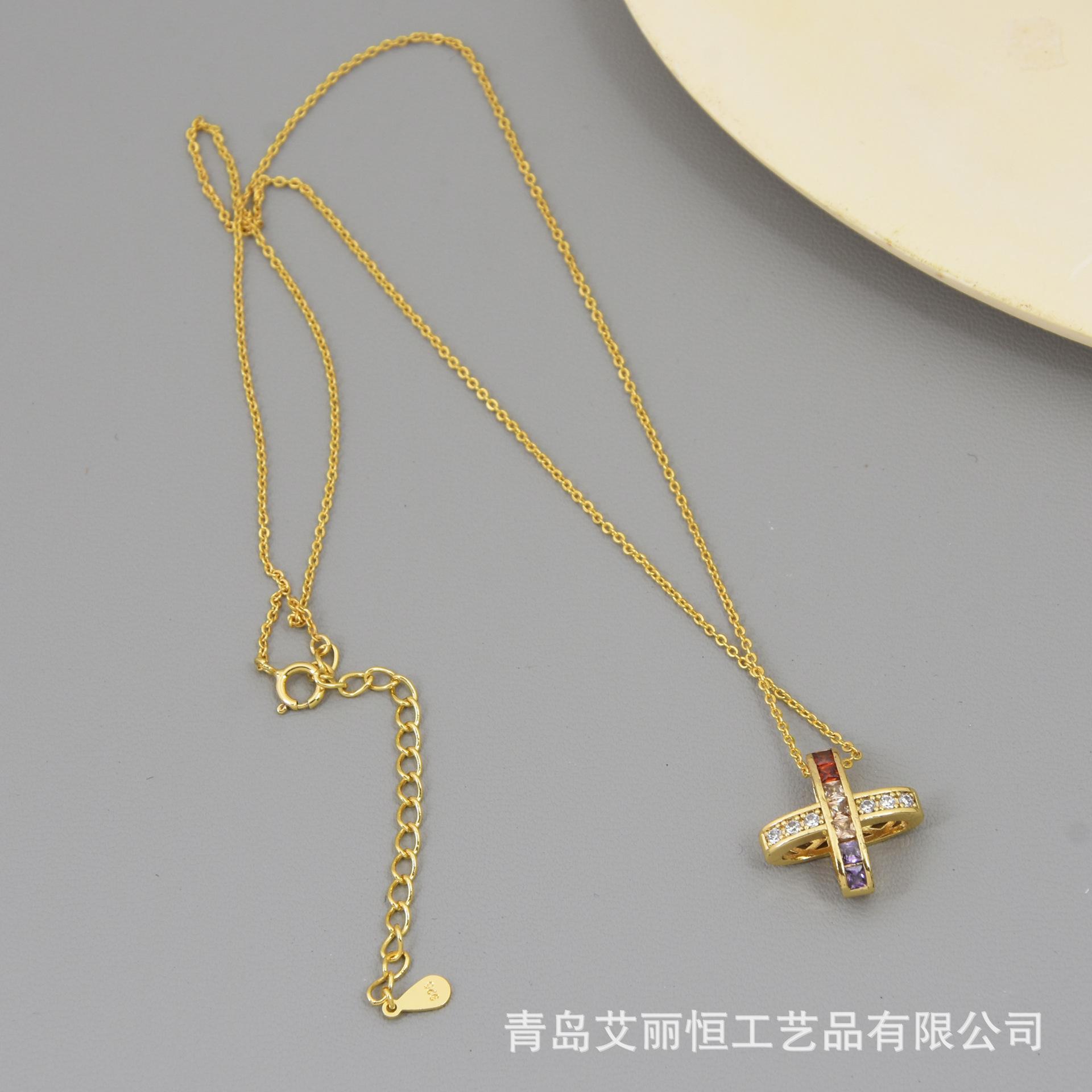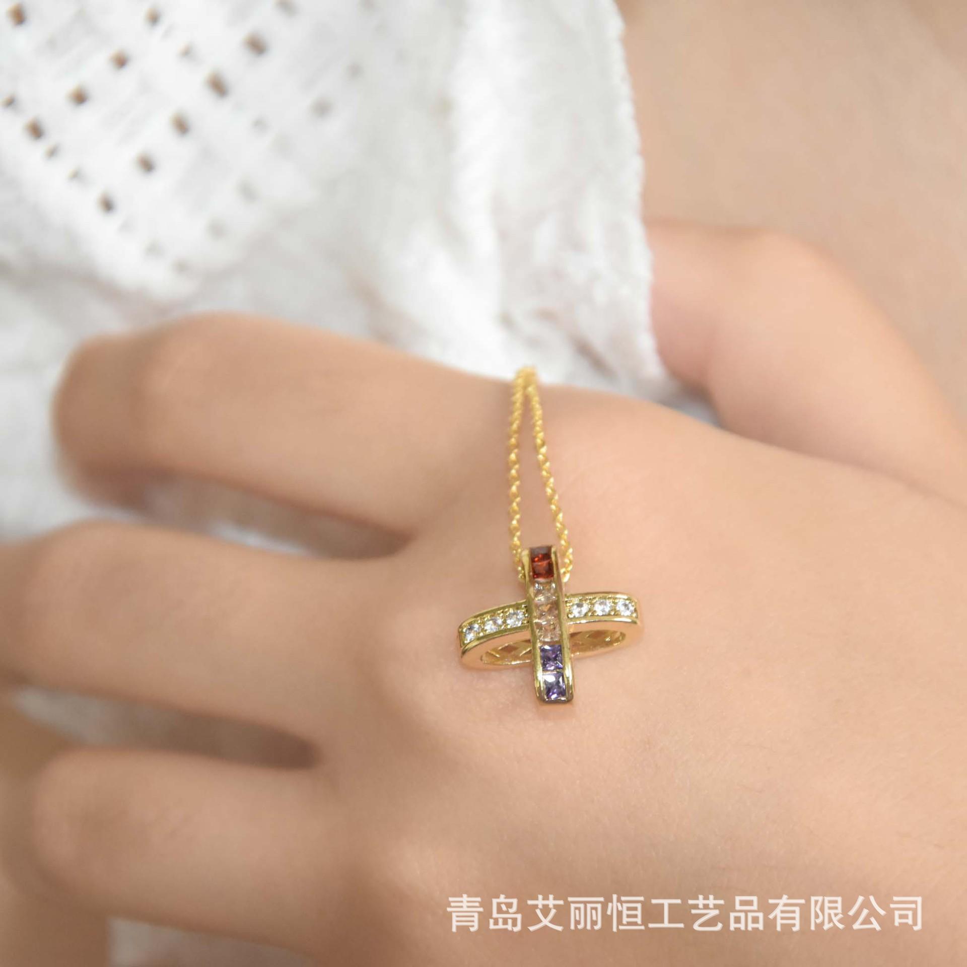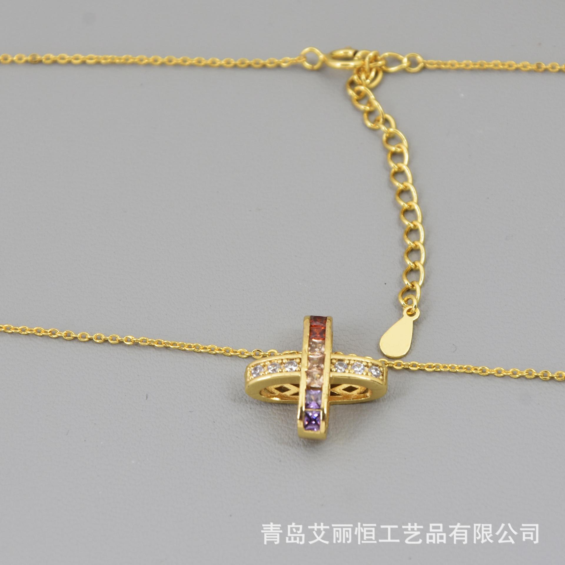 Nuevo Collar de Cruz de Color Micro-incrustado para Mujer Estilo Japonés-Coreano Simple Elegante Generoso Pequeño Hada Elegante