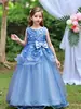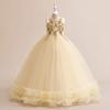 | Vestido infantil nuevo de Amazon europeo y americano 2023, vestido de anfitrión con falda larga abullonada de malla floral tridimensional |