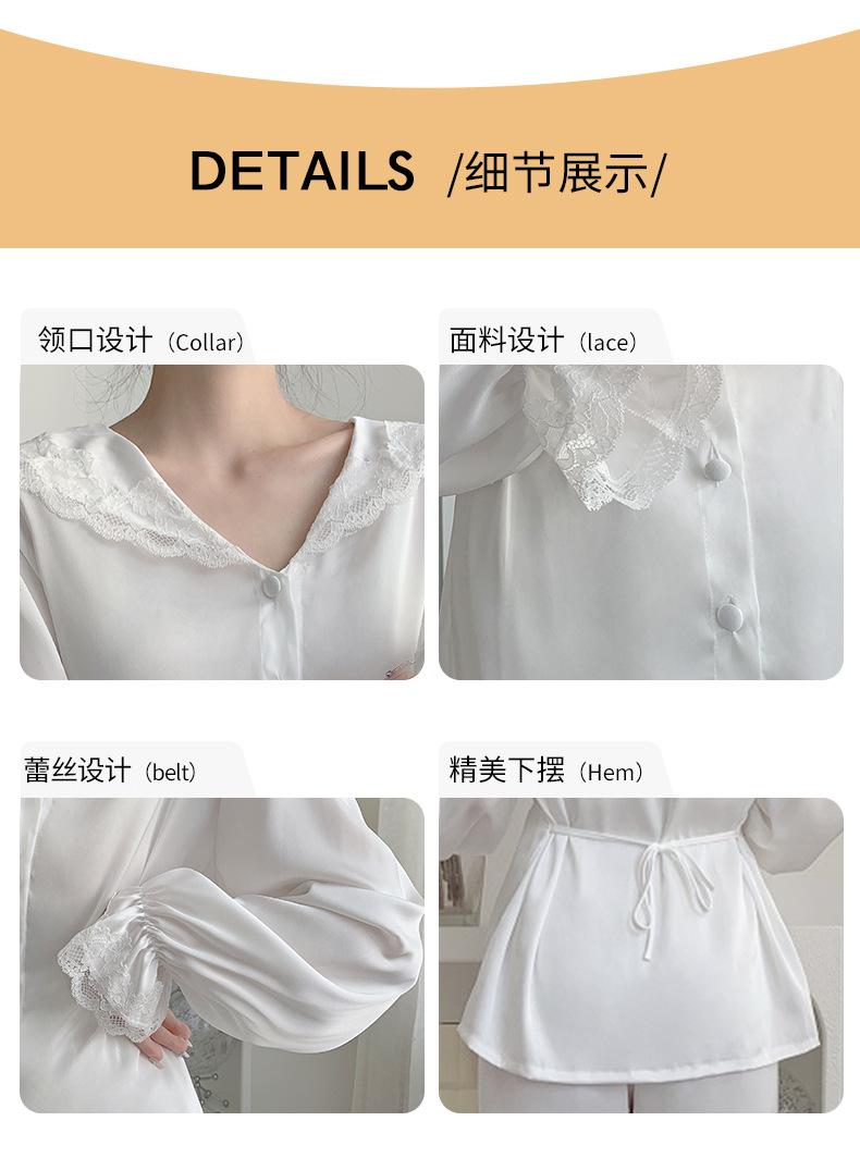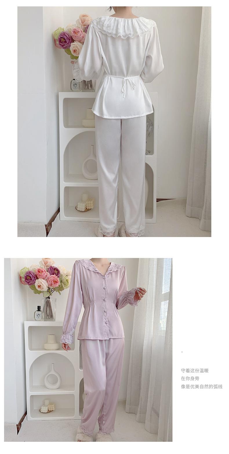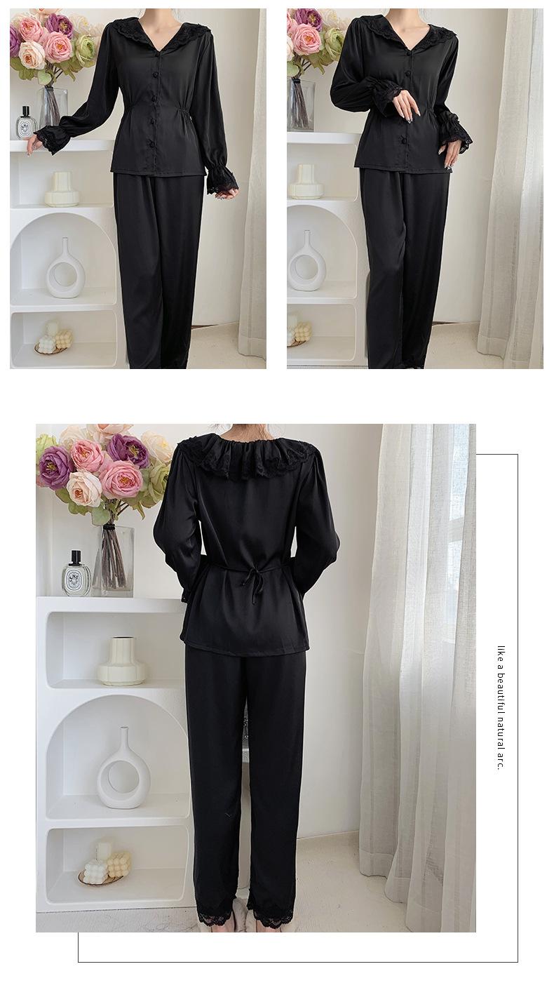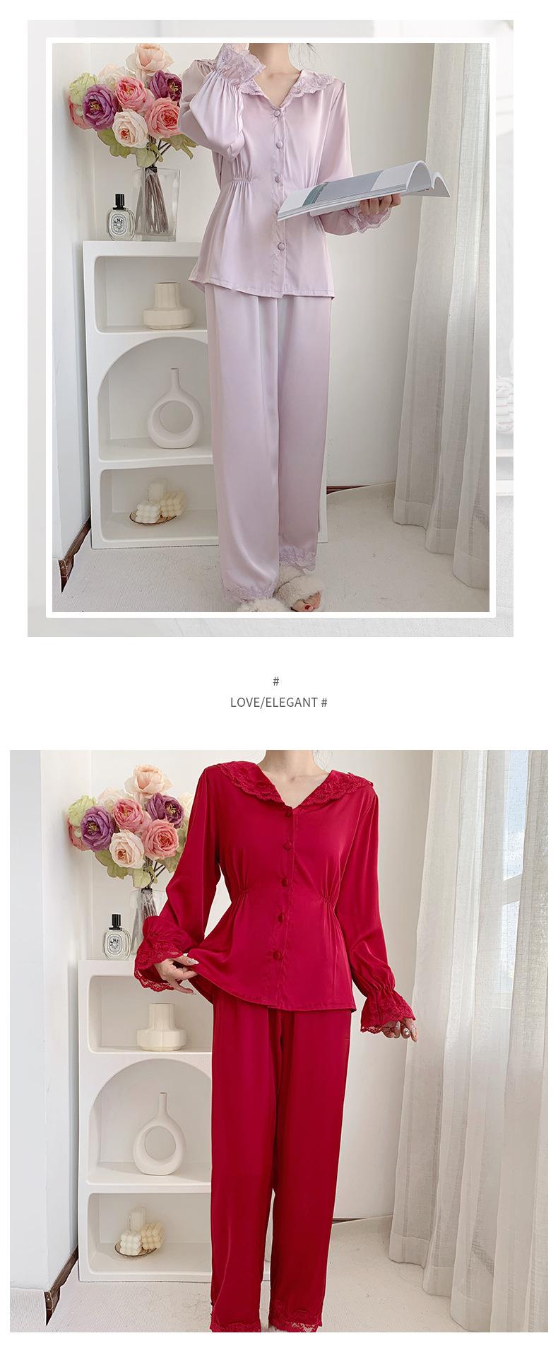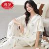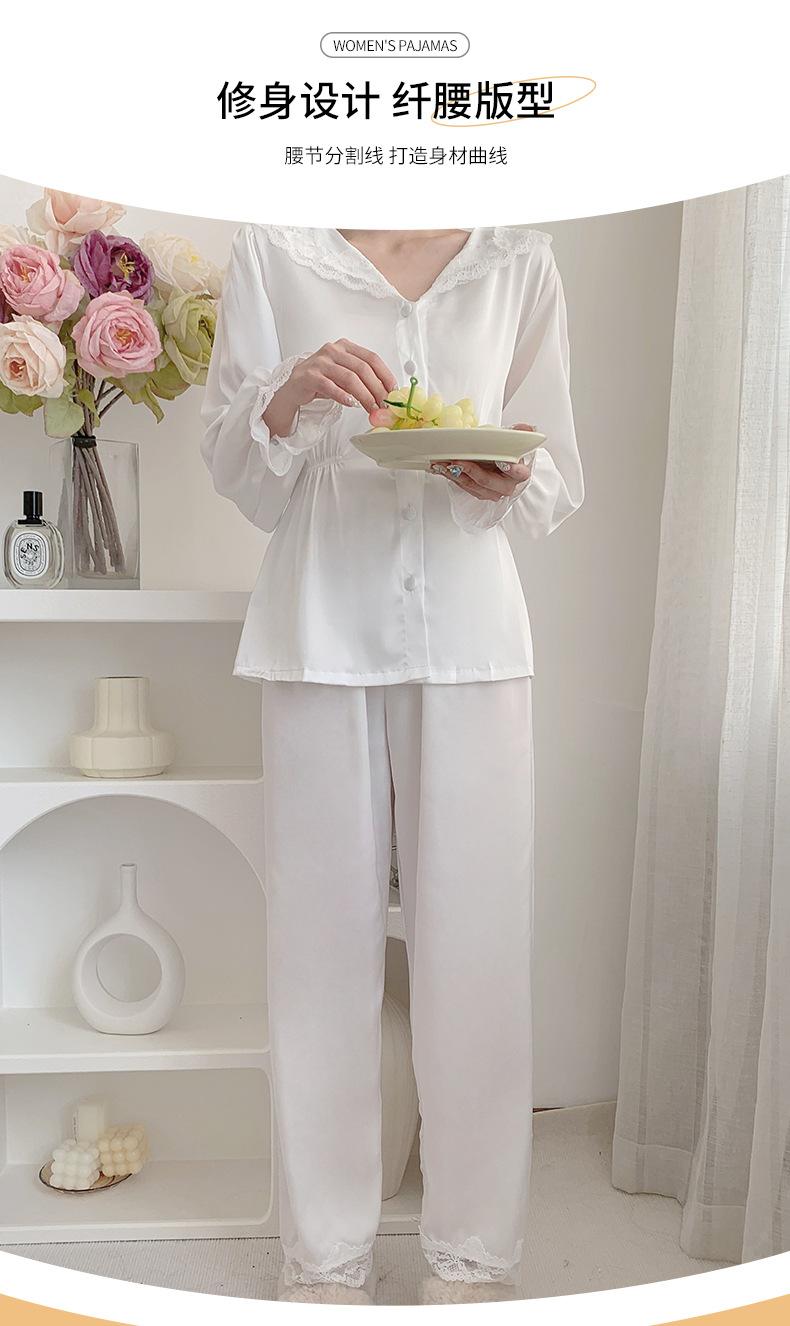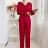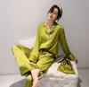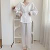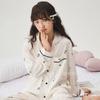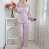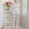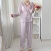 Pijama Casual de Verano para Mujer Nuevo Estilo Cuello en V Manga Larga Pantalón Conjunto Ropa para el Hogar Conjunto de Pijama Cárdigan Delgado