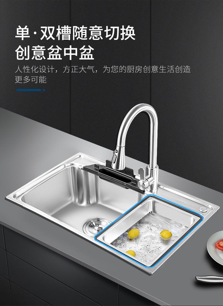 Fregadero de cocina de acero inoxidable 304, fregadero individual, fregadero multifunción para el hogar, fregadero sobre mesa y escalón, fregadero para lavar verduras