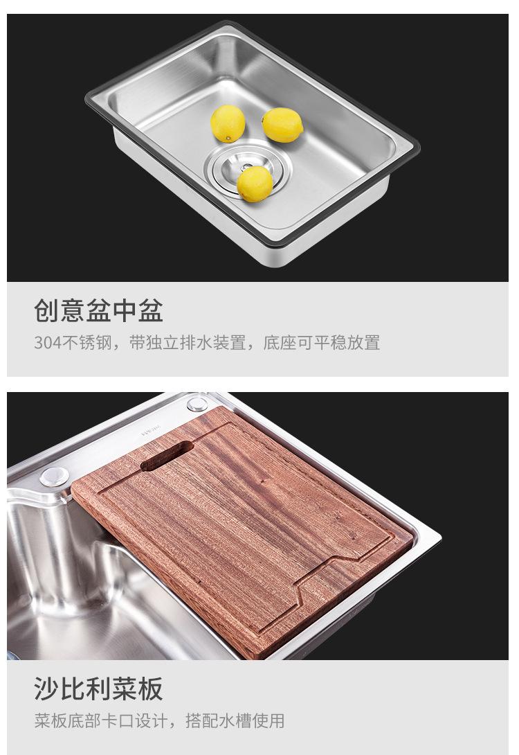 Compra Fregadero de cocina de acero inoxidable 304, fregadero individual, fregadero multifunción para el hogar, fregadero sobre mesa y escalón, fregadero para lavar verduras al por mayor en Joom.pro