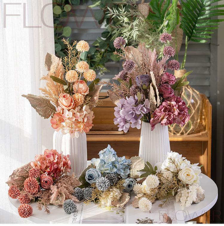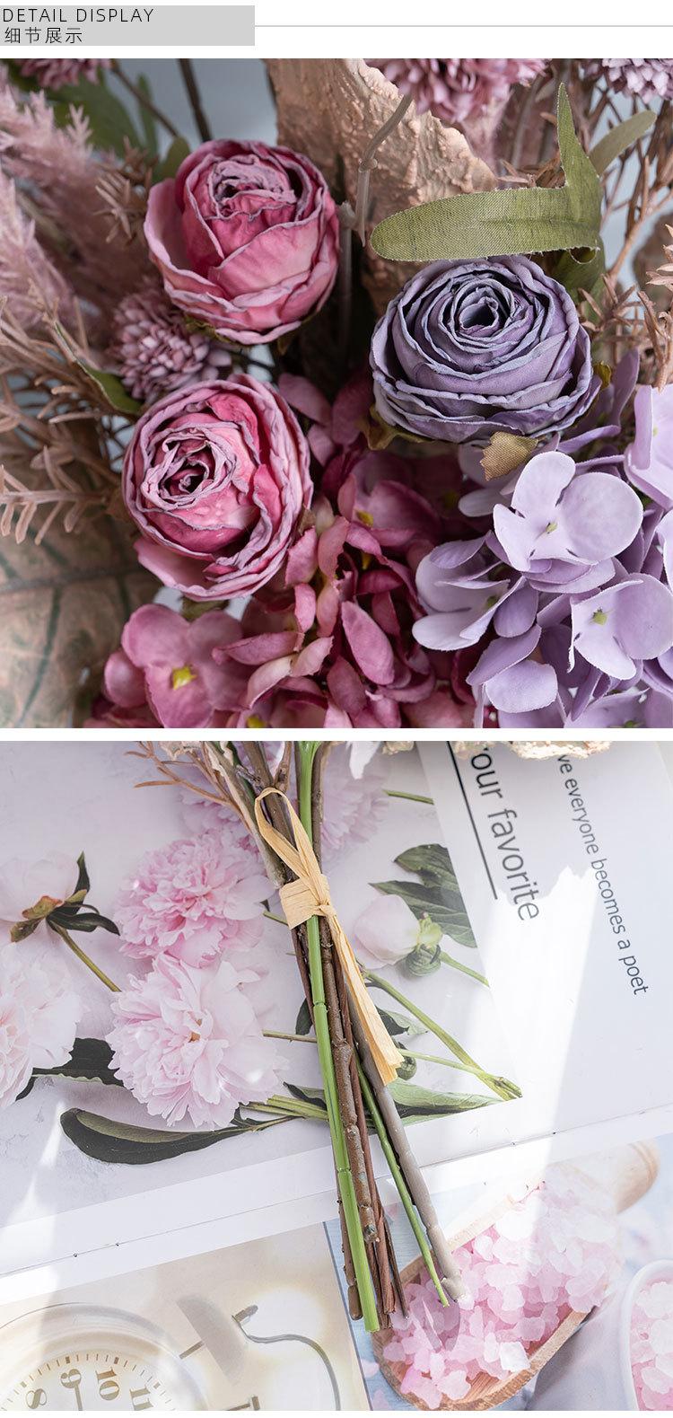Flor Artificial Isla Templo Decoración Hogar Flor Flor Falsa Diseño Boda Ramo Flor para Llevar Decoración de Pared Rosa CF01204