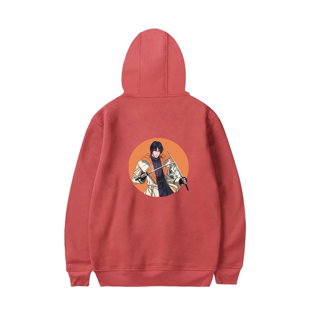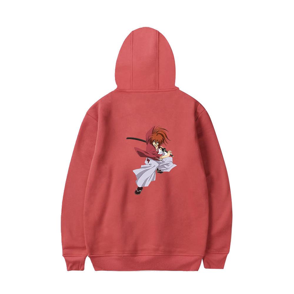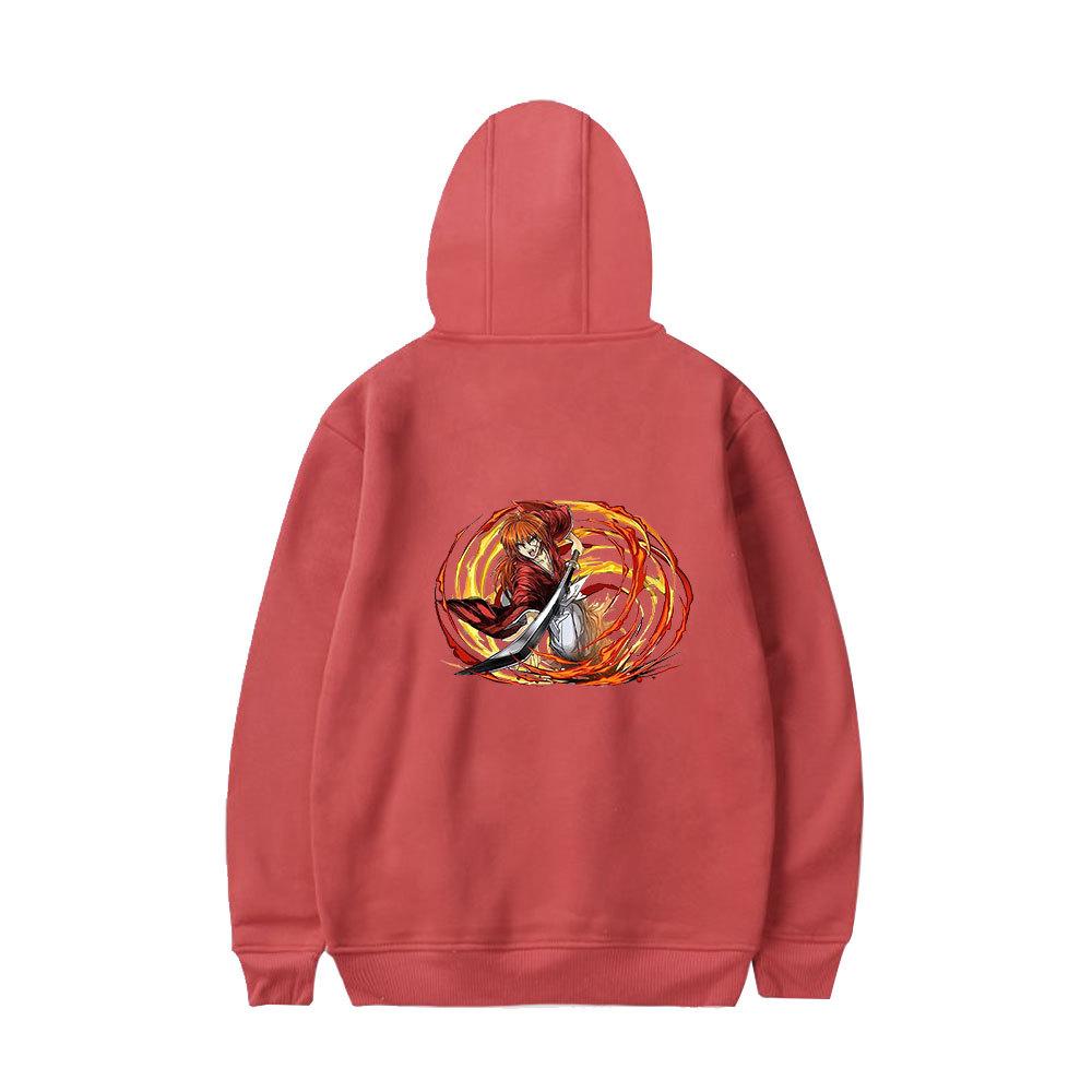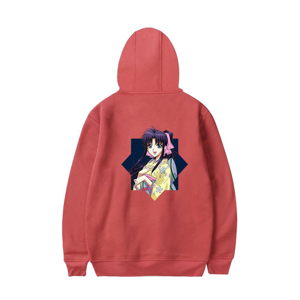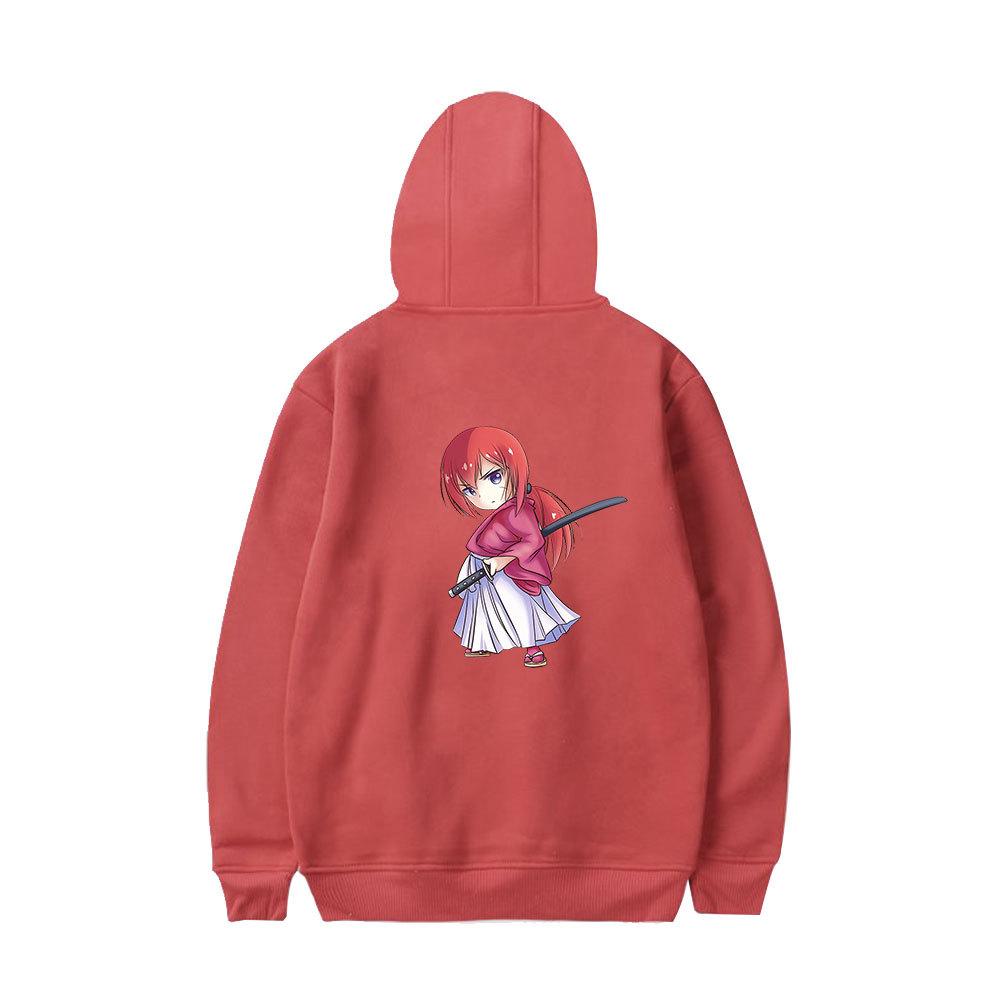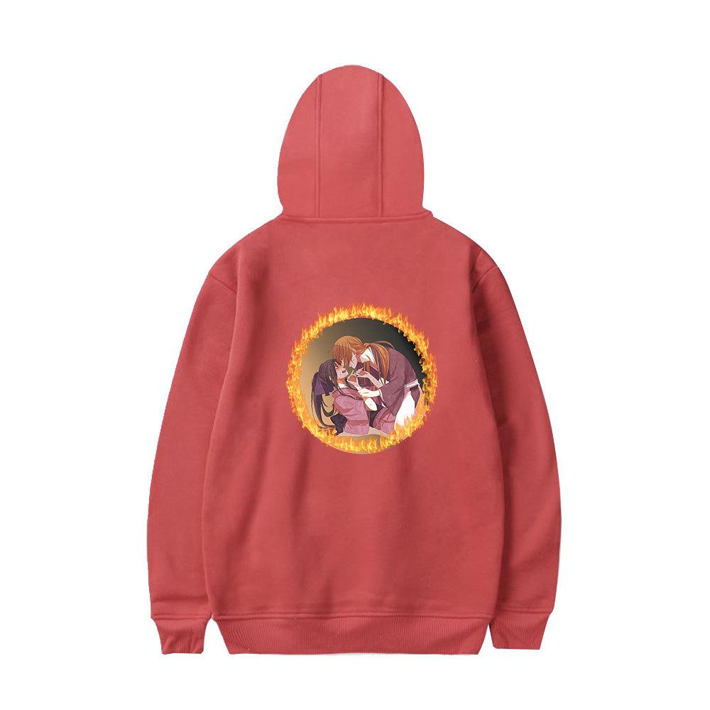 Suéter holgado informal con capucha roja de estilo coreano con diseño de corazón de espada Longke, de manga larga, estampado para mujer, para primavera y otoño.