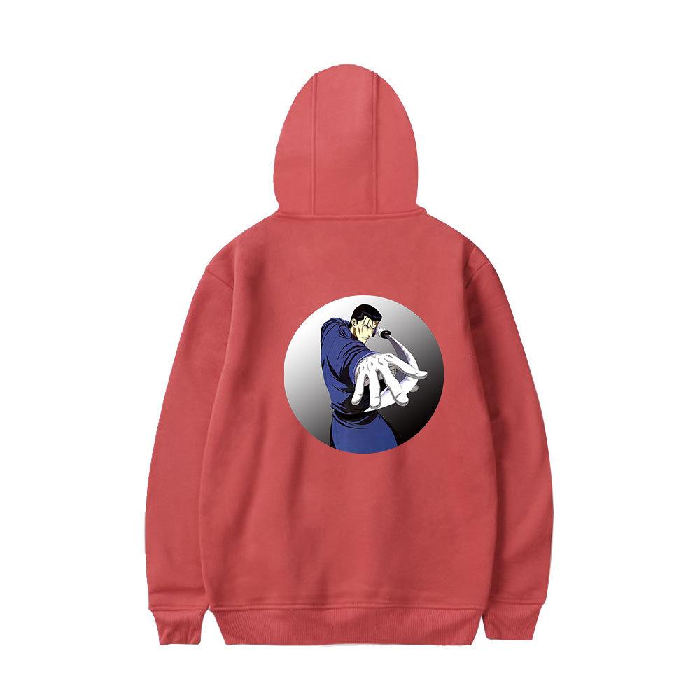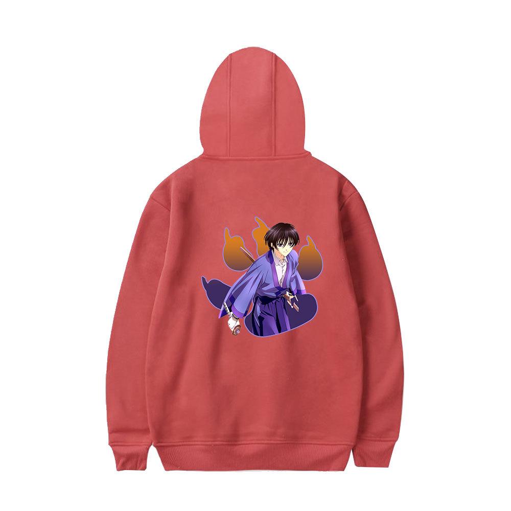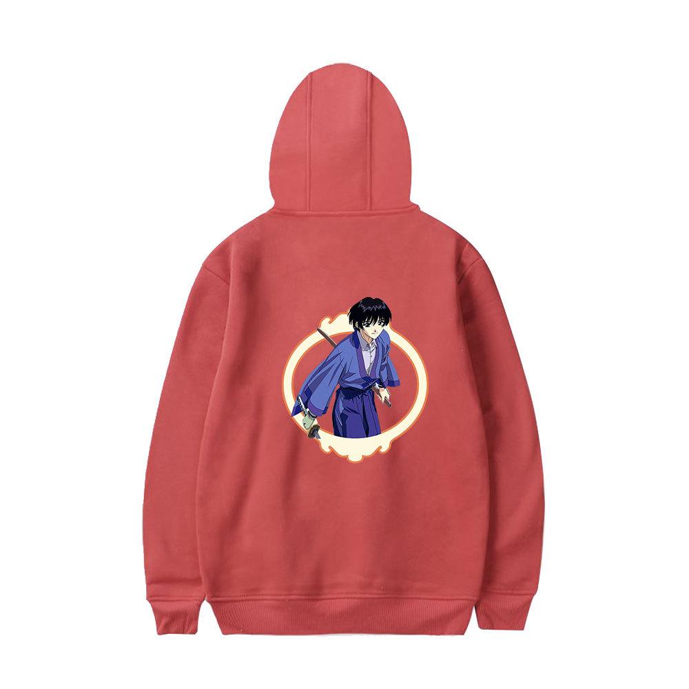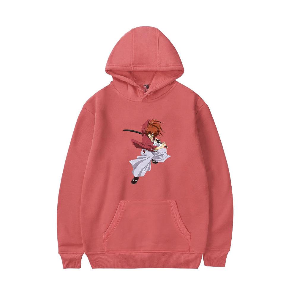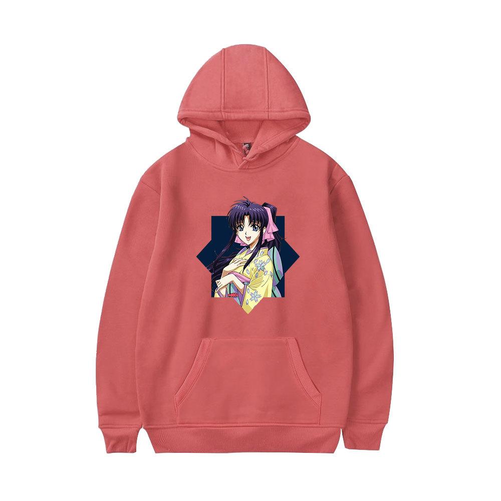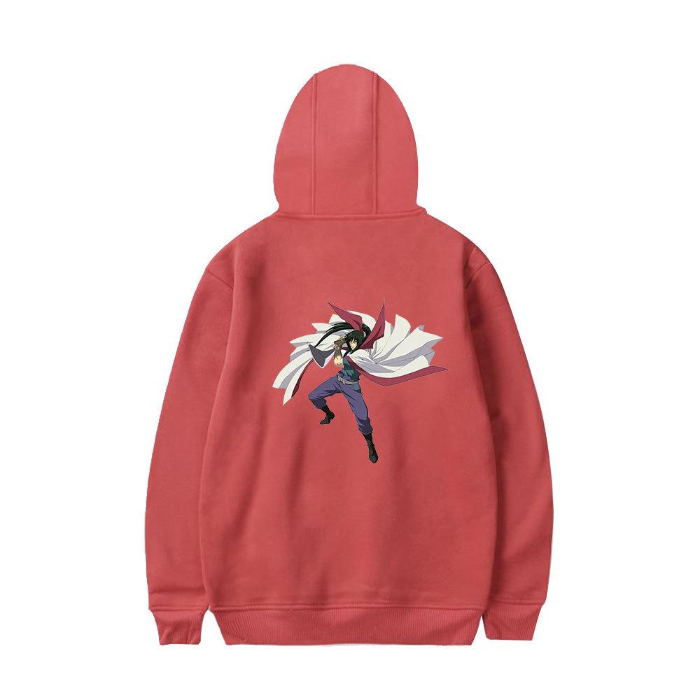 Suéter holgado informal con capucha roja de estilo coreano con diseño de corazón de espada Longke, de manga larga, estampado para mujer, para primavera y otoño.