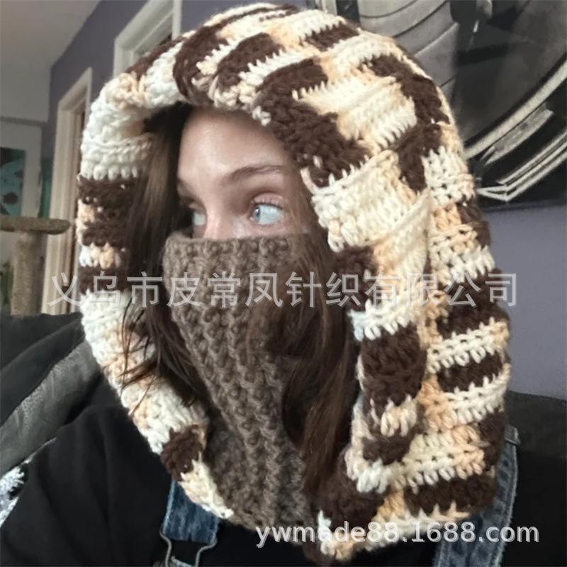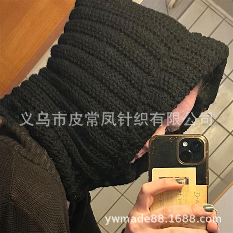 Gorro de lana y bufanda para otoño e invierno de 2025, gorro integrado, tejido a mano, resistente al viento, cálido, con cordón, para hombres y mujeres, venta al por mayor