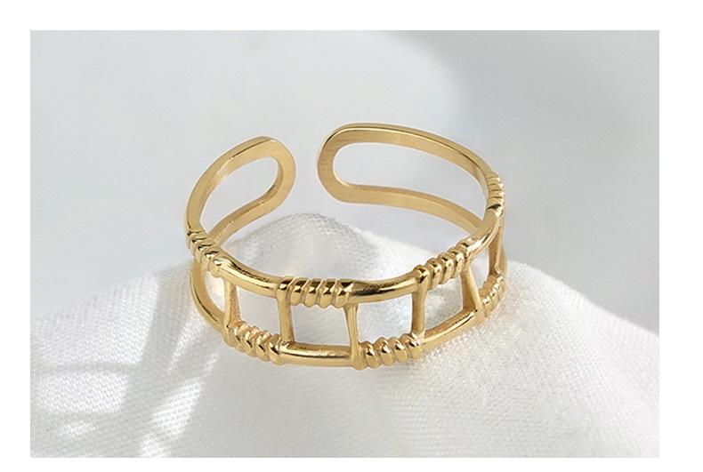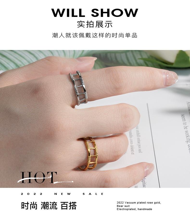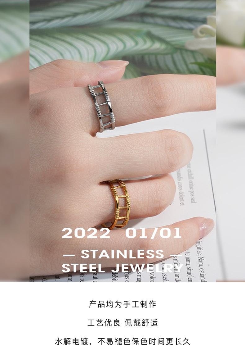 Anillo de acero de titanio con líneas geométricas simples, estilo europeo y americano, para mujer, de moda, con cruz de metal de acero inoxidable que combina con todo.