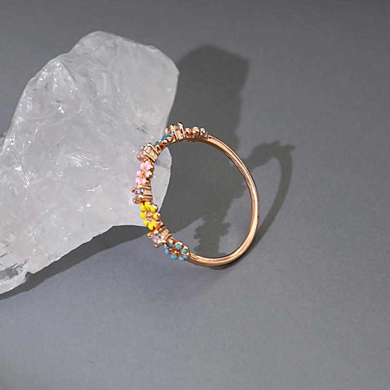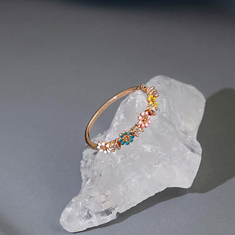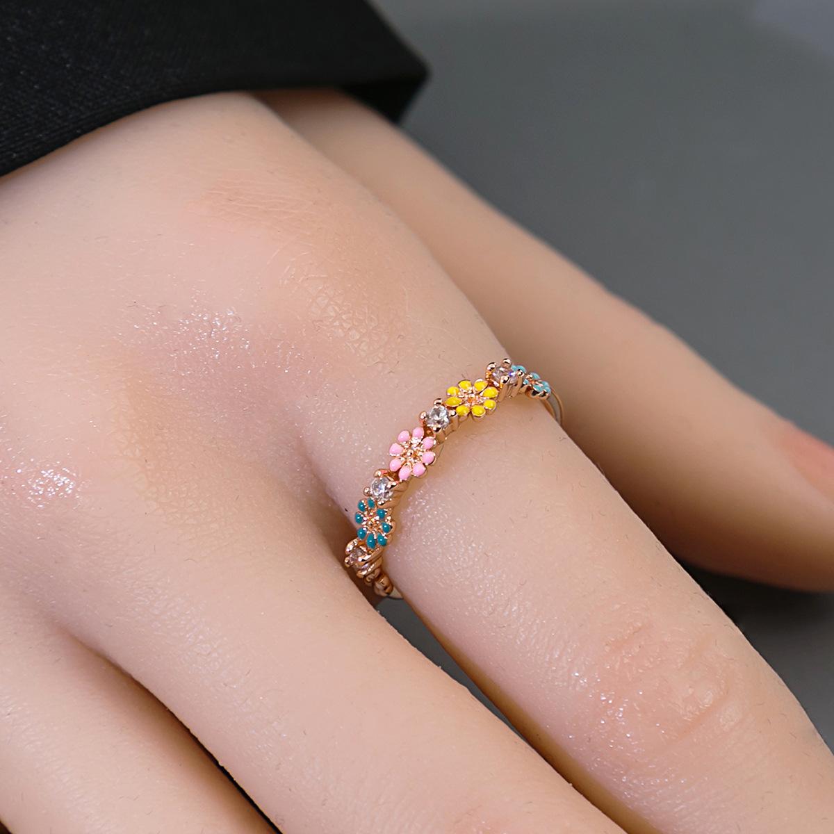 Elegante anillo de flor de circón con microincrustaciones que conserva el color, estilo coreano, dulce y bonito anillo con margaritas de cinco colores, combinable con todo para mujer.