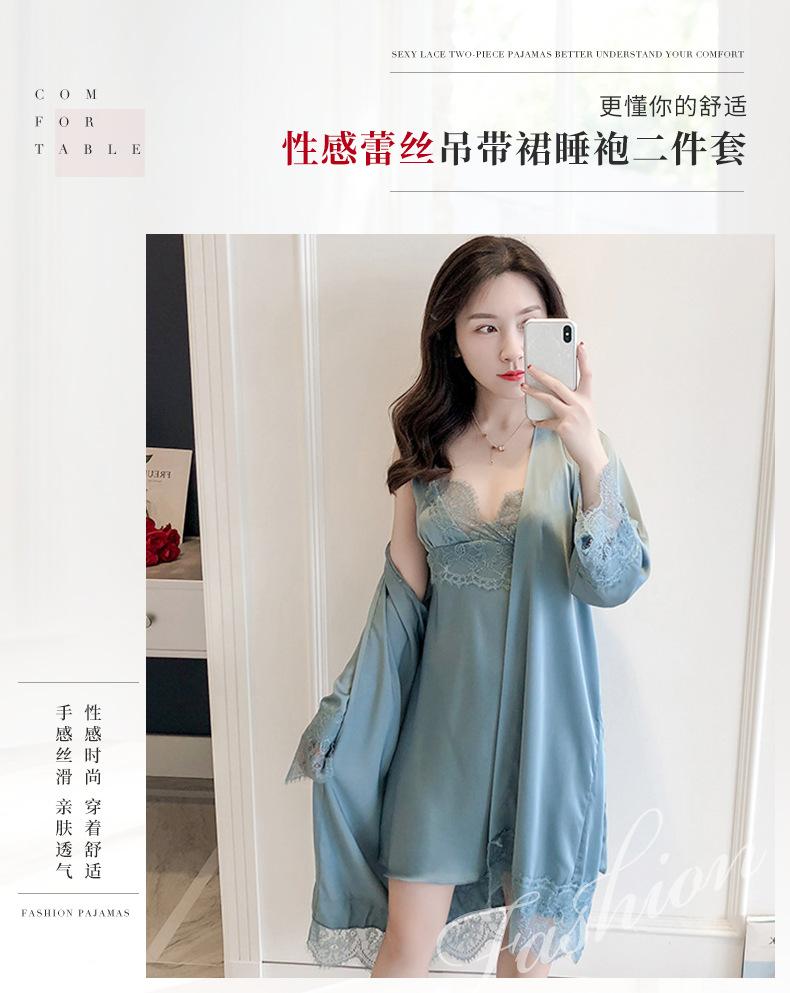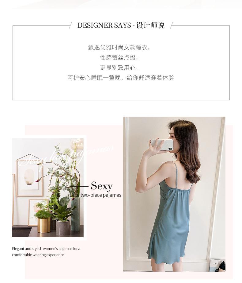 Pijama de mujer de seda sintética personalizado de fábrica, falda colgante de seda de verano, camisón sexy de dos piezas con tirantes.