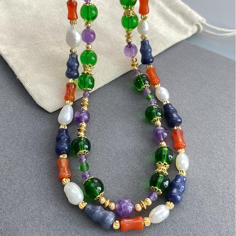 2024 Nuevo estilo, accesorios, colgante de luz de lujo, nicho, personalizado, moda de alta gama, cadena de cuentas de cristal, collar versátil