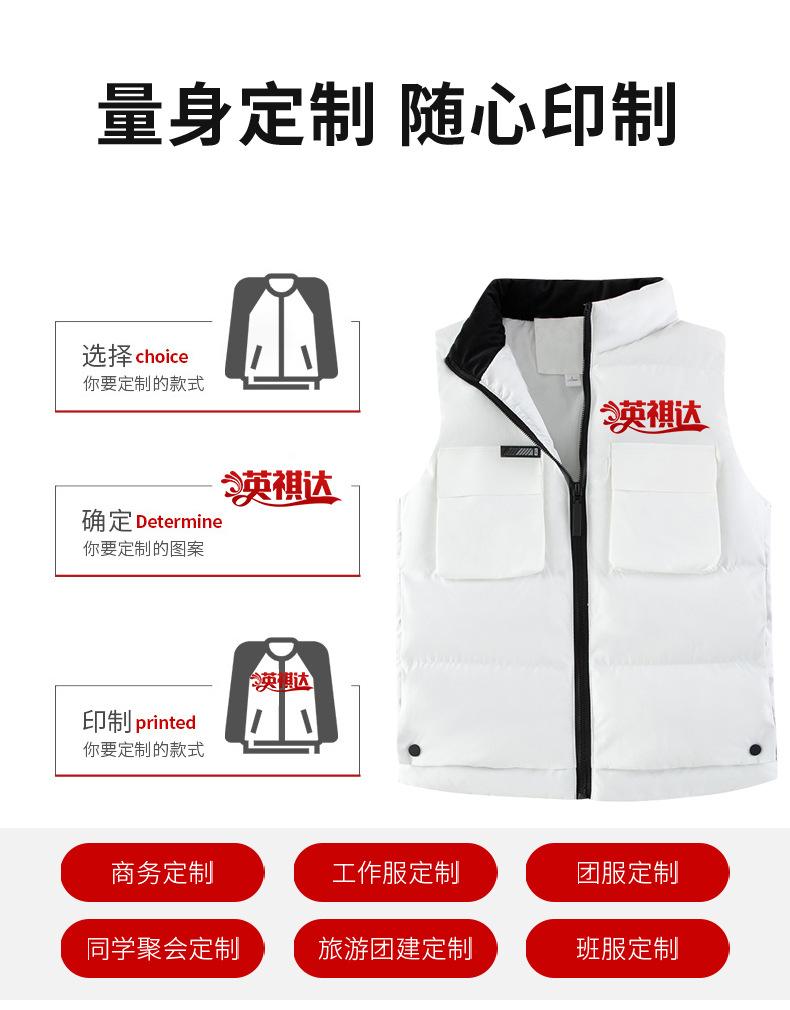 Chaleco acolchado ropa de trabajo personalizada estampado para hombre y mujer mismo estilo invierno Nuevo Cuello alto cálido sin mangas abrigo
