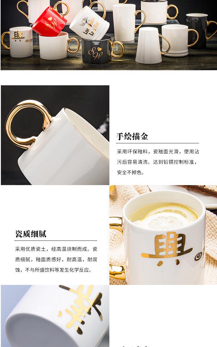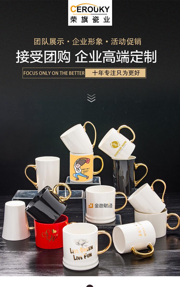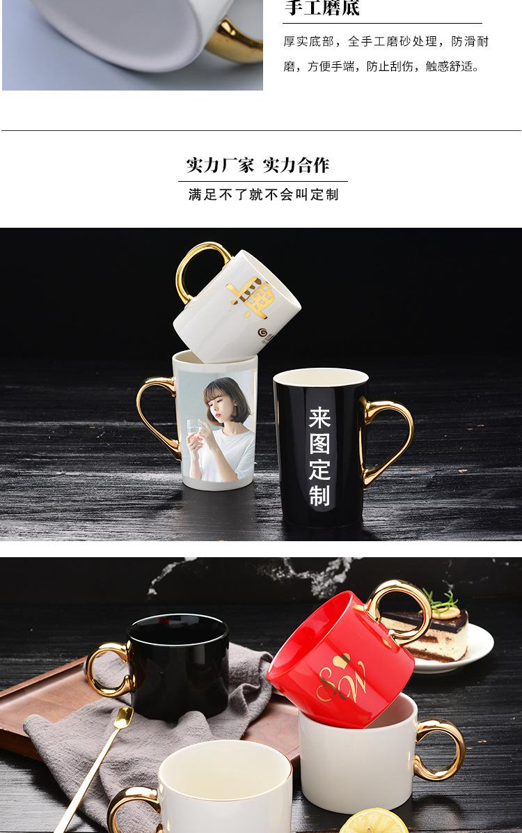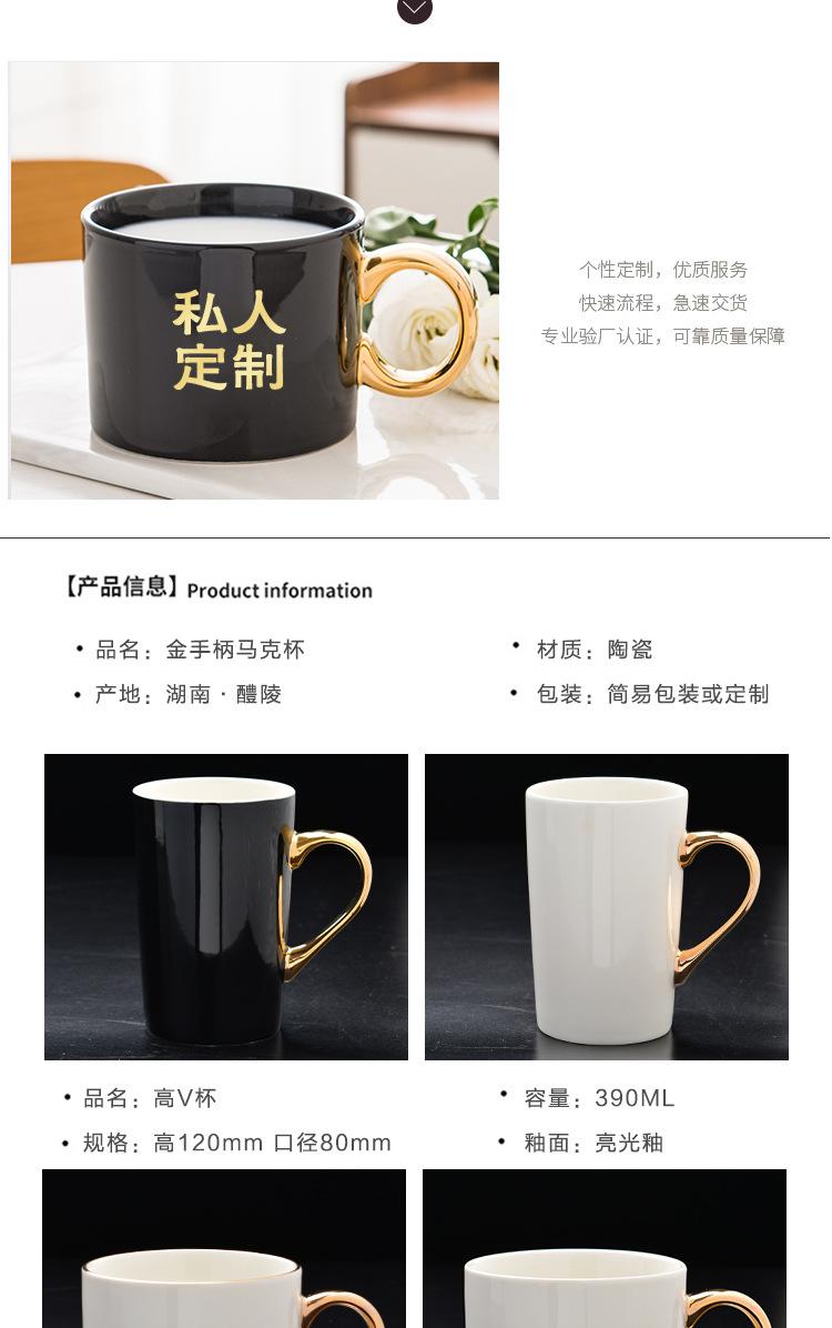 Taza con asa de oro real, taza creativa, taza de café de cerámica, taza publicitaria personalizada, taza de regalo, procesamiento de logotipo de taza al por mayor