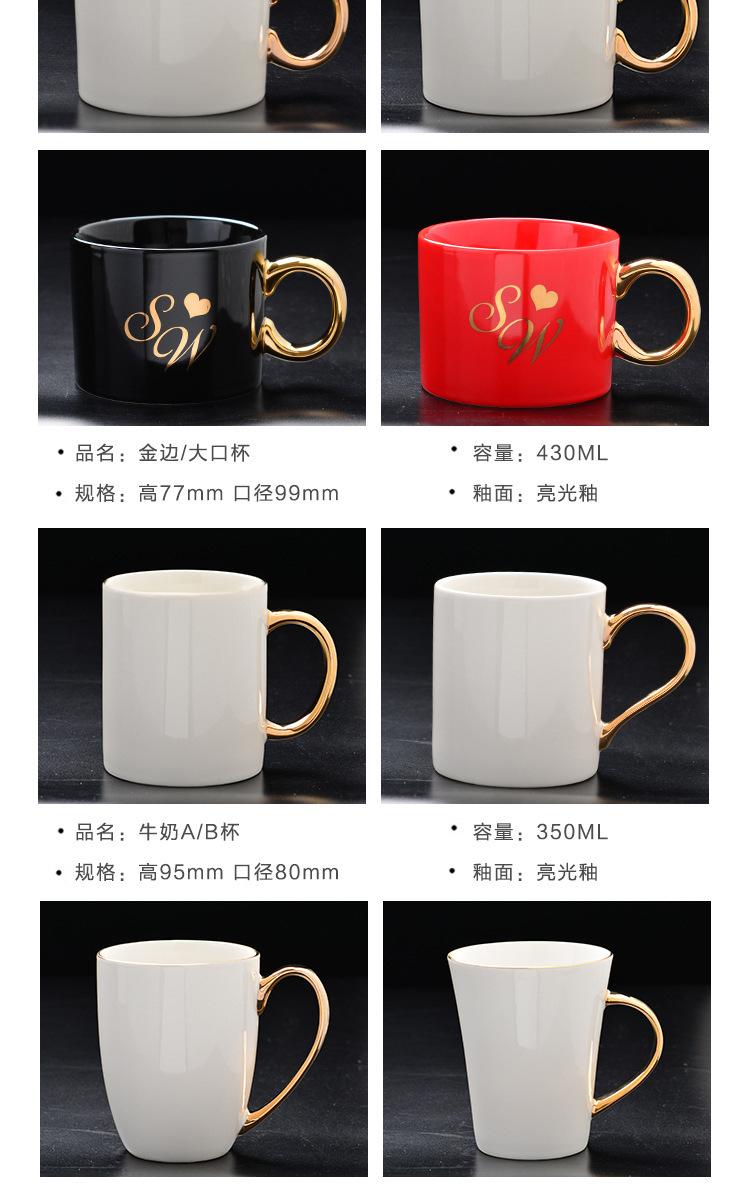 Gold handle milk A cup, Gold handle milk B cup, Gold handle white high V cup, Gold handle bright black high V ...