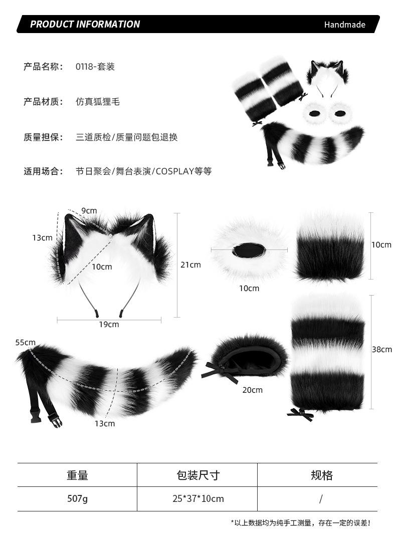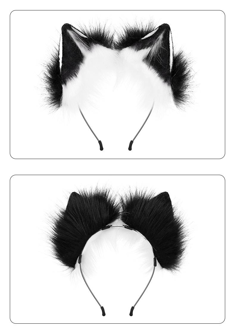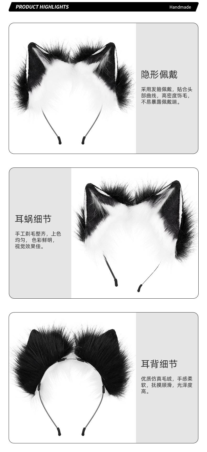 Diadema con orejas de gato simuladas hechas a mano, accesorios de cola de zorro, conjunto de orejas y cola de animal bidimensional, collar y horquilla al por mayor