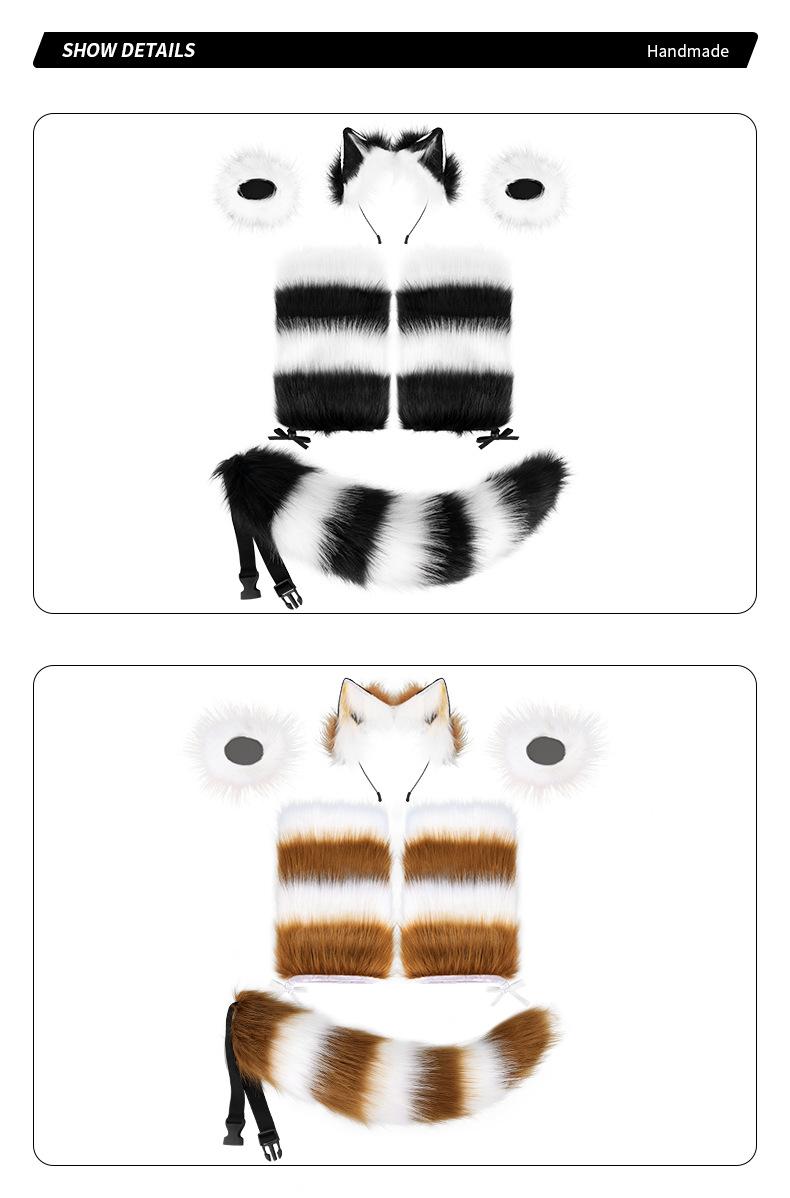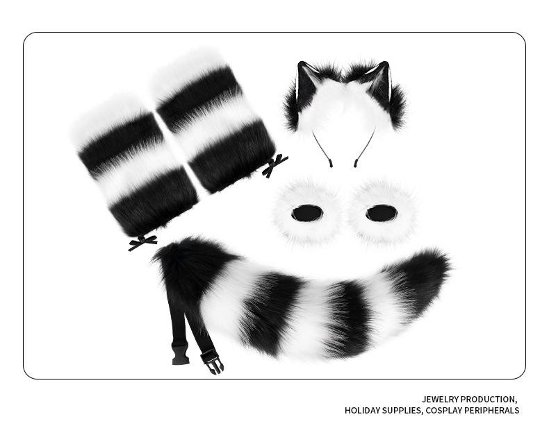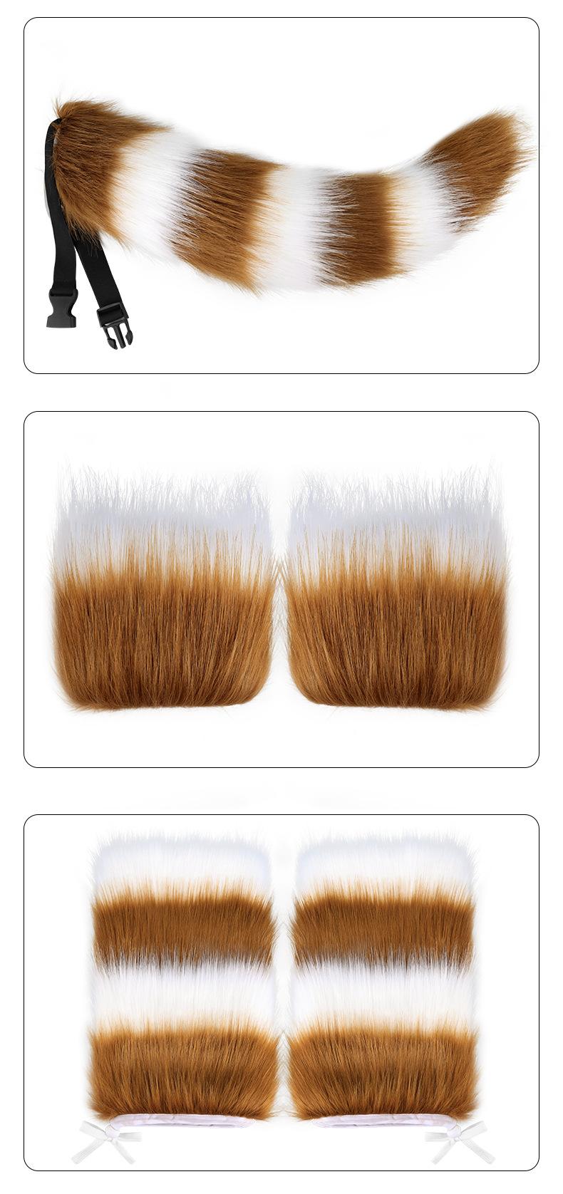 Diadema de orejas de zorro de una pieza con envío directo, traje de Halloween con cola de animal, garras de animal, orejas de animal de peluche simuladas, accesorios cos
