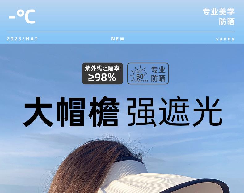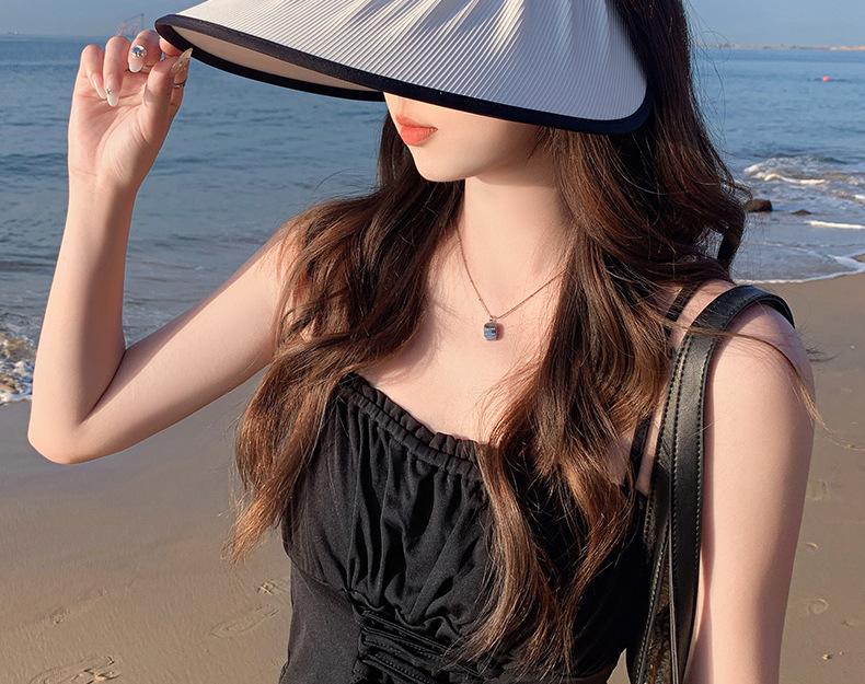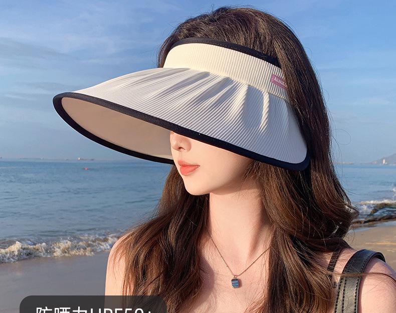 Sombrero para el sol para mujer, con protección UV, ala ancha y alargada, sombrero de copa vacío.