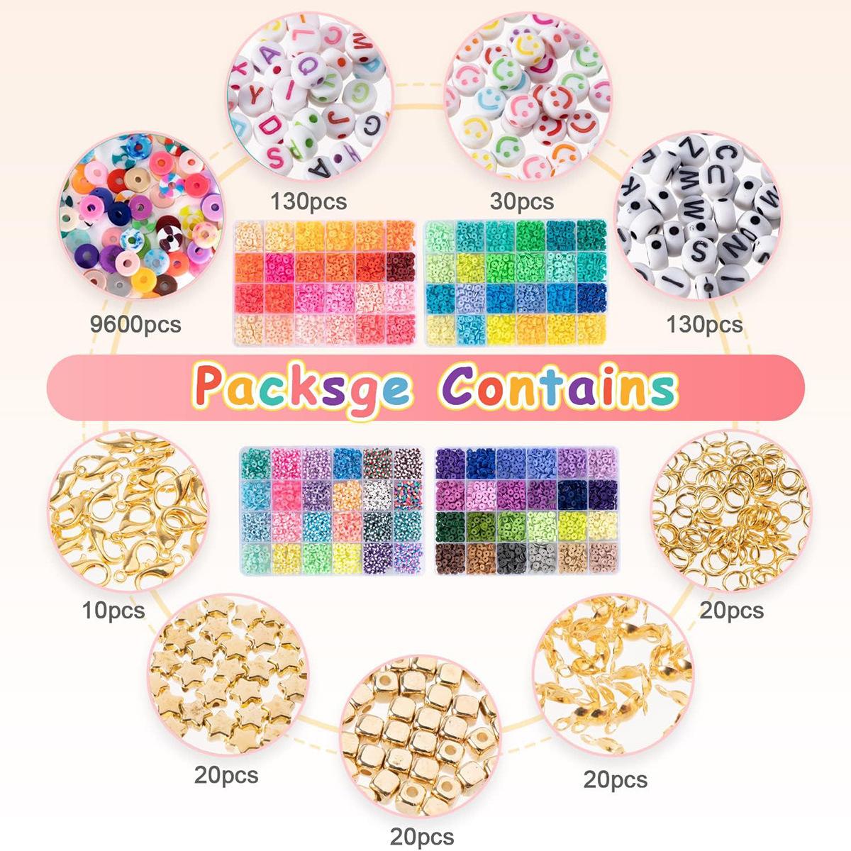 96 Colores 9600 Piezas de Cuentas de Arcilla, Piezas de Cerámica Blanda, Cuentas Sueltas, Cuentas Espaciadoras, Cuentas de Letras, Caja de Kit de Joyería DIY, Nuevos Productos Transfronterizos